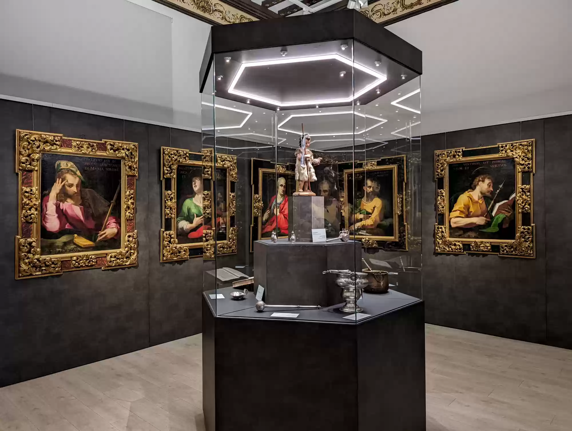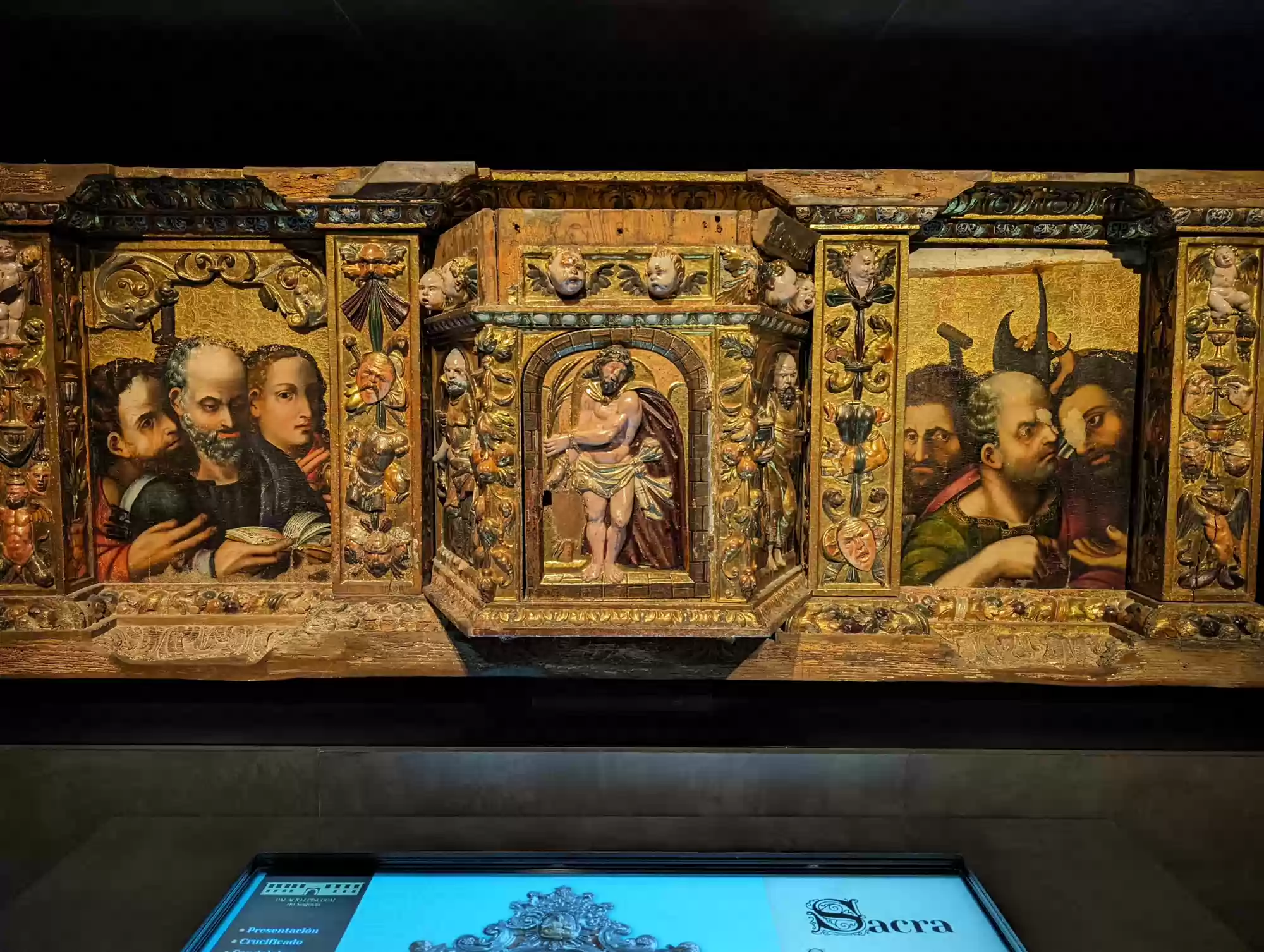 Altar predella with the apostles and a relief of Christ tied to the column, mid-16th century.