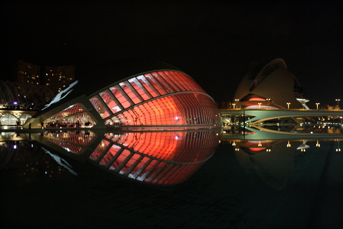 Hemisferic, a cinema and planetarium, completed in 1998. Dimension: 110x55m. The hemisferic contains a spherical Omnimax theater. AgoraEl Palau de les Arts Reina Sofia Labels