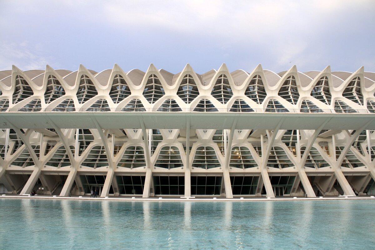 El Museu de les Ciències Príncipe Felipe, the science museum of Valencia. Left: opera house and hemisferic; right: agora and bridge. 220 meters long, 80 meters wide and 55 meters high. El Palau de les Arts Reina SofiaUmbracle Labels