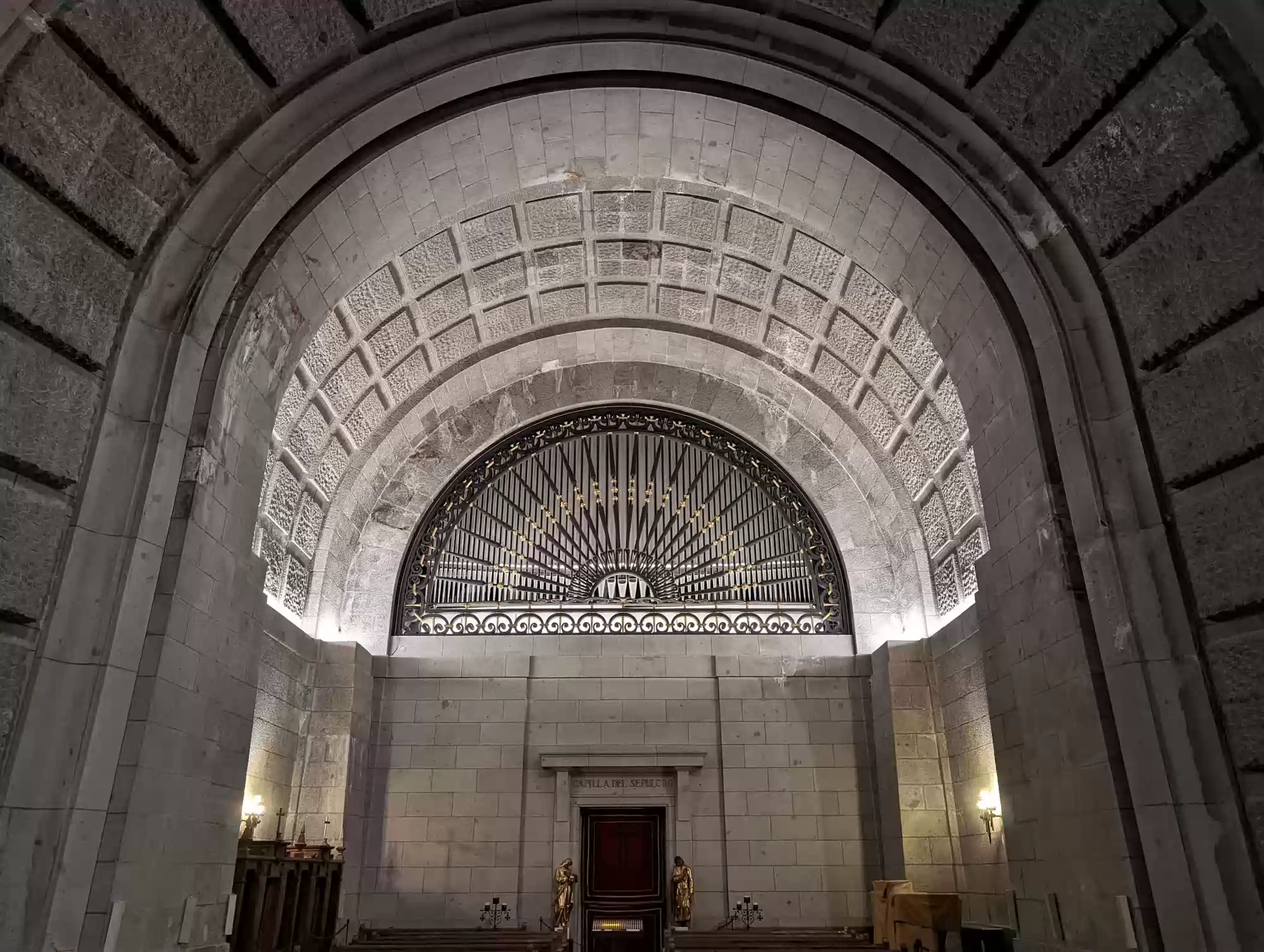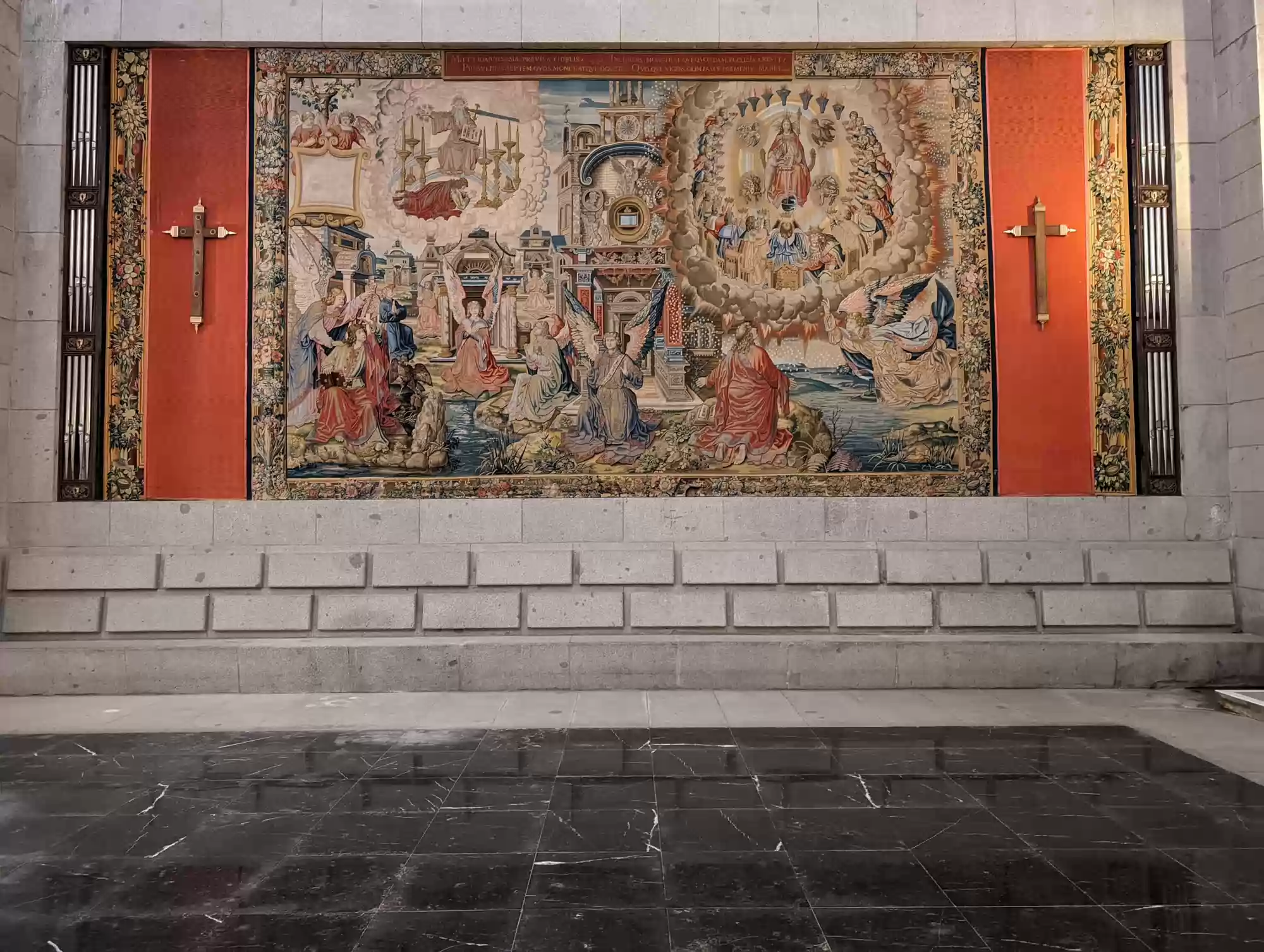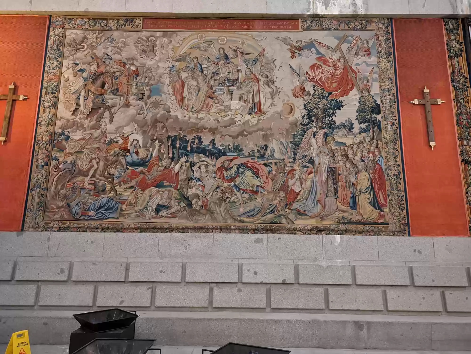 The total length of the nave is 262 meters. Replica of 17th century Flemish tapestries (Saint John's Apocalypse). Replica of 17th century Flemish tapestries (Saint John's Apocalypse). Cupola diameter: 40 meters. Labels