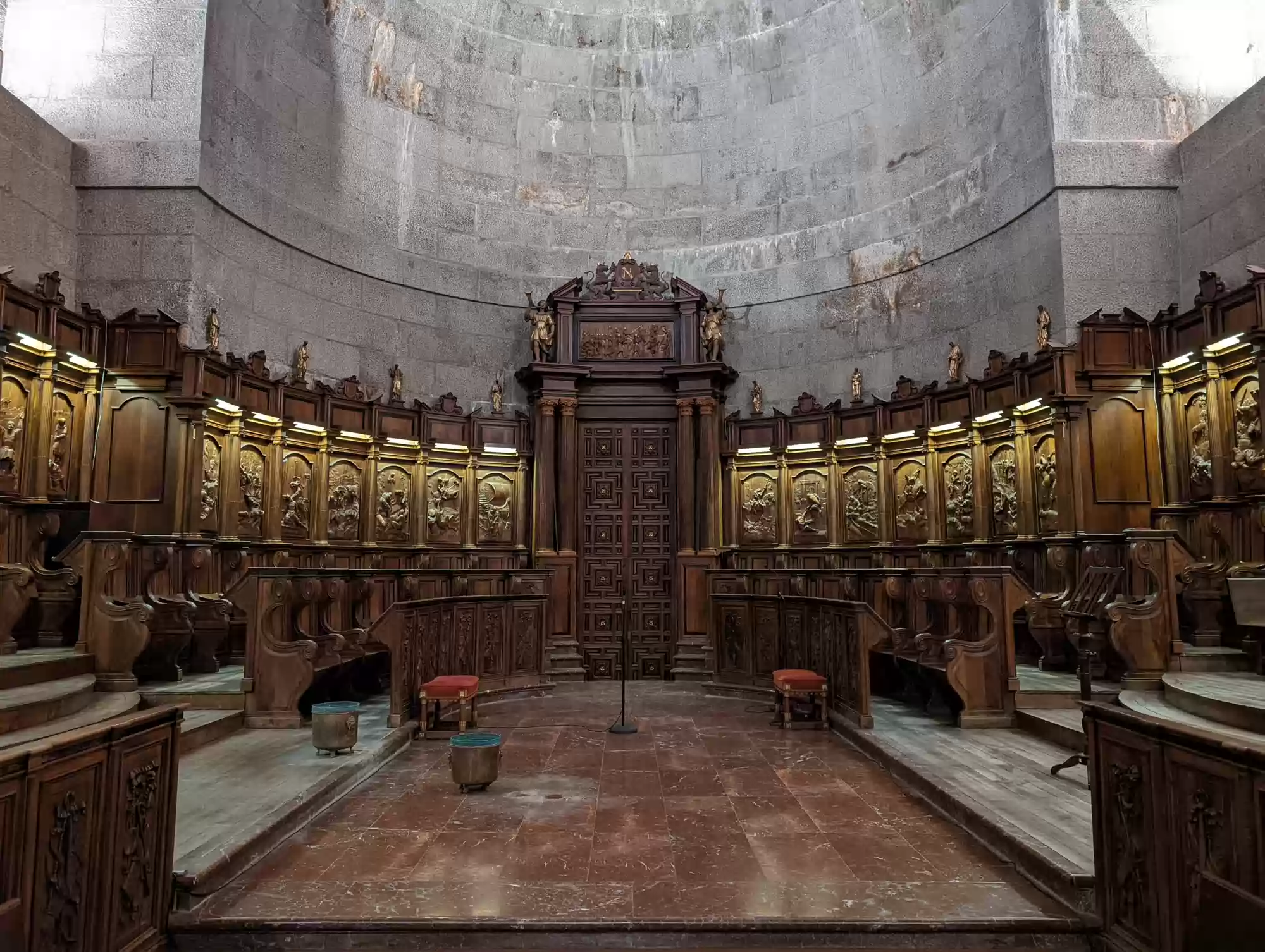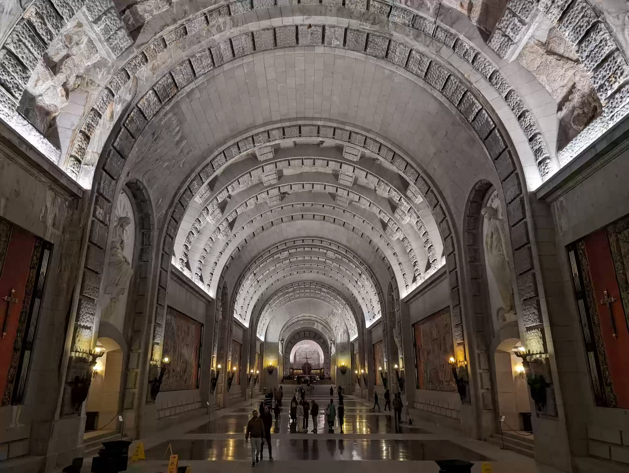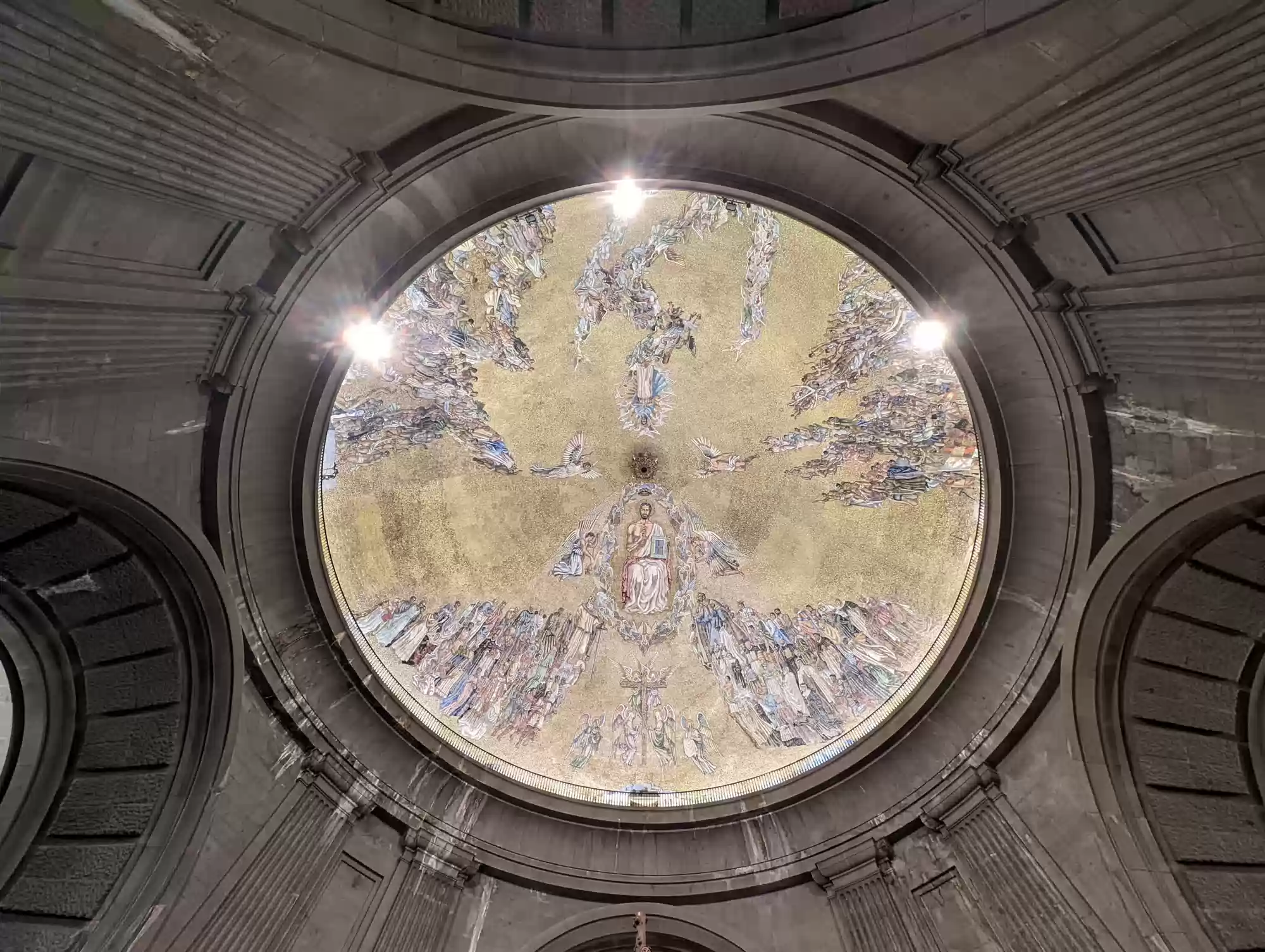 The total length of the nave is 262 meters. Replica of 17th century Flemish tapestries (Saint John's Apocalypse). Replica of 17th century Flemish tapestries (Saint John's Apocalypse). Cupola diameter: 40 meters. Labels