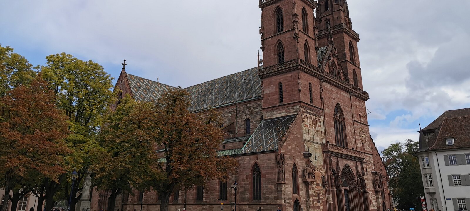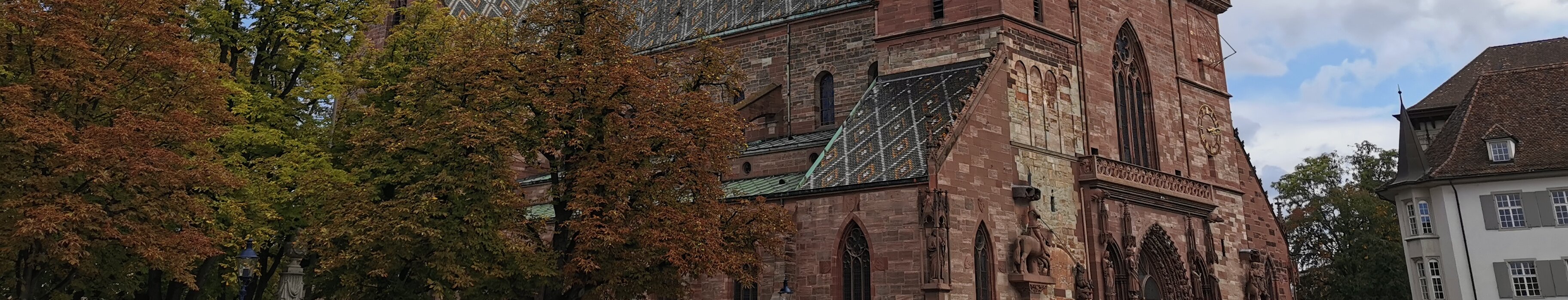 Basel minster, 15th century on the basis of a 13th century earlier church mostly destroyed in 1356. Cloister. Cloister. Cloister. Cloister. Small cloister. Intersection of the 2 cloisters. Marktplatz Labels