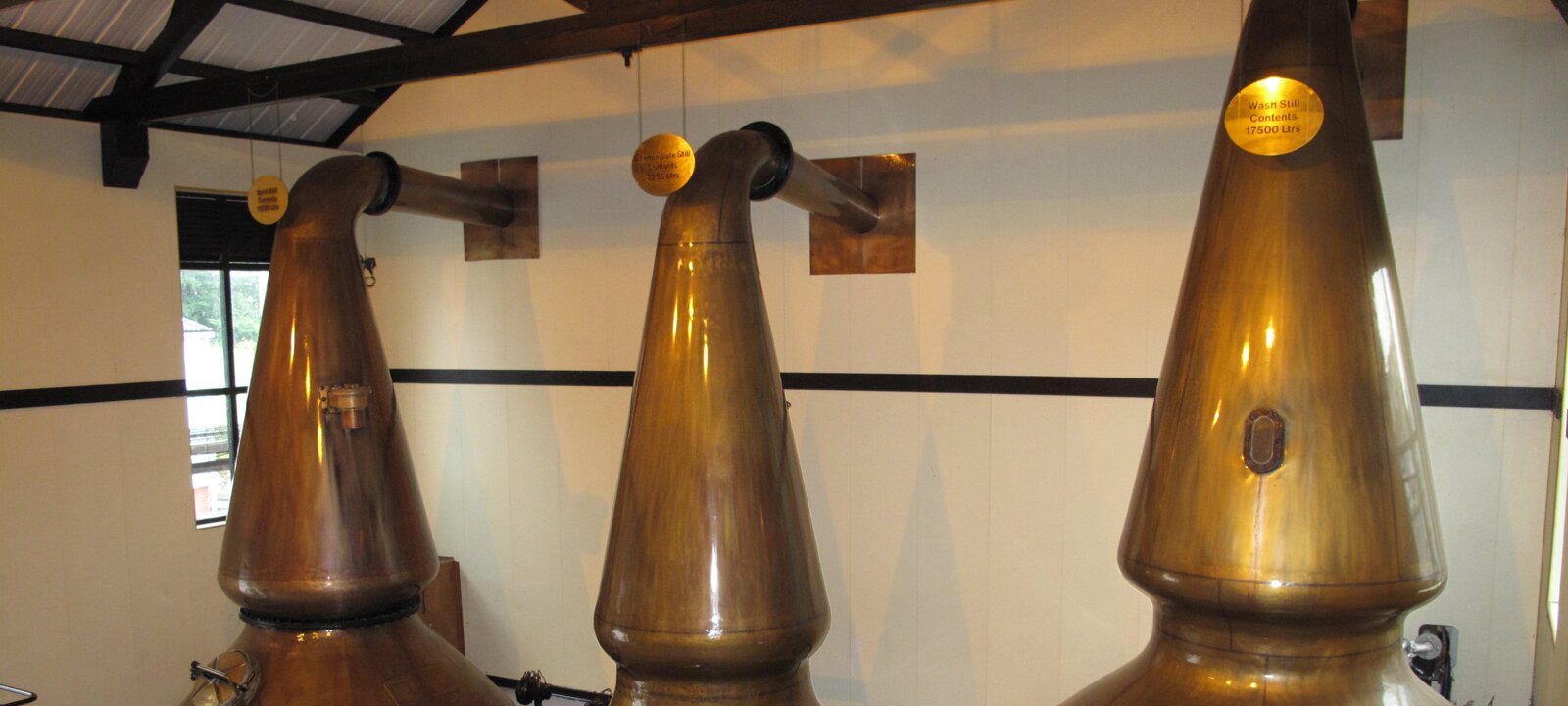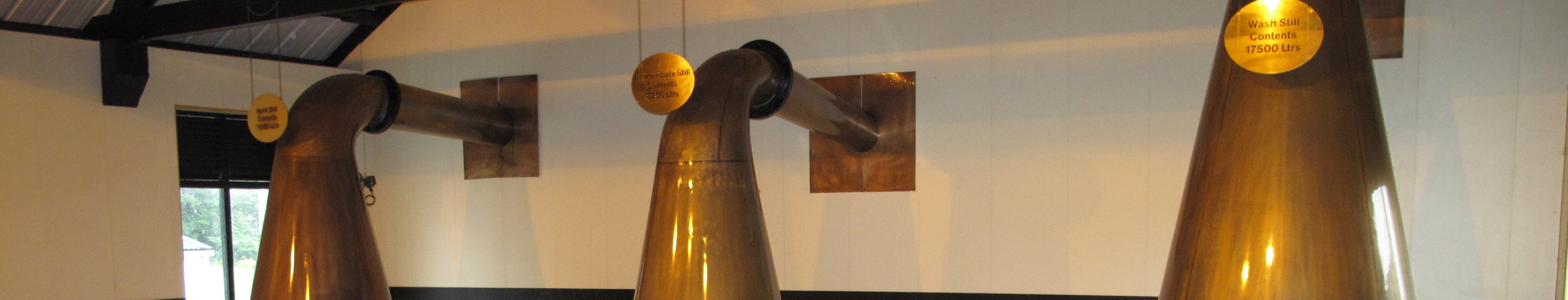Distillation equipment: this distillery uses a triple distillation to reach a 63% alcohol in the whisky (then brought back to 40% further in the process).