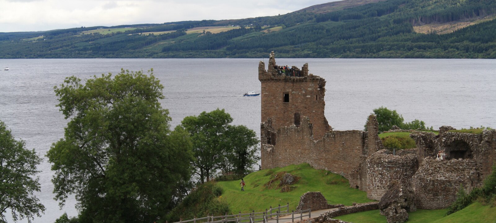 The castle overlooks Loch Ness, the longer loch in Scotland.
