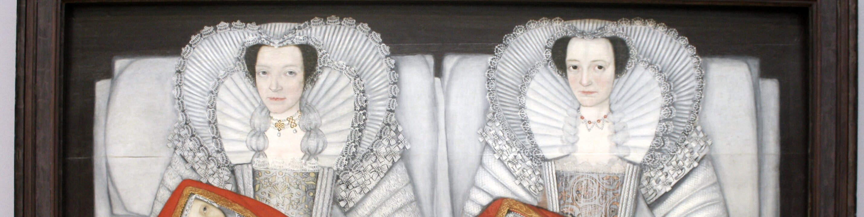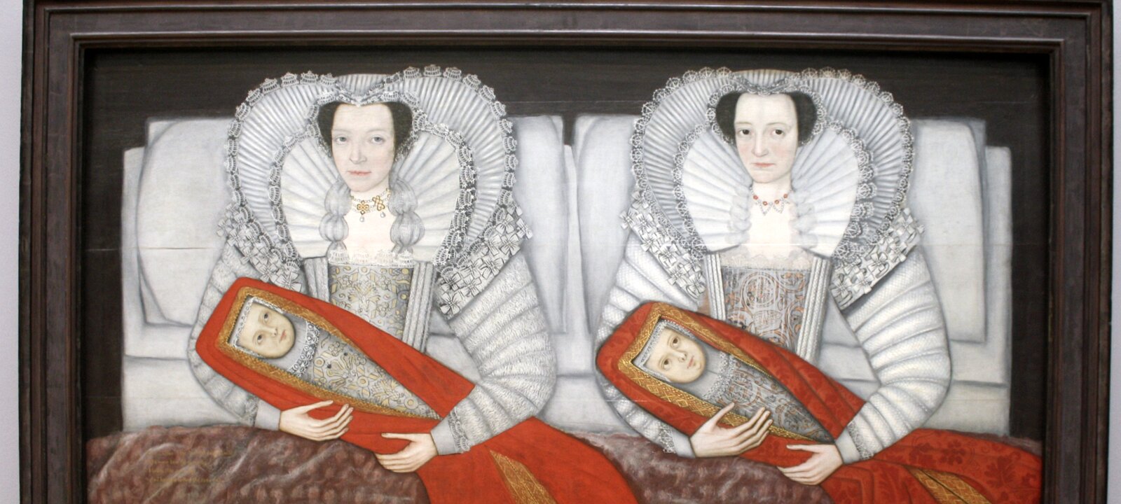British school, The Cholmondeley Ladies, c. 1600-1610. According to the inscription, they were born the same day, married the same day, and gave birth the same…