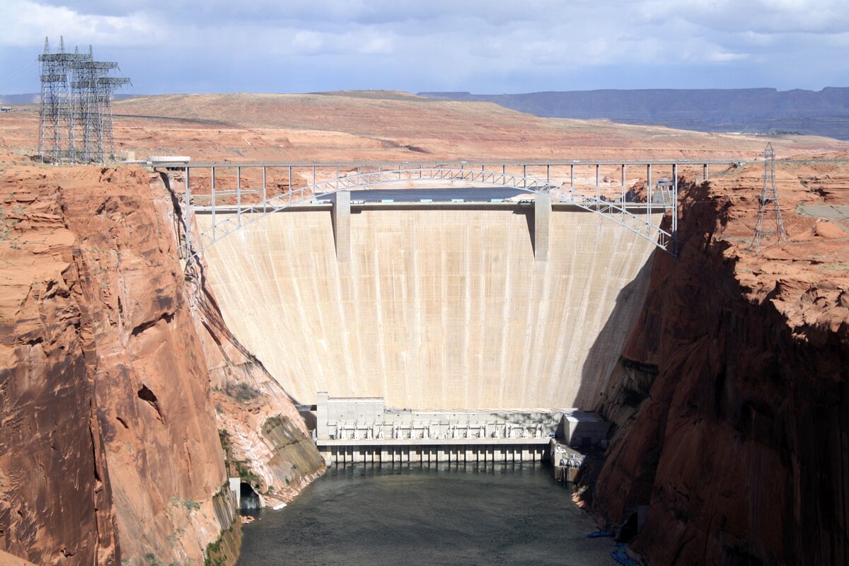 Glenn Canyon dam was built between 1956-1964. Height: 216m; length: 475m; 3.7 million cubic meters of concrete; 1320 MW generated power.