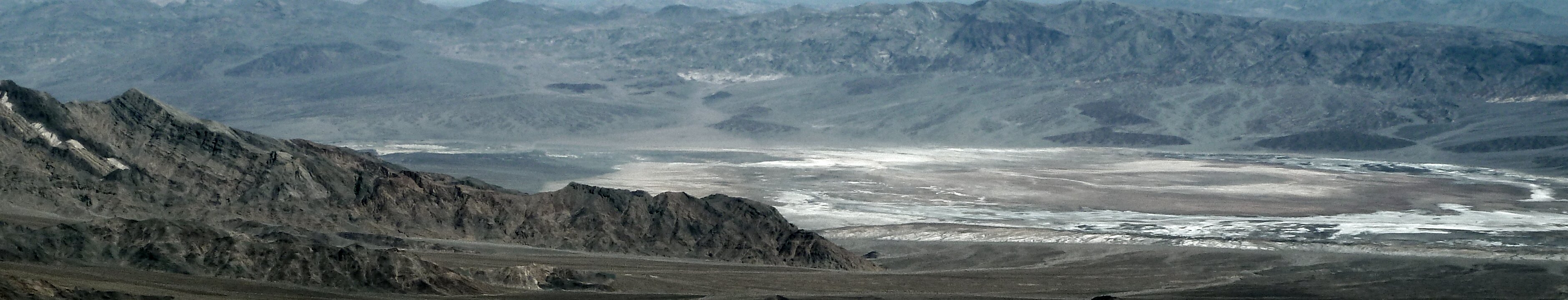 Badwater basin below and the peaks of the Panamint mountains above are the results of the land tilting along active fault lines; the valley floor drops and the…