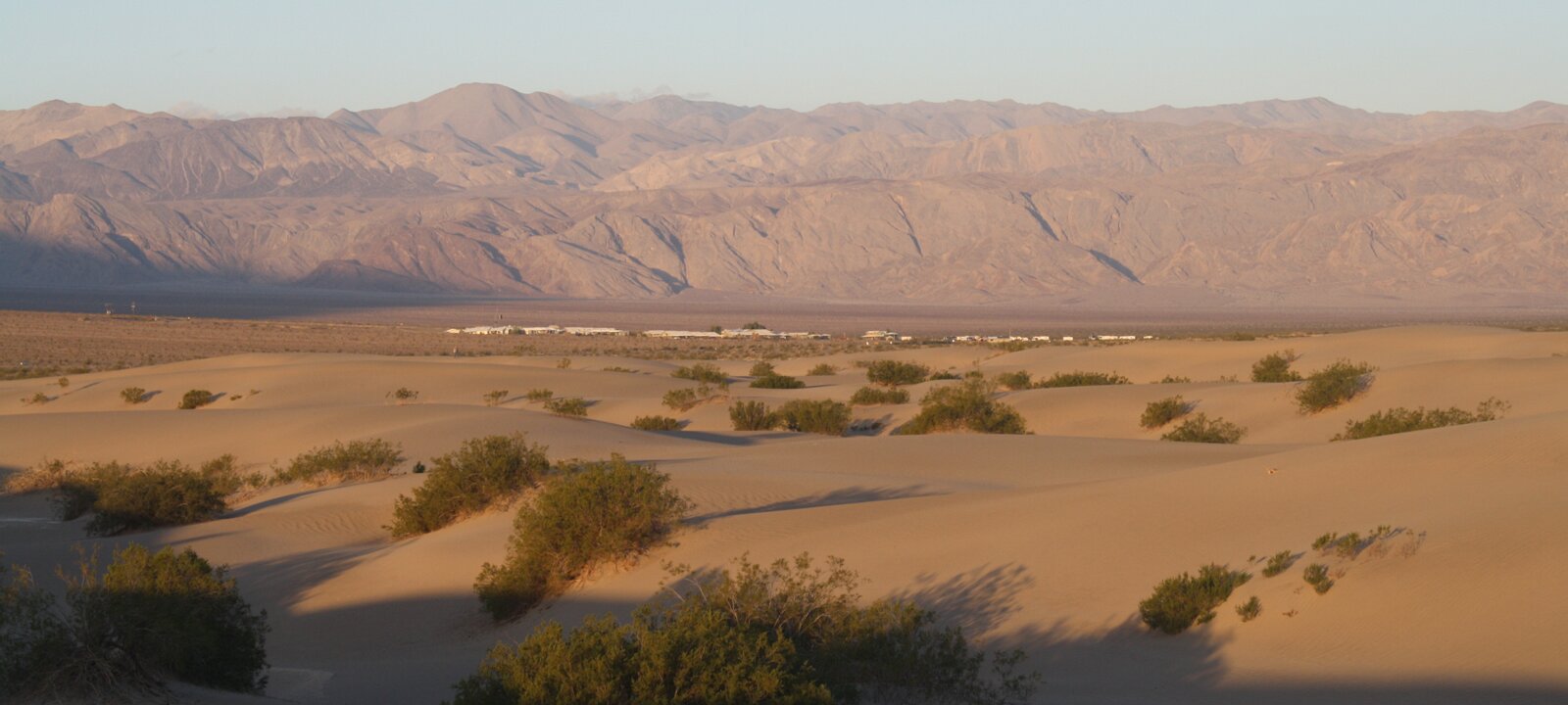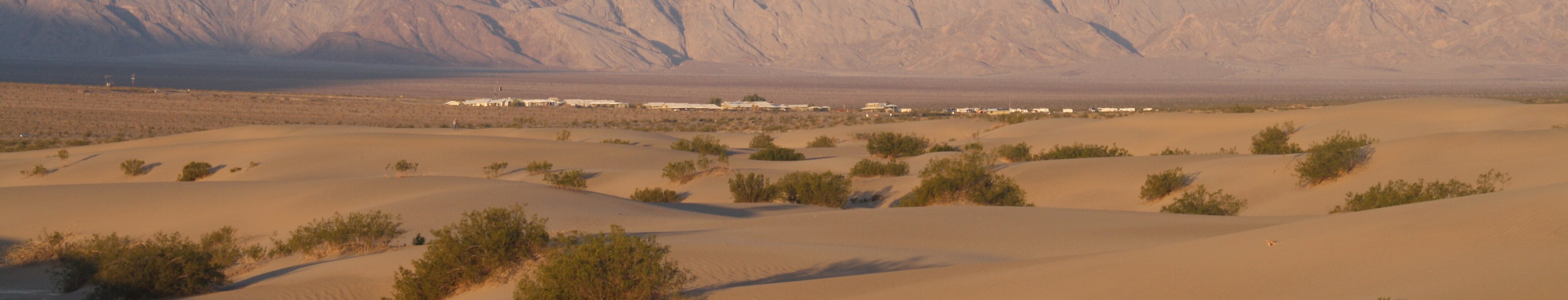 The mesquite sand dunes sprawl 35 sq km. For sand to form dunes, it requires sand, strong winds and a wind barrier. Sand erodes from the mountains in Death… Furnace CreekMosaic Canyon Labels