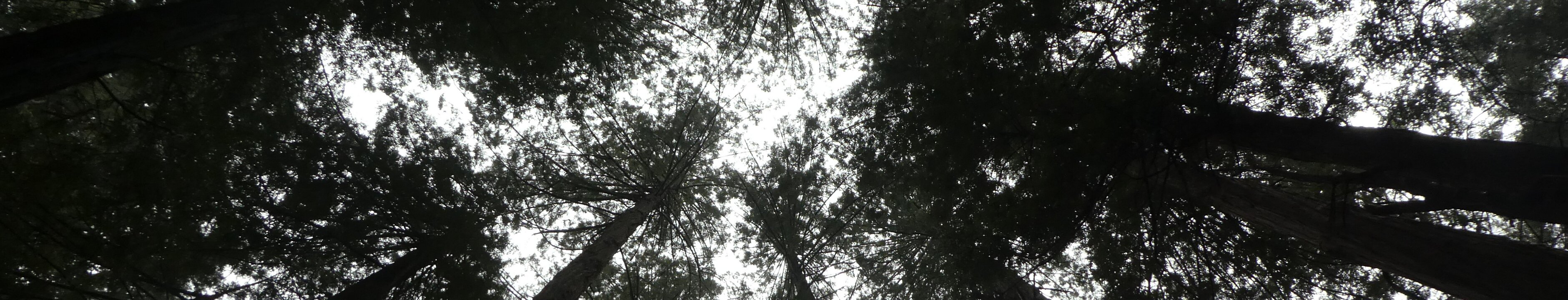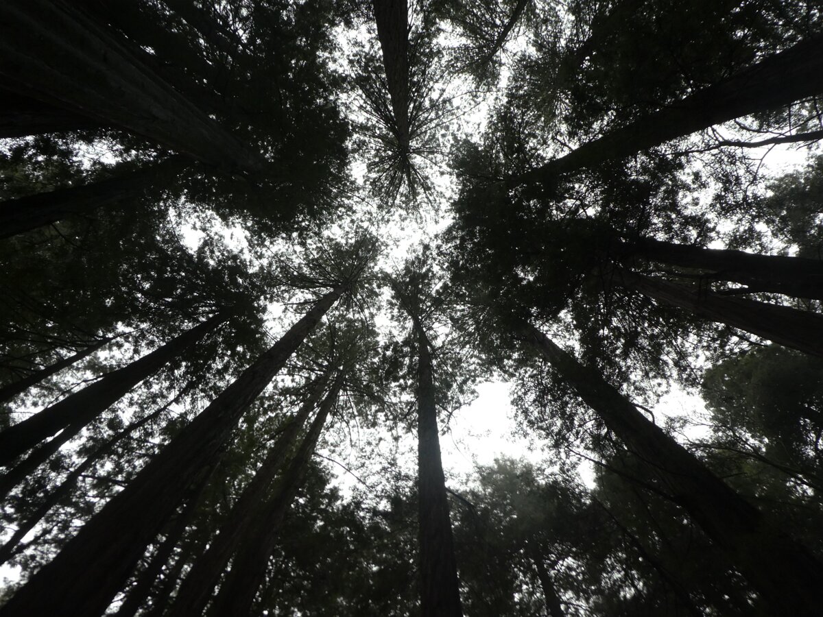 Redwood trees. All trunks belong to the same original tree, which died (middle). Sequoias. MissionPainted ladies Labels