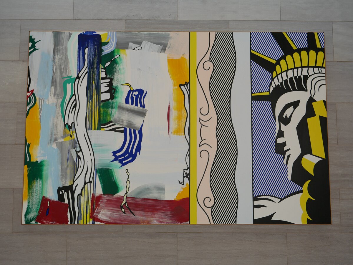 The East Building, built by IM Pei between 1971-1978. Van Gogh, The olive orchard, 1889. Henri Matisse, La coiffure, 1901. Pablo Picasso, Le gourmet, 1901. Pablo Picasso, The tragedy, 1903. Pablo Picasso, Juggler with still life, 1905, and Two youths, 1906. Pablo Picasso, Head of a woman, 1909. Henri Matisse, Open Window, Collioure, 1905. George Braque, The port of La Ciotat, 1907. Emil Nolde, Flower garden, kneeling woman with hat, 1908. Henri Rousseau, Tropical forest with monkeys, 1910. Ernst Ludwig Kirchner, Two girls under an umbrella, 1910. Seraphine Louis, Marguerites (left) and Feuilles (right), 1925-1928. Maurice Hirshfield, Tiger, 1940. Jackson Pollock, Mural, 1943, commissioned by Peggy Guggenheim for her Manhattan apartment. Andy Warhol, Green Marylin, 1962. Andy Warhol, Self-portrait, 1986. Roy Lichtenstein, Painting with statue of Liberty, 1983. Sculpture garden Labels