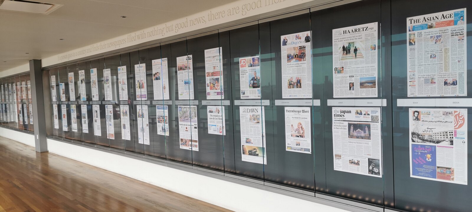Newseum, a museum dedicated to journalism, opened between 1997 and 2019. The First Amendment is inscribed on the facade.