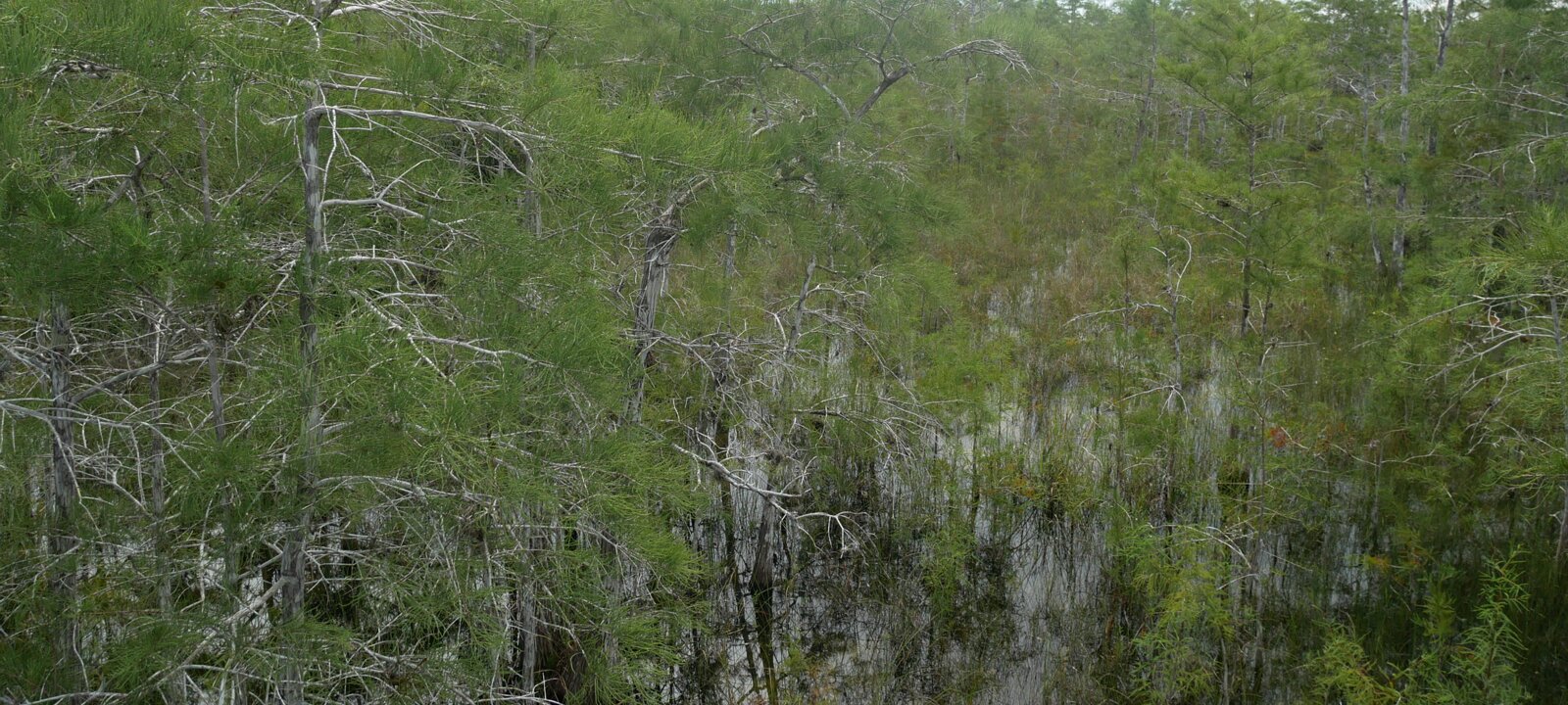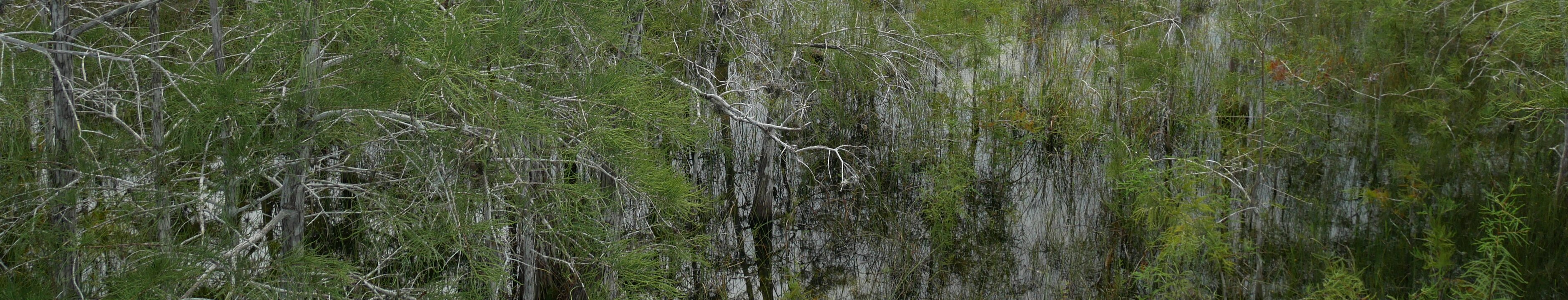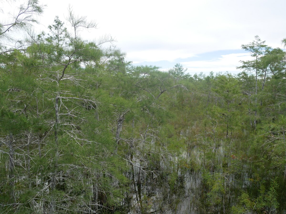 Shark river slough flows to the gulf; the river is 13km wide and very shallow. Baldcypress. Magnolia. Mahogany Hammock Trail Labels
