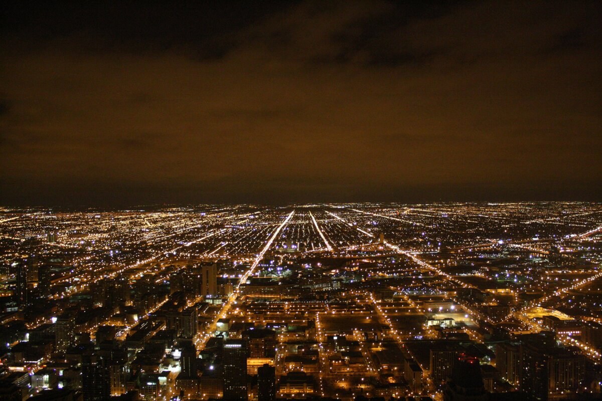 John Hancock tower (in black), 344 meters high, 100 stories, completed in 1969. Grant ParkMillenium Park Labels