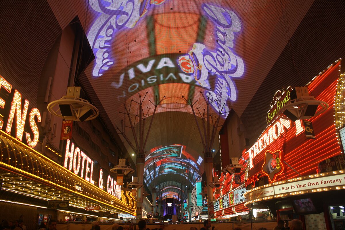 Fremont street. Fremont street. The roof is used as a giant LED display. CosmopolitanExcalibur Labels