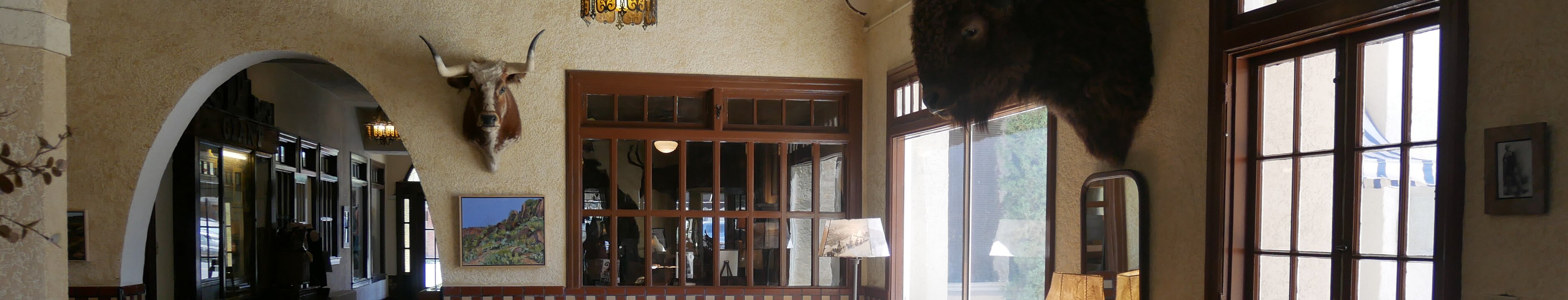 El Paisano hotel, named for the nearby Paisano mountain pass, built in 1930 in anticipation of a local oil boom that never materialized. . Courtyard. Courtyard. Chinati Foundation Labels