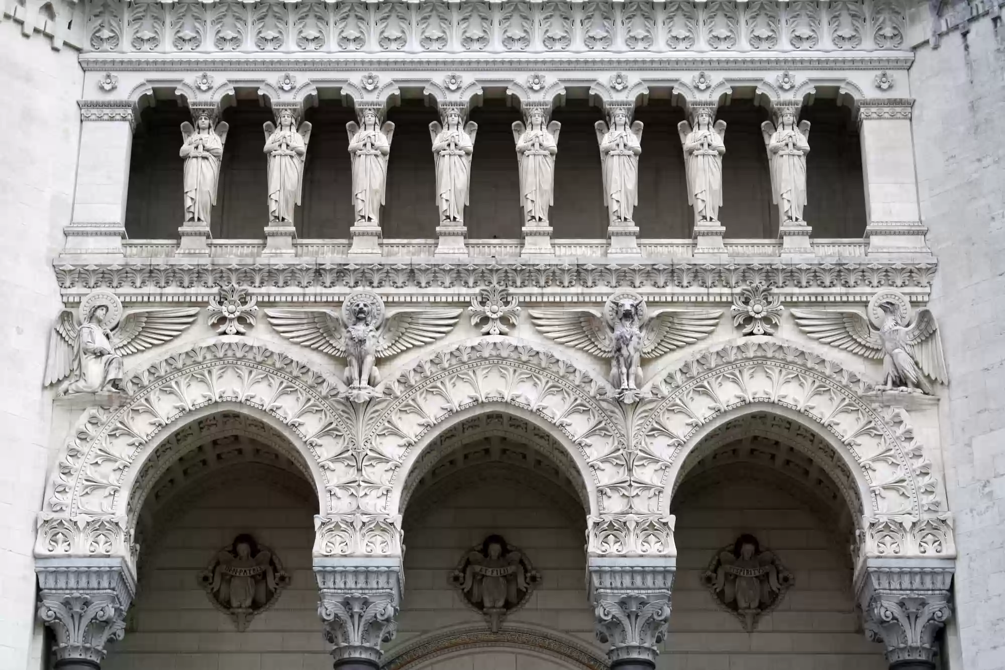Notre-Dame-de-Fourvière was built in 1872 to thank Mary for the sparing of Lyon during the war against Prussia in 1870. Inner dimensions: nave: 66x19 meters, height: 27 meters. Roman area Labels