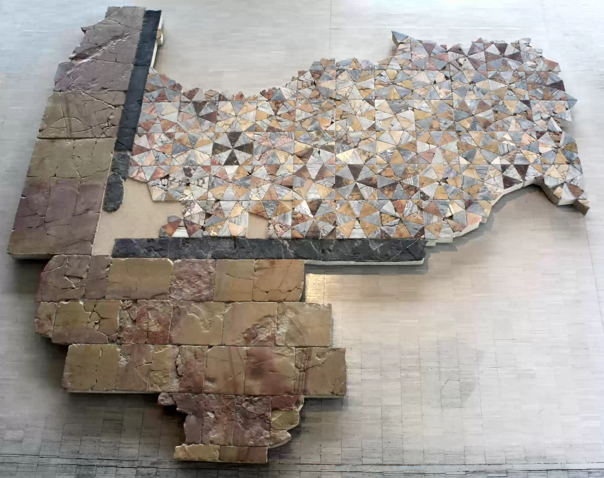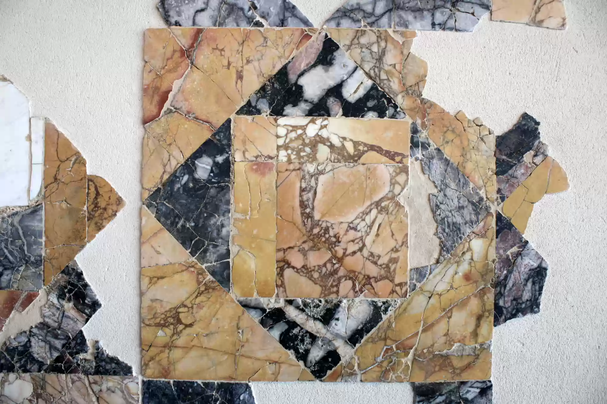 Marble floor, late 2nd century AD. The marble comes from Turkey and Tunisia.
