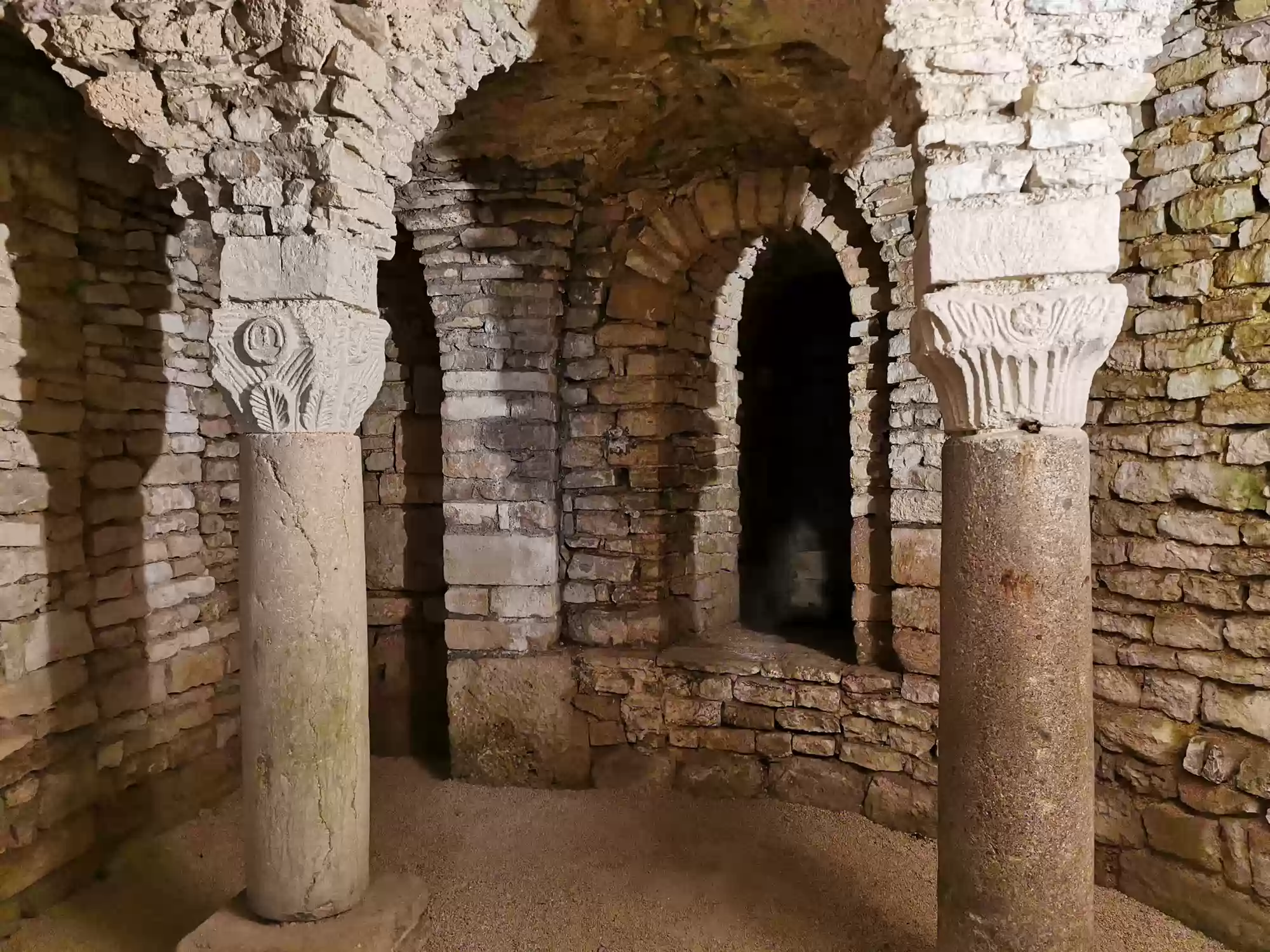 Carolingian pillar, copy. Carolingian crypt, 9th century. Carolingian crypt, 9th century. Carolingian crypt, 9th century. Carolingian crypt, 9th century. Carolingian crypt, 9th century. Carolingian crypt, 9th century. Carolingian crypt, 9th century. Carolingian crypt, 9th century. Carolingian crypt, 9th century. Labels