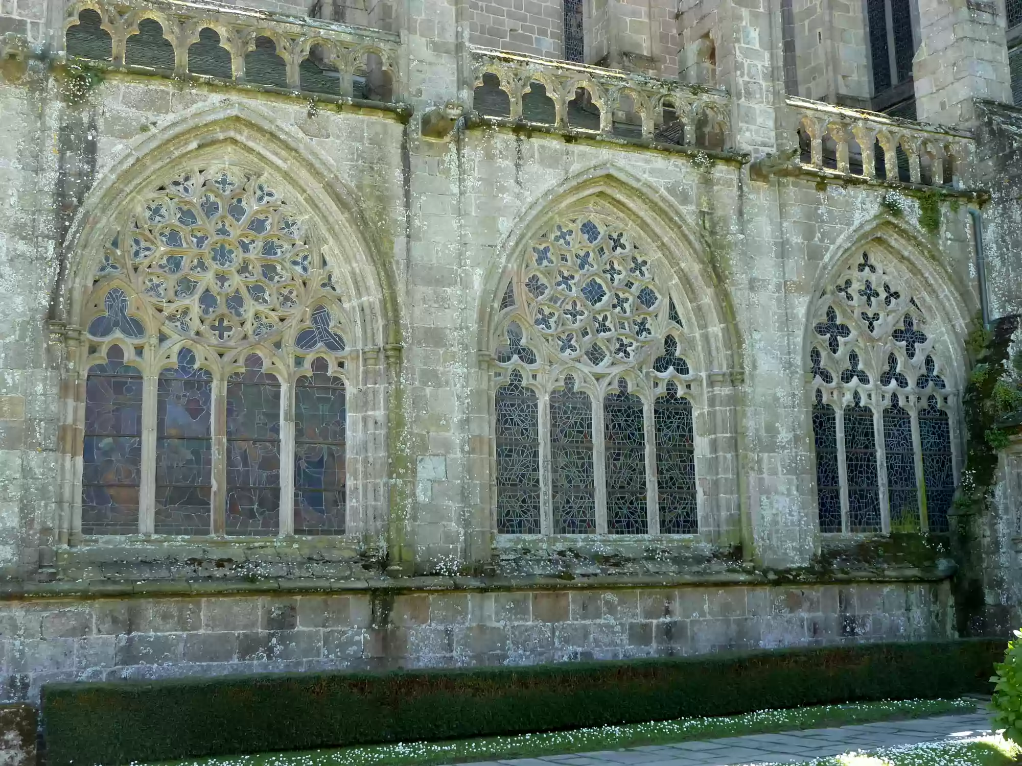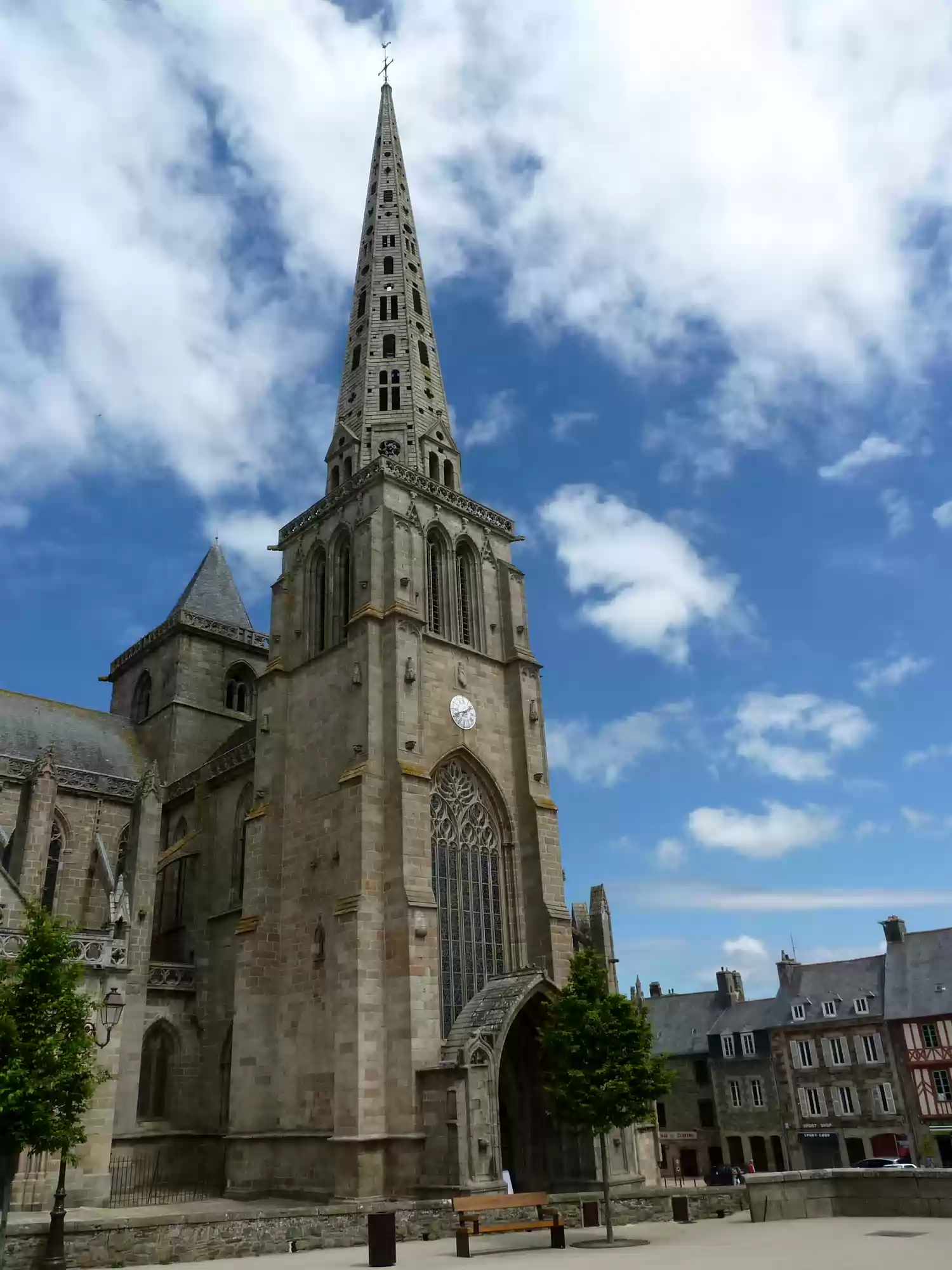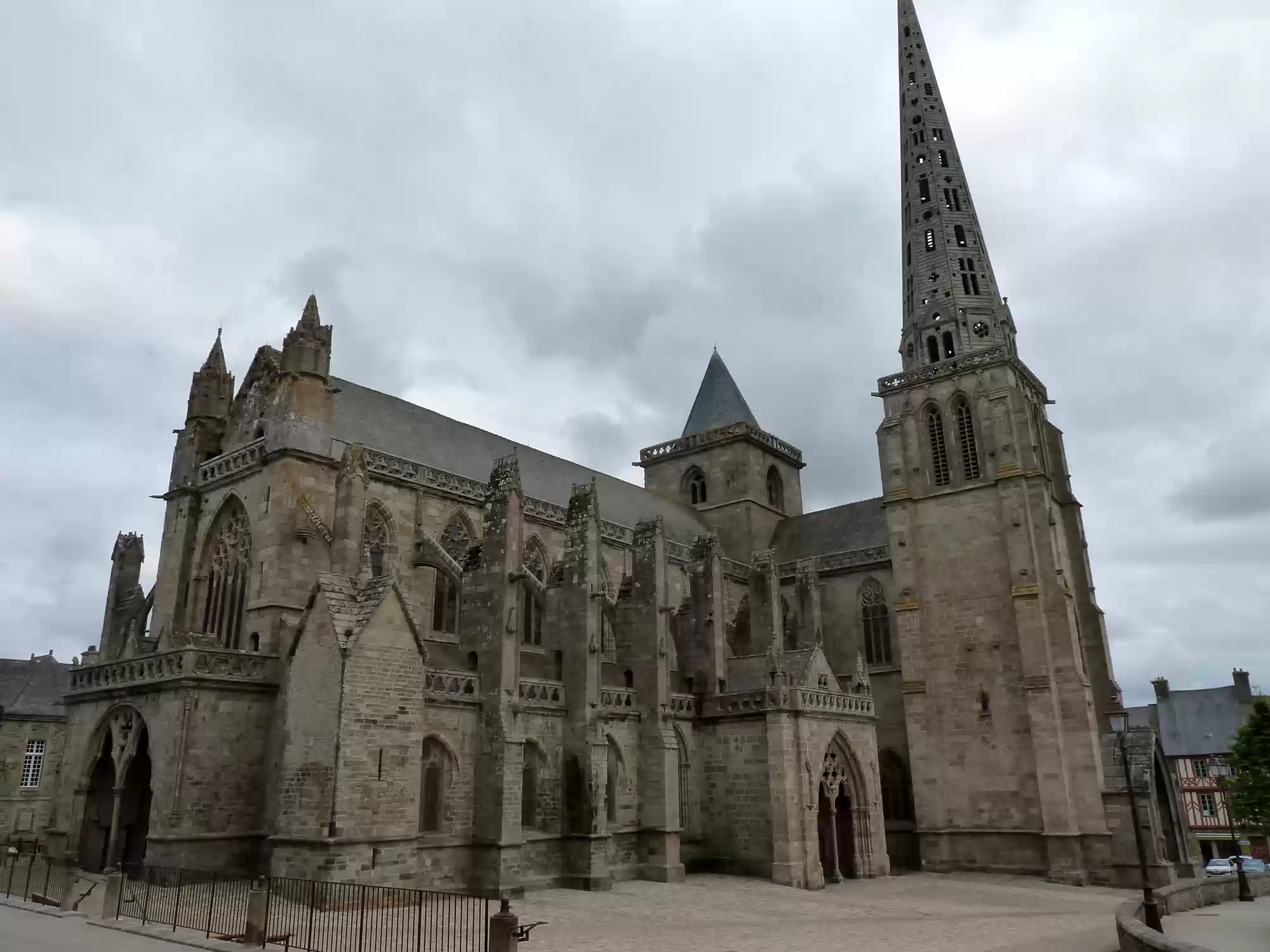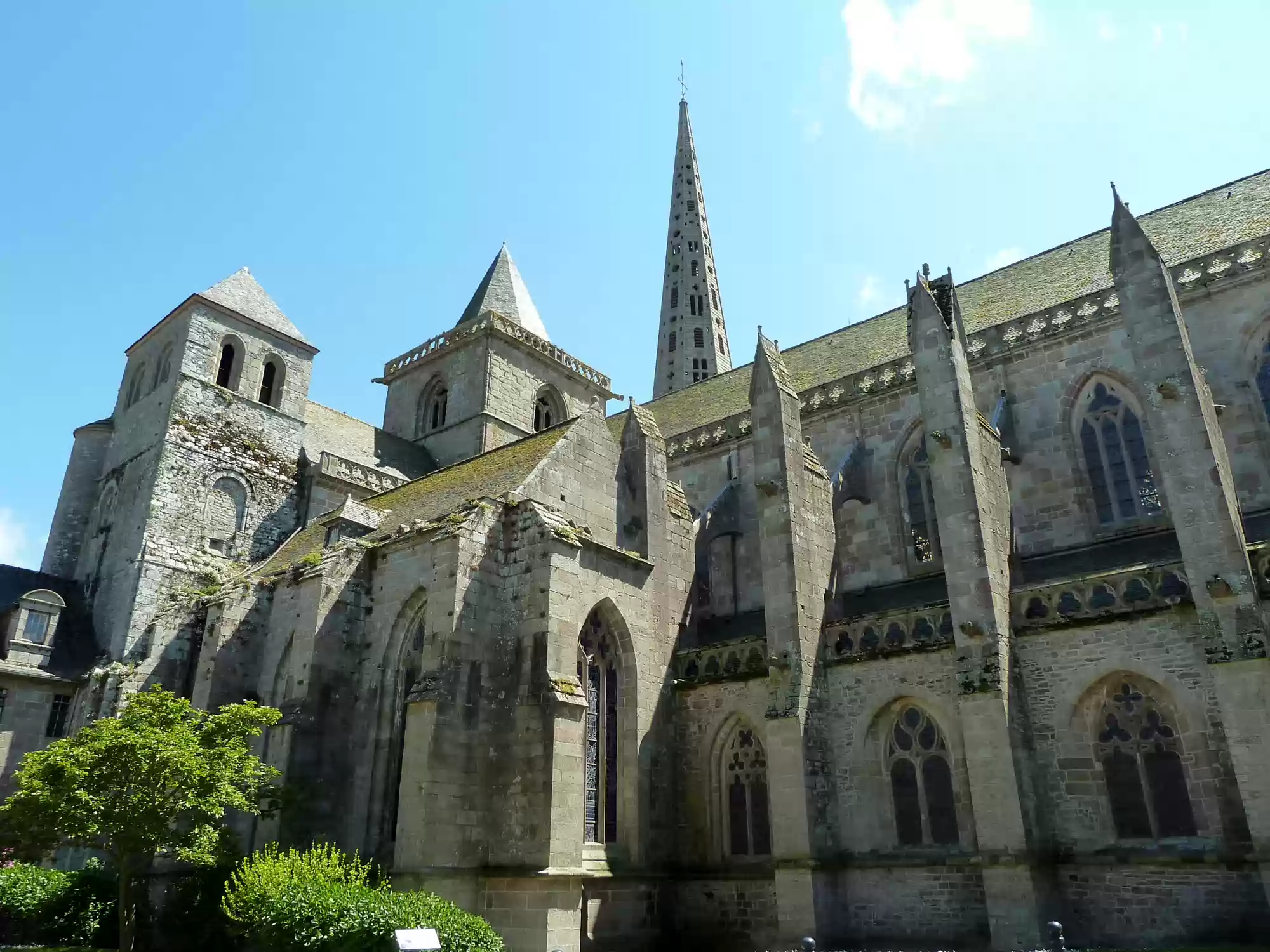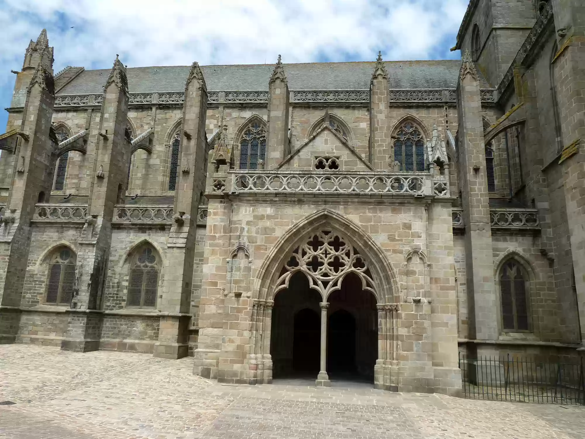 Saint-Tugdual cathedral was built in the 14th century between 1339 and 1400. Hasting tower, 11th and 12th centuries, the only part of the former romanesque cathedral that was integrated to the new gothic cathedral. Hasting tower, 11th and 12th centuries, the only part of the former romanesque cathedral that was integrated to the new gothic cathedral. Cloister Labels