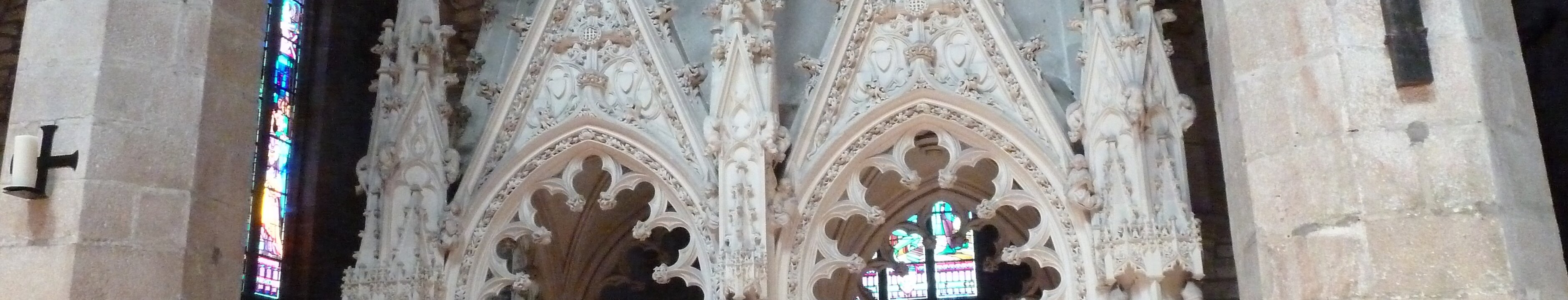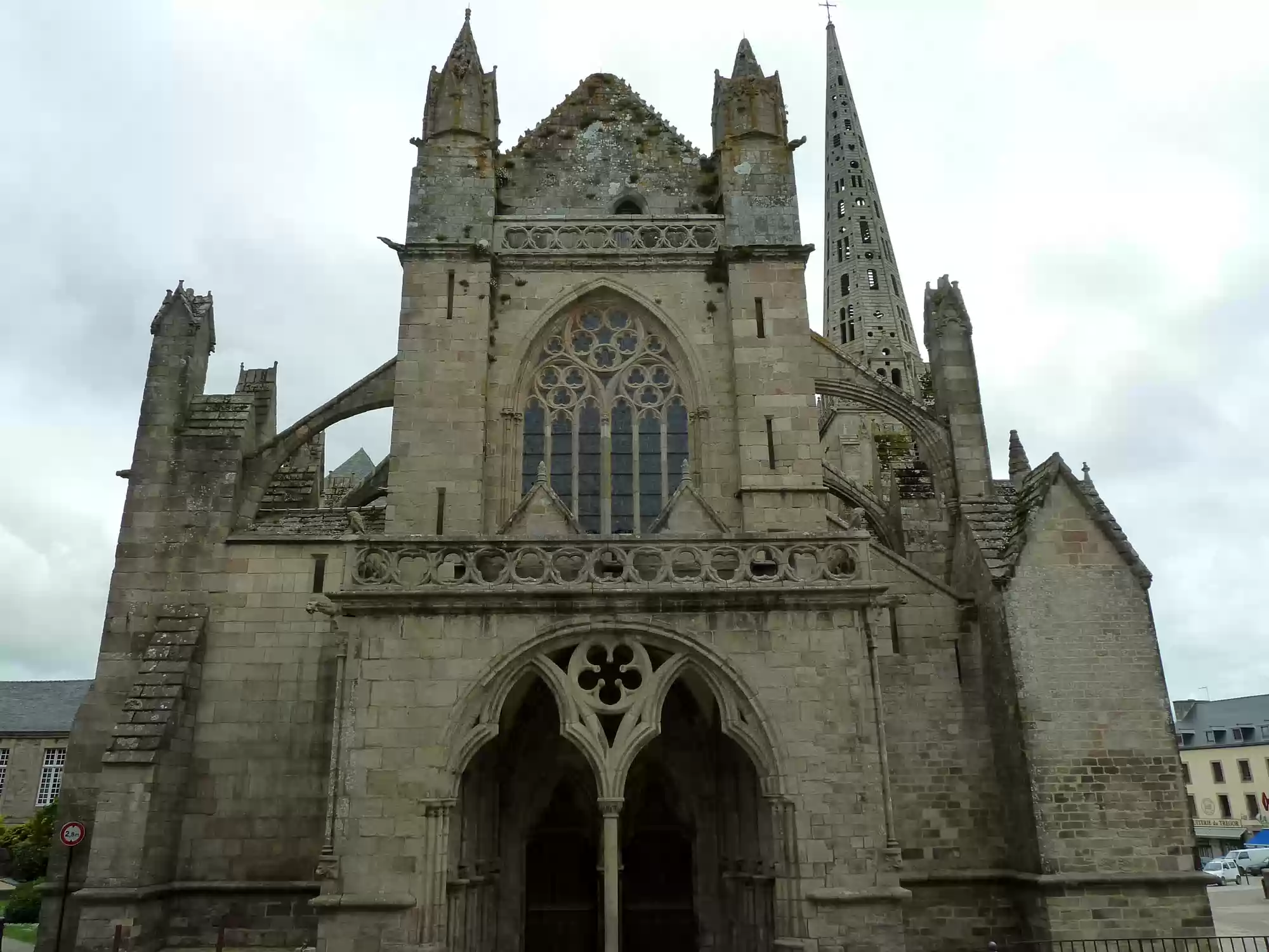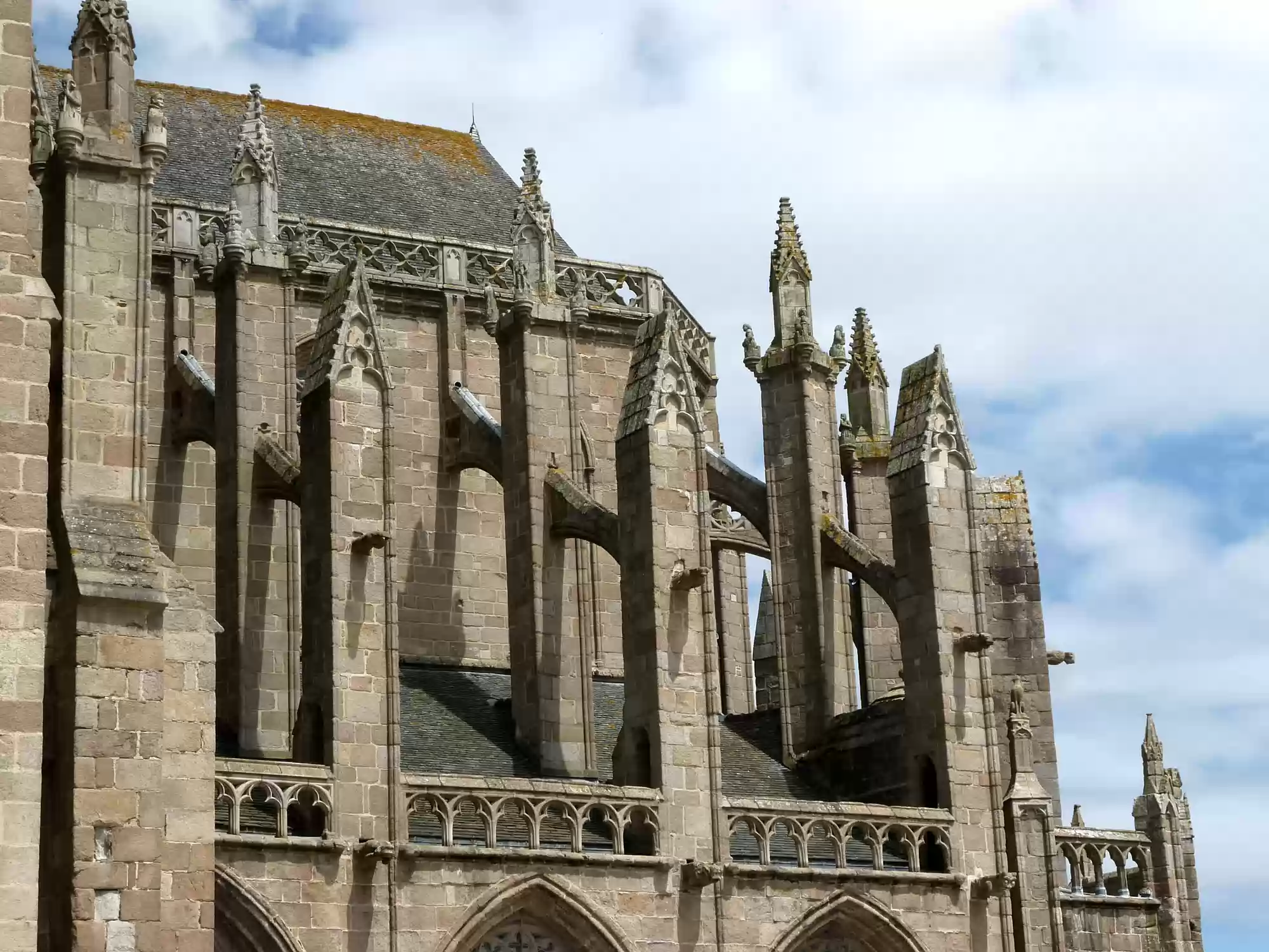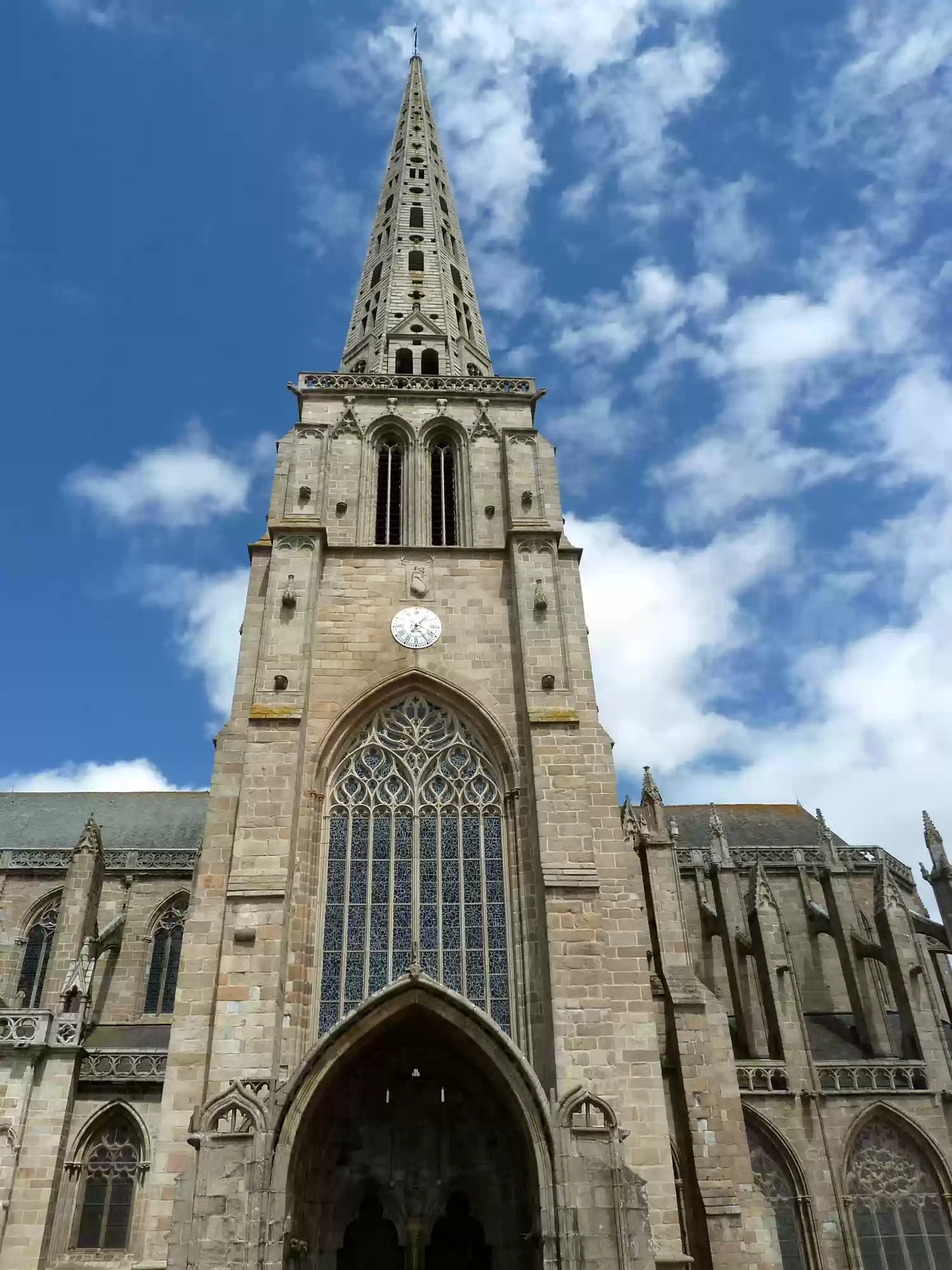 Saint-Tugdual cathedral was built in the 14th century between 1339 and 1400. Hasting tower, 11th and 12th centuries, the only part of the former romanesque cathedral that was integrated to the new gothic cathedral. Hasting tower, 11th and 12th centuries, the only part of the former romanesque cathedral that was integrated to the new gothic cathedral. Cloister Labels