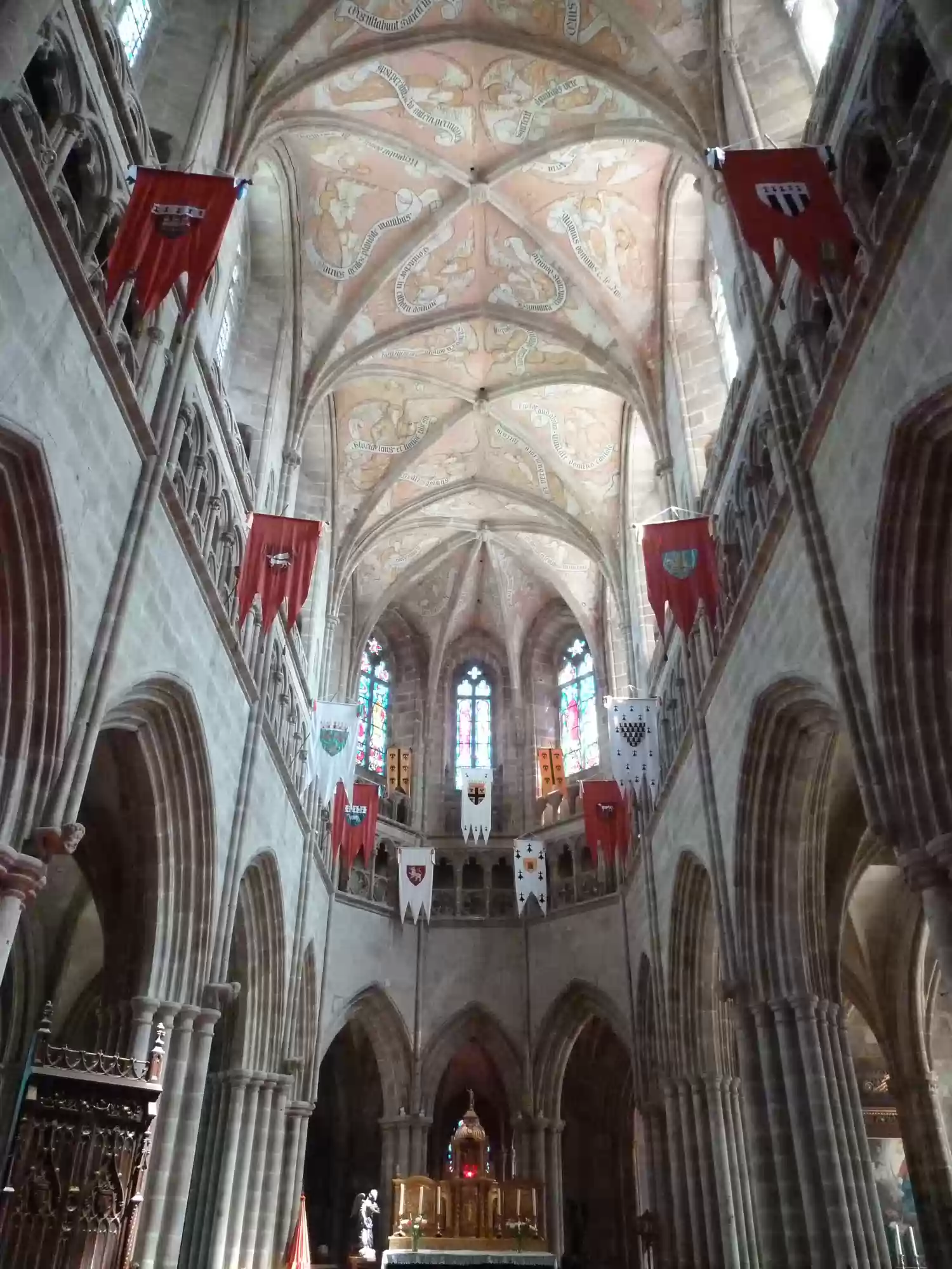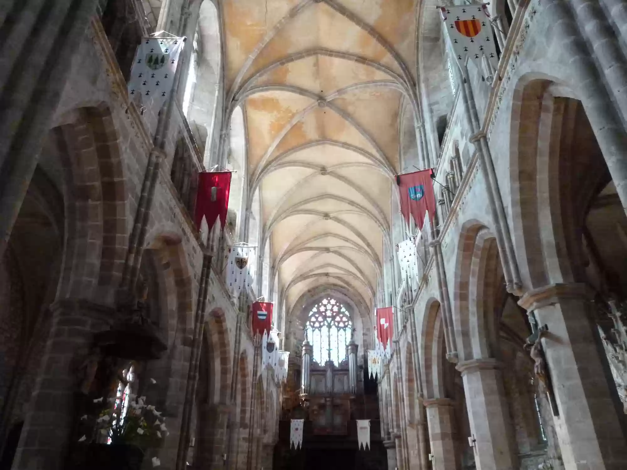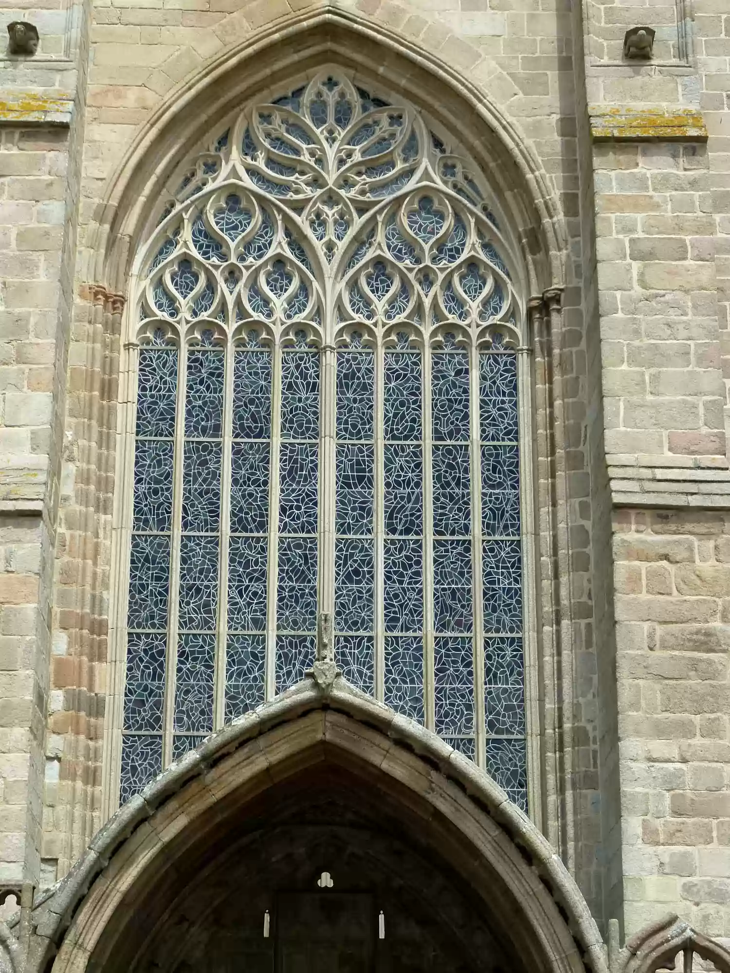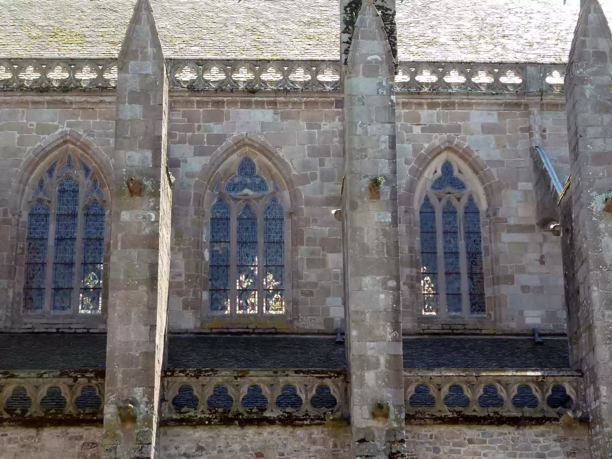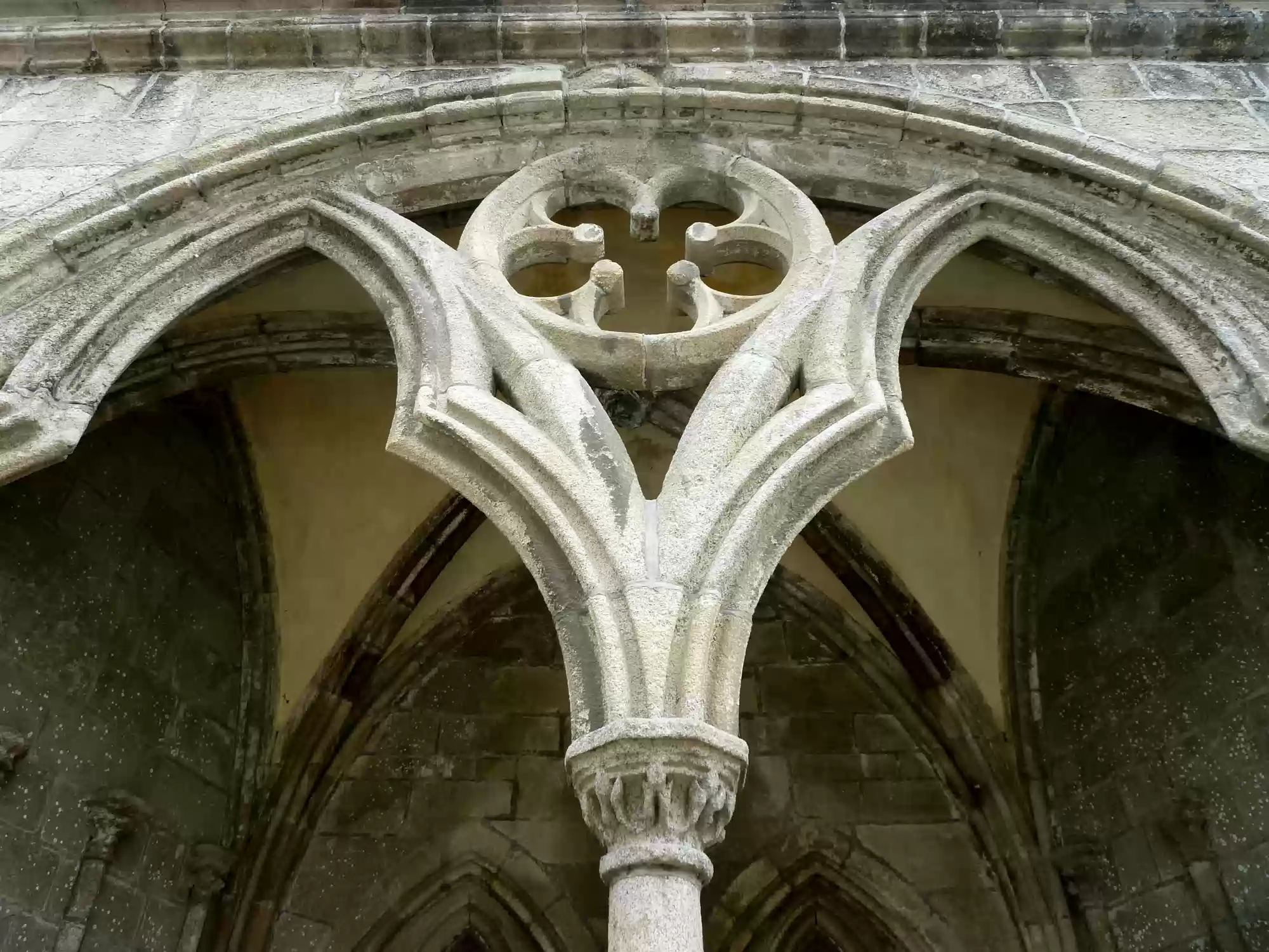 Saint-Tugdual cathedral was built in the 14th century between 1339 and 1400. Hasting tower, 11th and 12th centuries, the only part of the former romanesque cathedral that was integrated to the new gothic cathedral. Hasting tower, 11th and 12th centuries, the only part of the former romanesque cathedral that was integrated to the new gothic cathedral. Cloister Labels