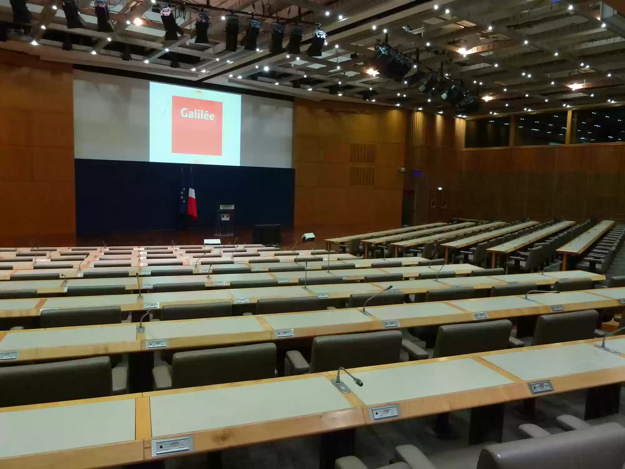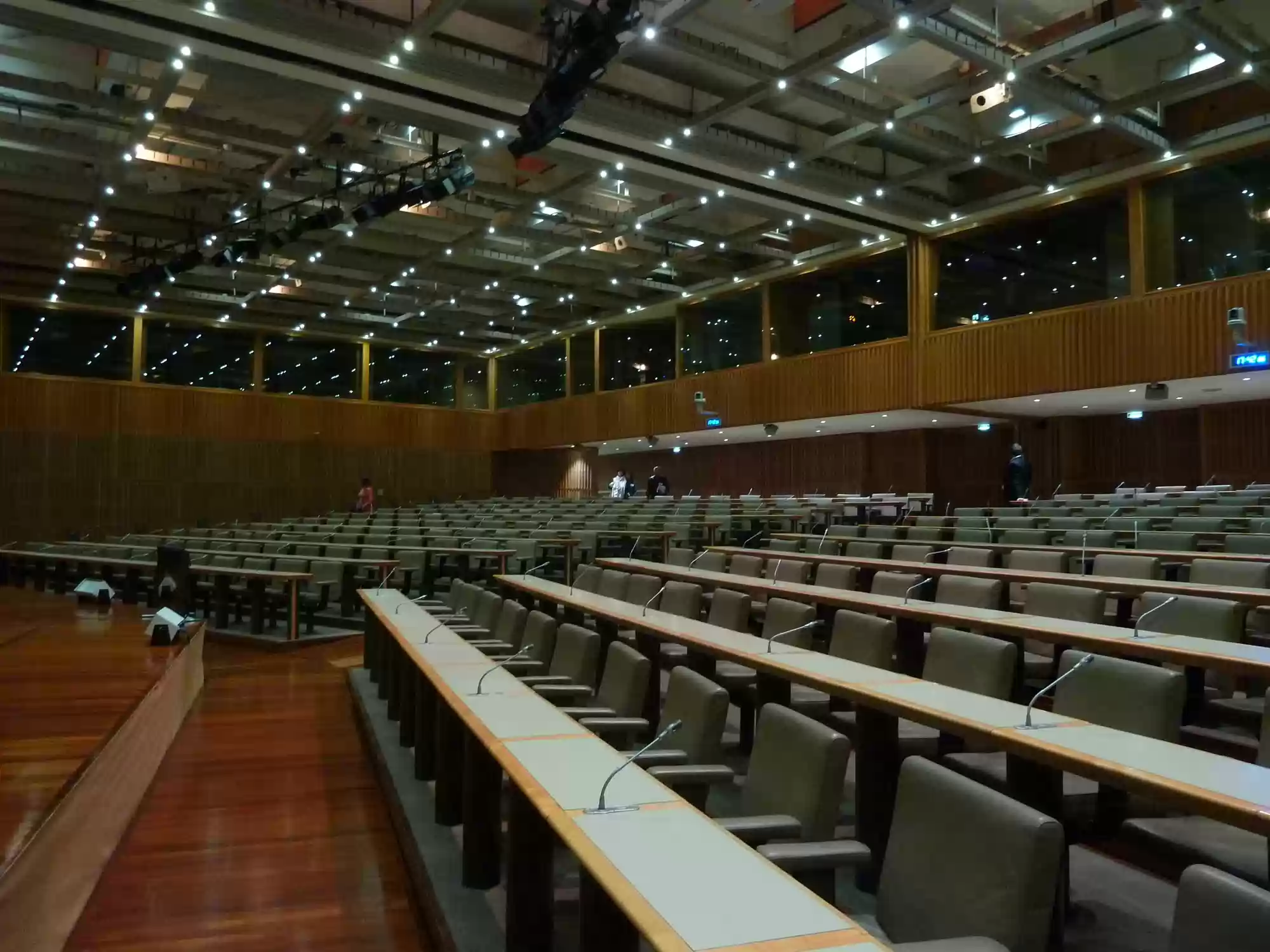 Conference rooms. The wall between the two rooms can be removed to make space for a larger room (capacity: 300).