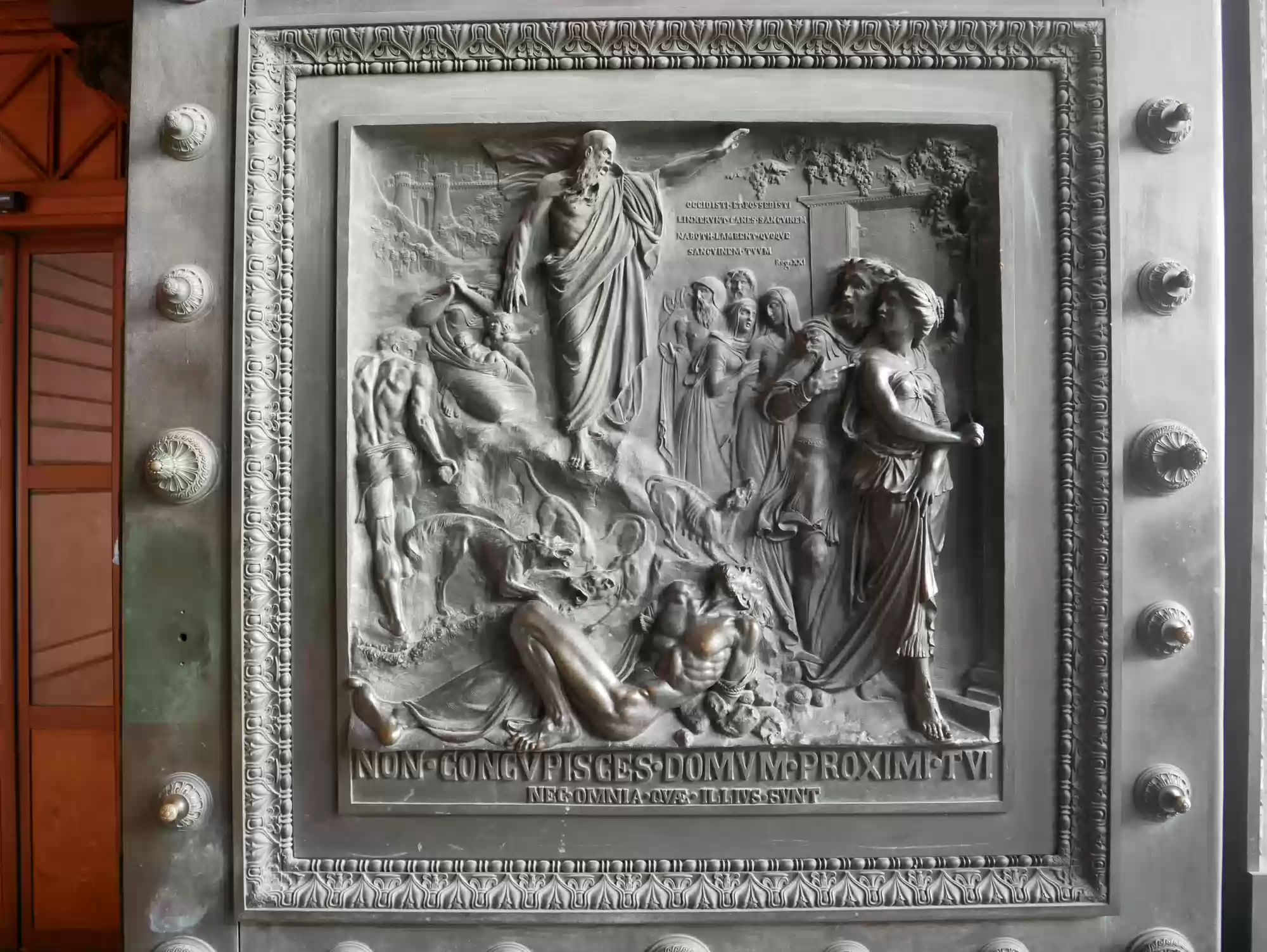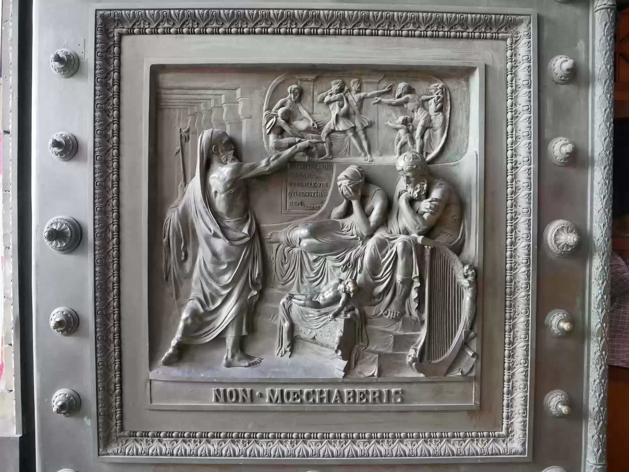 Bronze doors, 3.2 tons, by Henri de Triqueti, depicting the 10 commandments: You must not commit adultery.