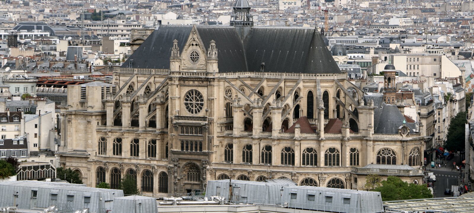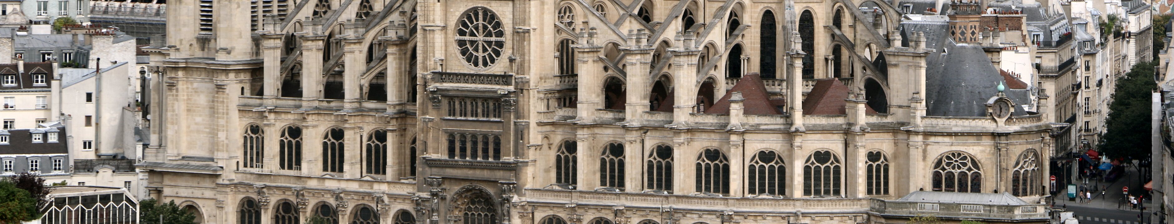 St Eustache church (1532-1633), the only Renaissance church in Paris. The classic facade dates back from 1754. The church is embedded in the urban fabric. Saint-Etienne-du-mont churchSaint-Jacques tower Labels