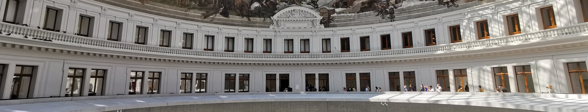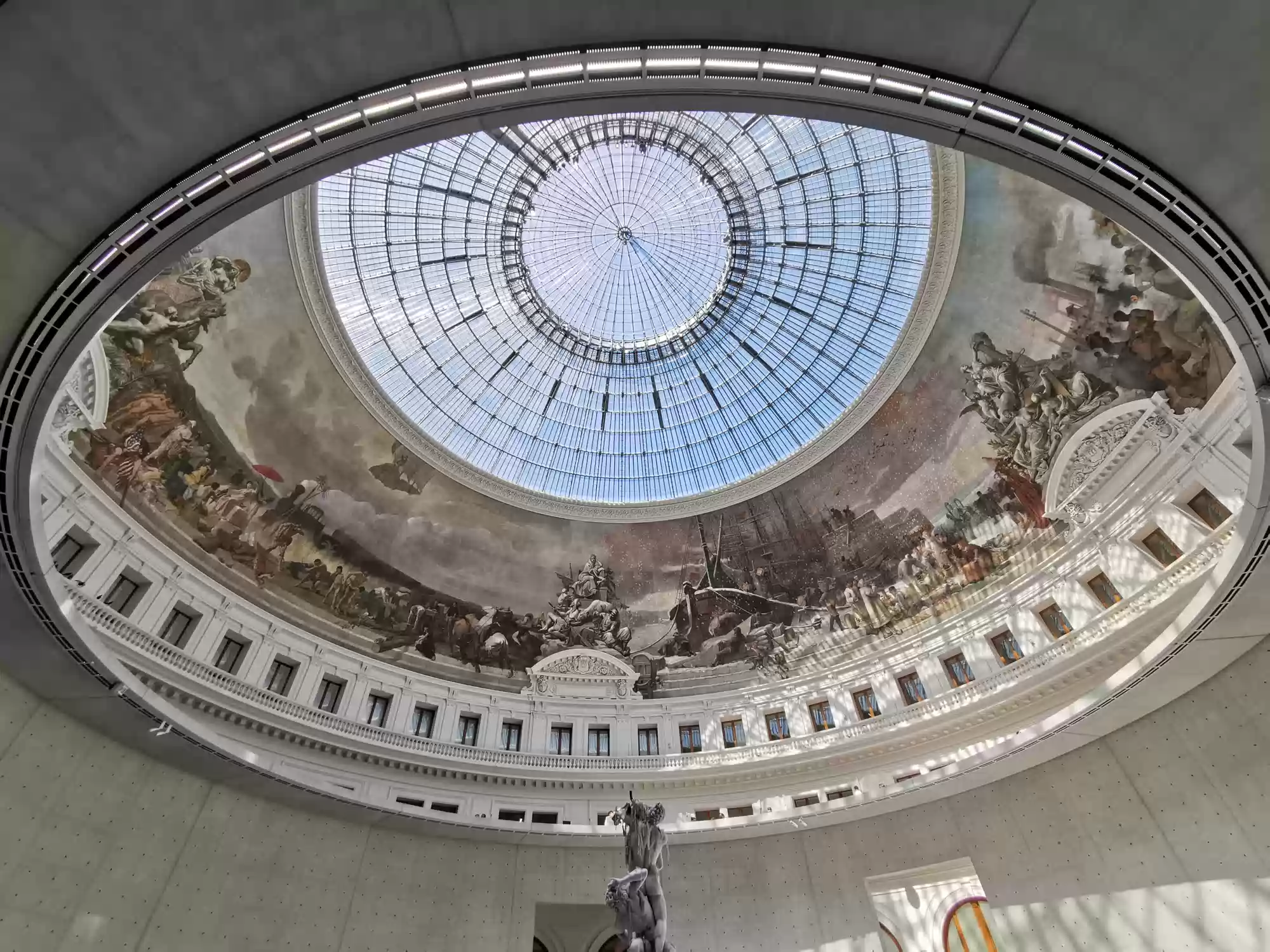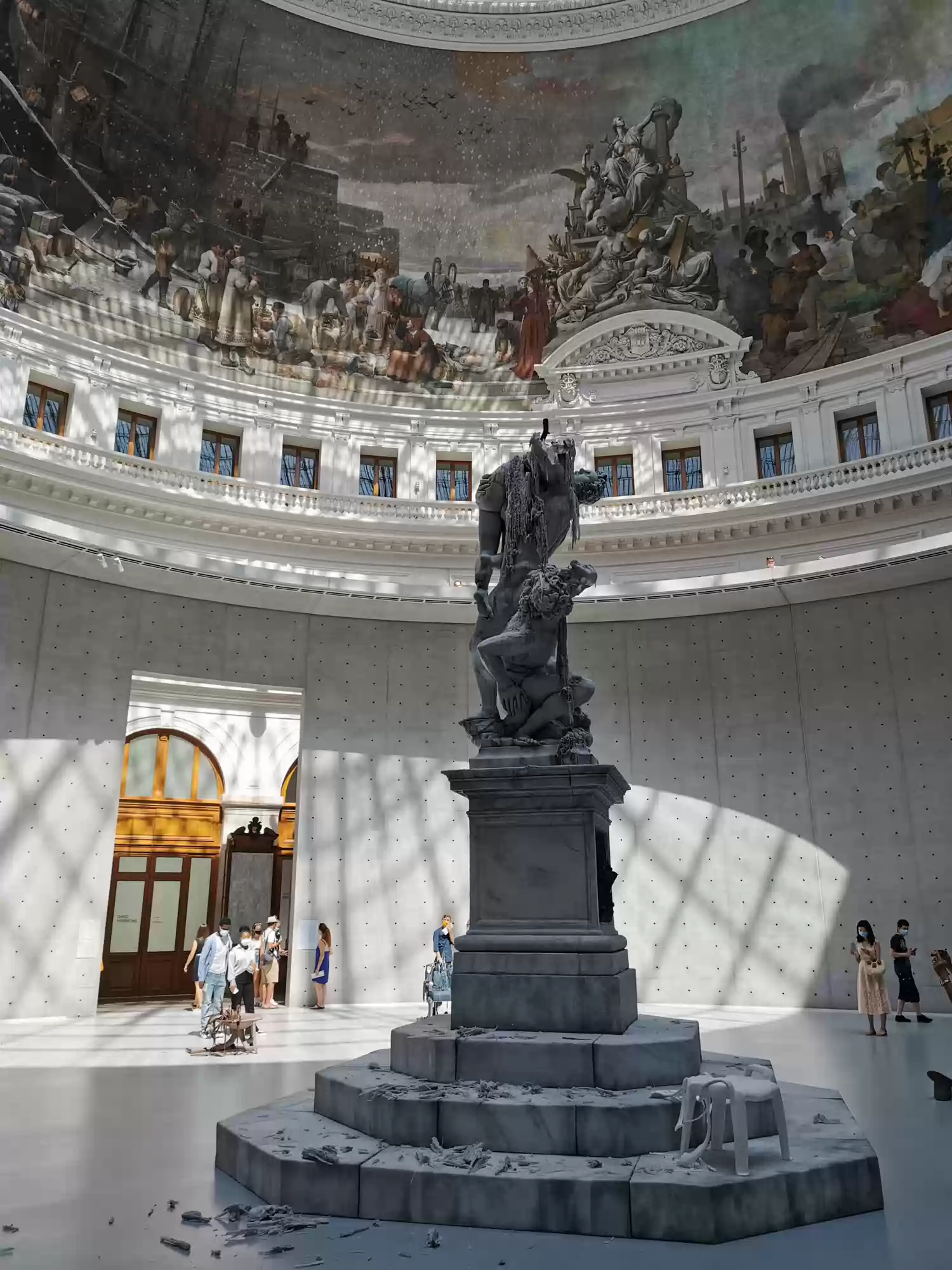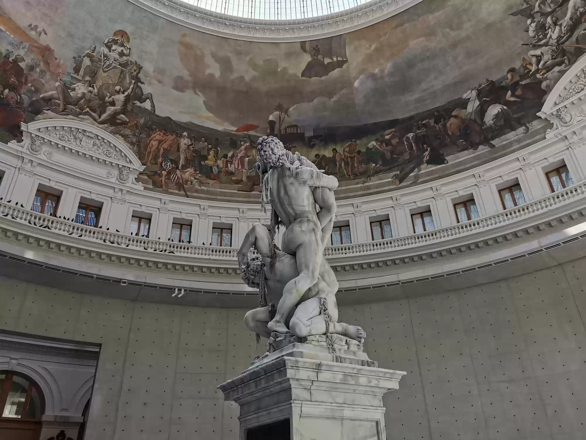 Bourse de commerce, where wheat was traded, built in the 1760s and remodeled in 1886-1889. It now houses the art collection of billionaire François… Left: Medicis column (1574, 31 meters), the only structure left from the former Medicis palace standing before the Bourse de Commerce was built. Building surrounding the Bourse du commerce. Arcades from the 18th century building. Left: the concrete structure installed by Tadao Ando. A concrete structure was installed by Tadao Ando in 2020 in the rotunda. The circular painting (1889) in the dome depicts trade between all continents. The circular painting (1889) in the dome depicts trade between all continents. Urs Fischer, monumental candles, 2011-2020. Urs Fischer, monumental candles, 2011-2020. Labels