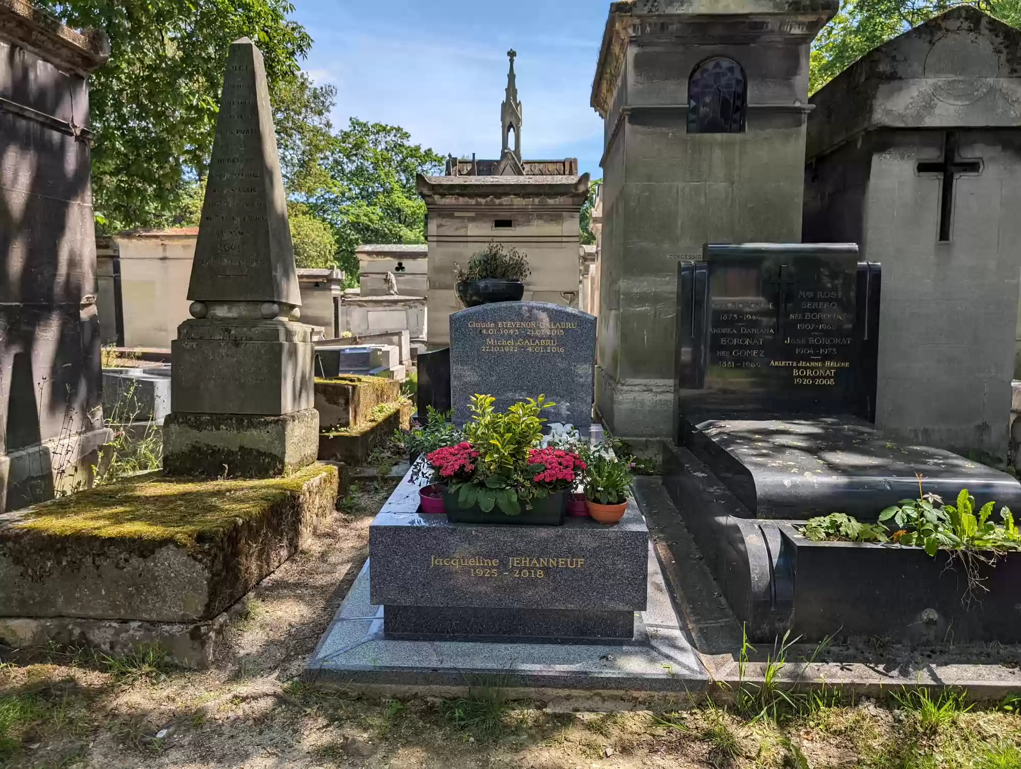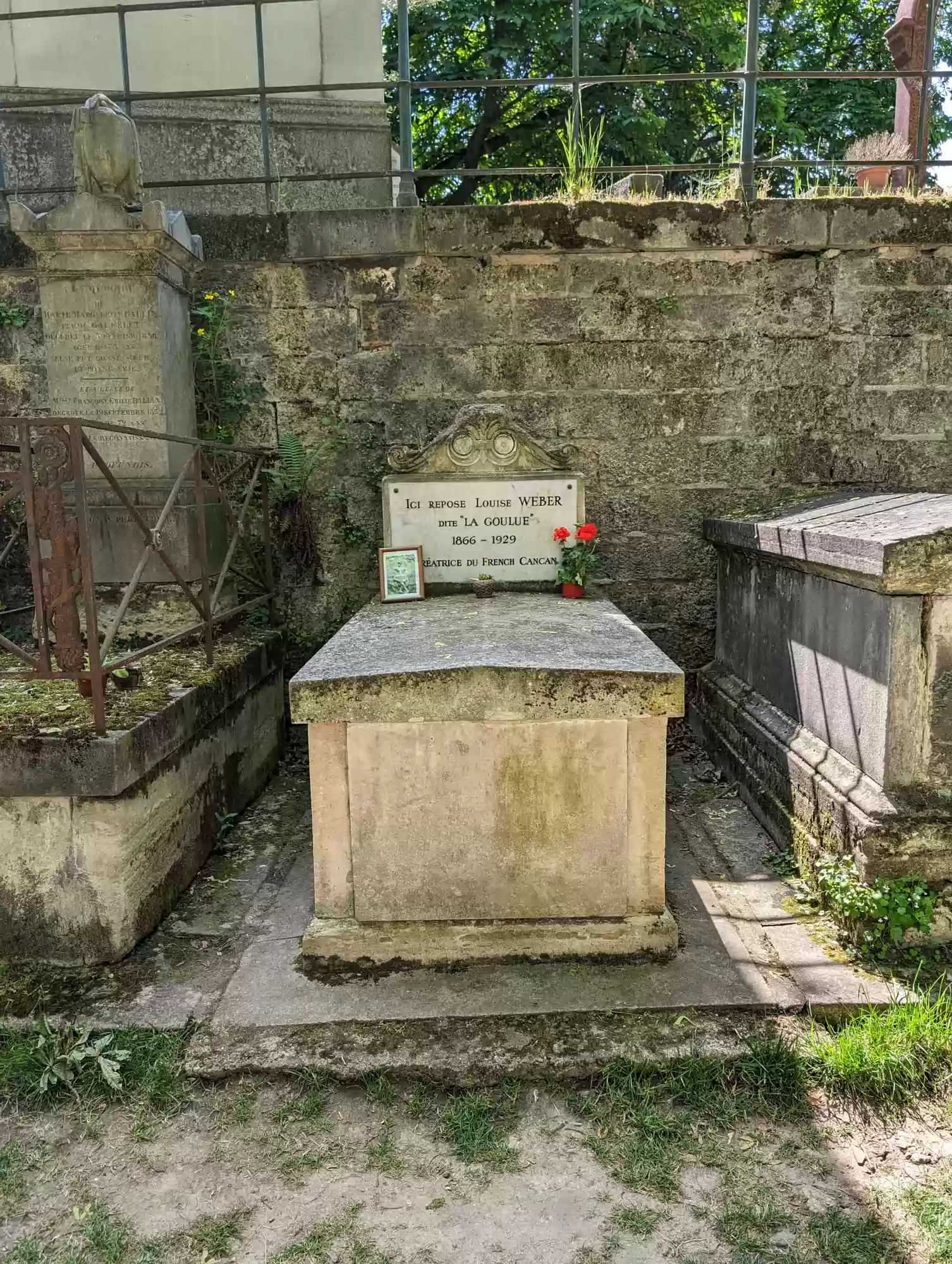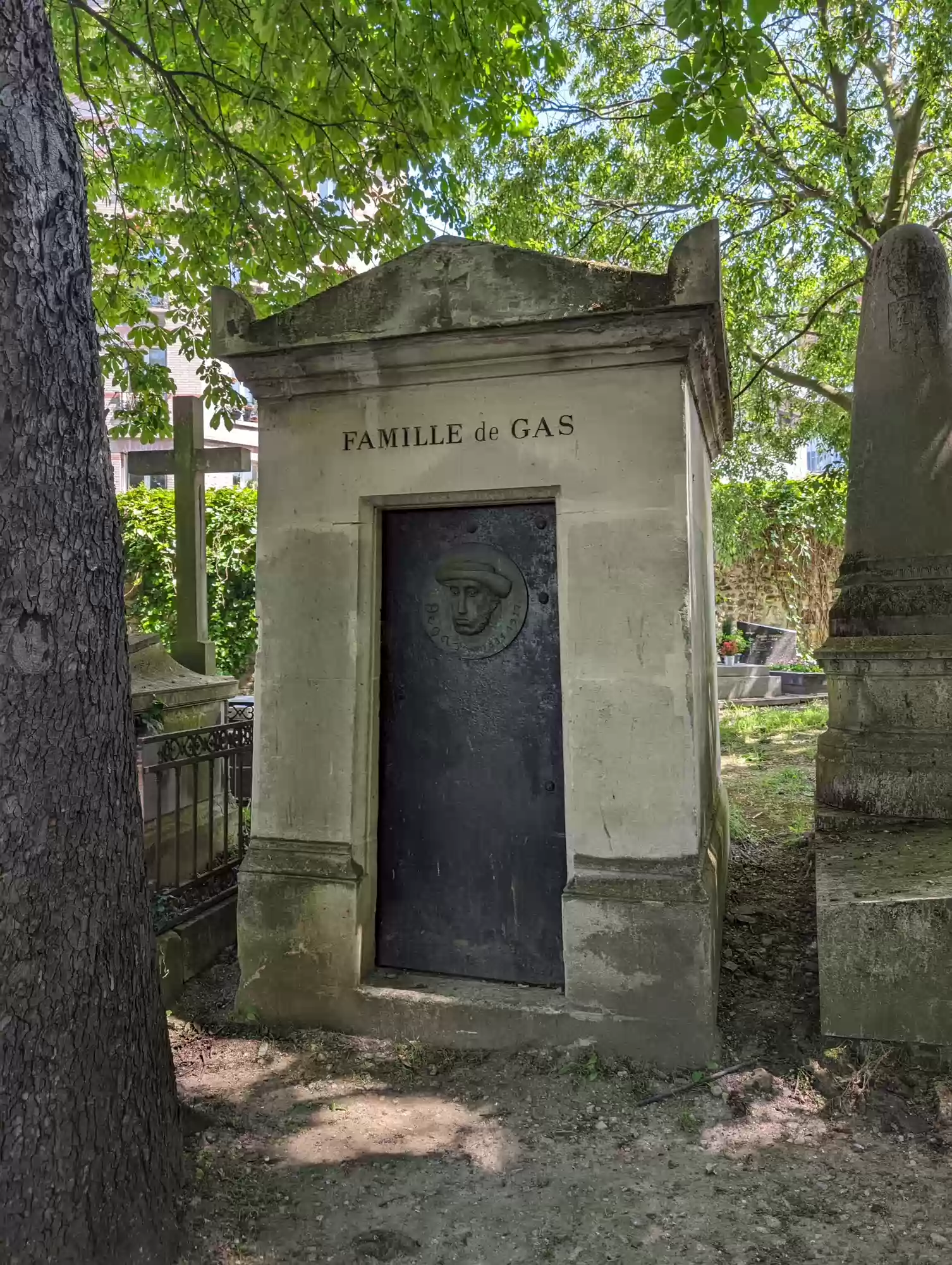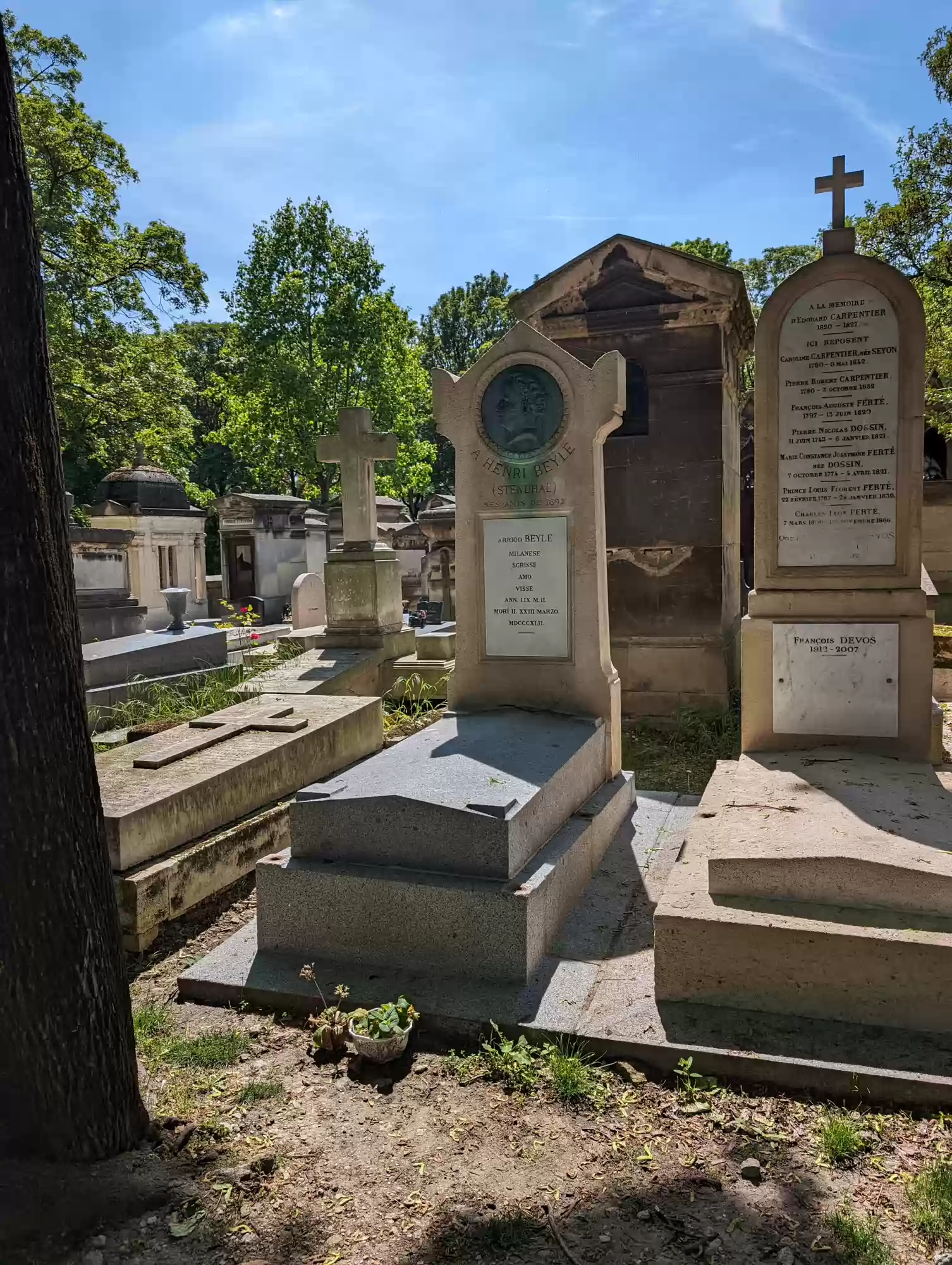 The cemetery of Montmartre was created in 1825. It holds 21500 tombs. Leon Foucault. Adolphe Sax. Degas family. Alexandre Dumas, fils. Michel Berger and France Gall. Michel Galabru. Edmond and Jules de Goncourt. Stendhal. André Marie Ampère. La Goulue. Hector Berlioz. Labels