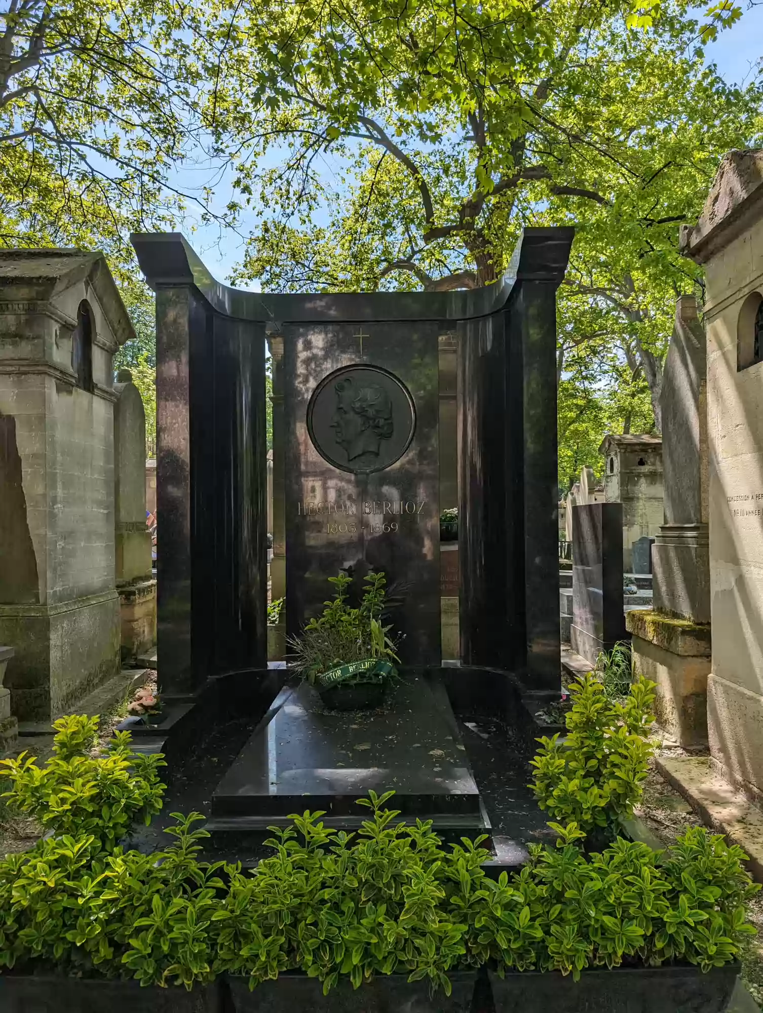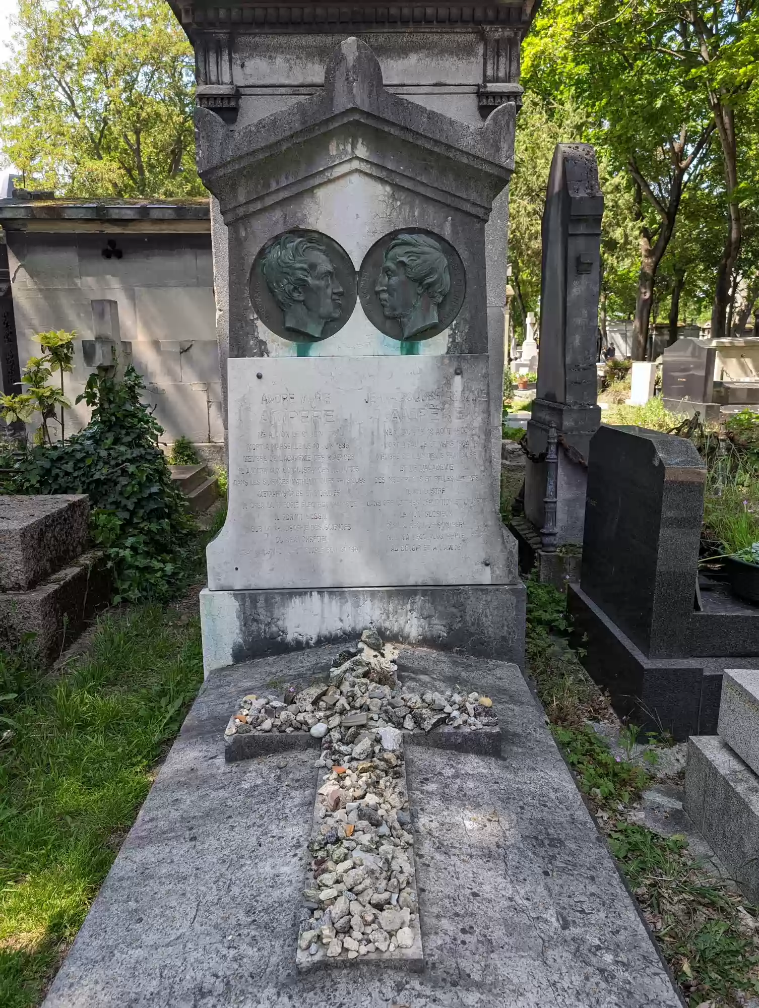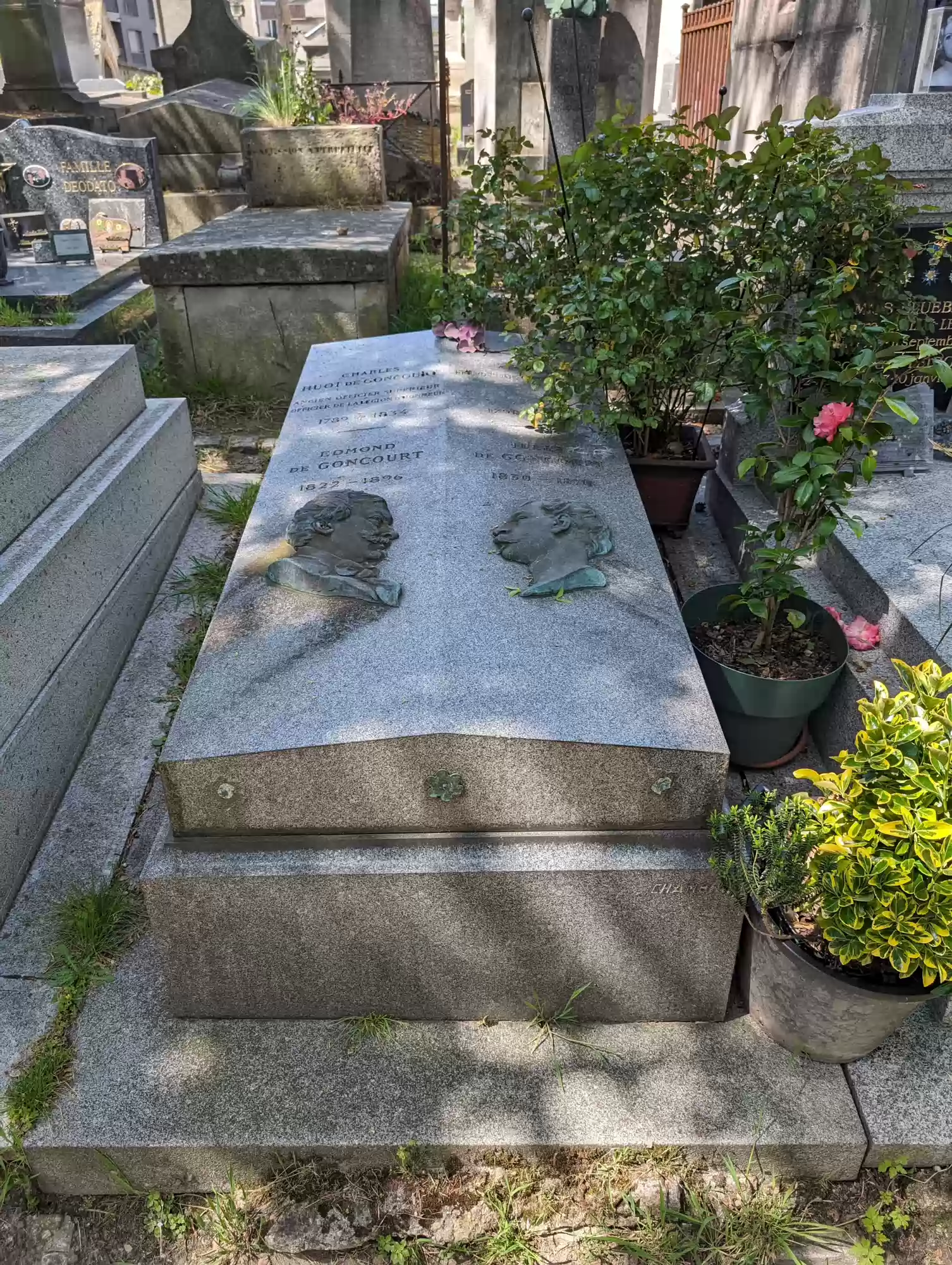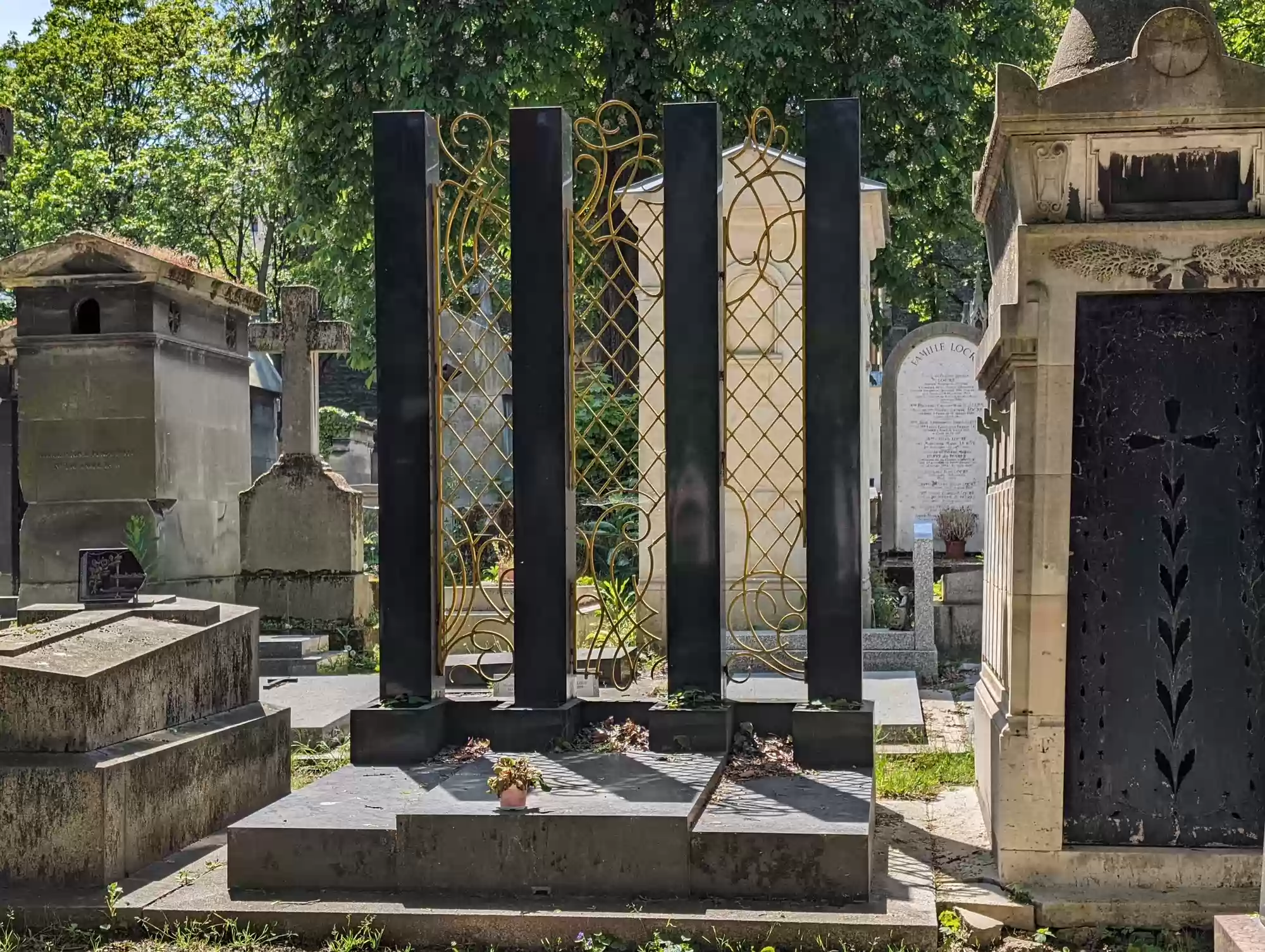 The cemetery of Montmartre was created in 1825. It holds 21500 tombs. Leon Foucault. Adolphe Sax. Degas family. Alexandre Dumas, fils. Michel Berger and France Gall. Michel Galabru. Edmond and Jules de Goncourt. Stendhal. André Marie Ampère. La Goulue. Hector Berlioz. Labels