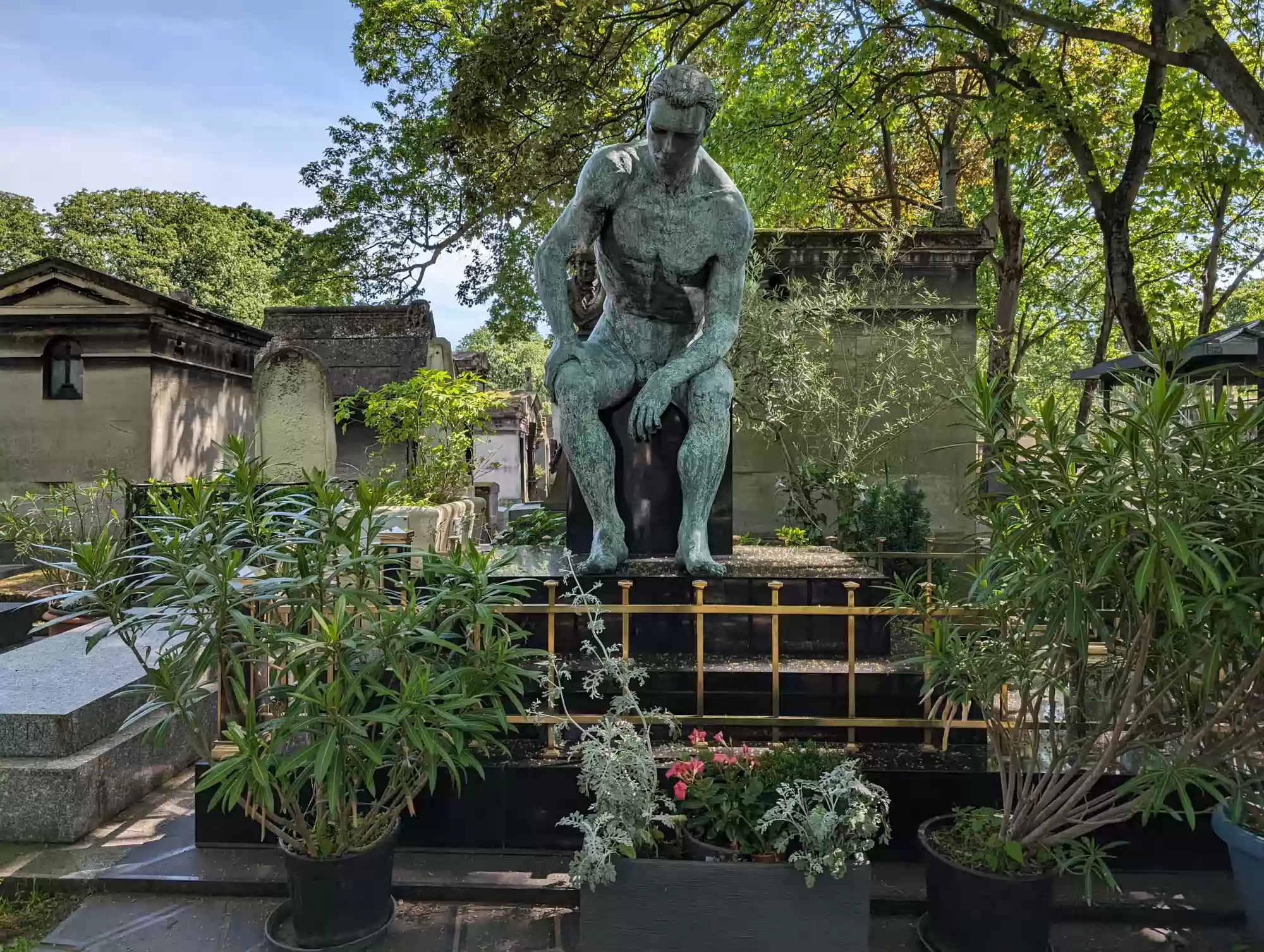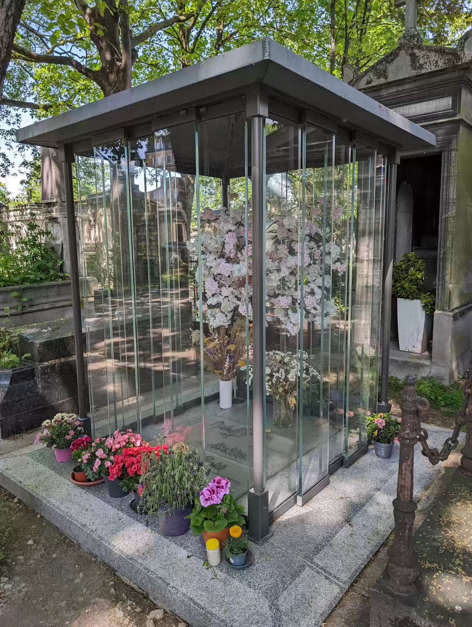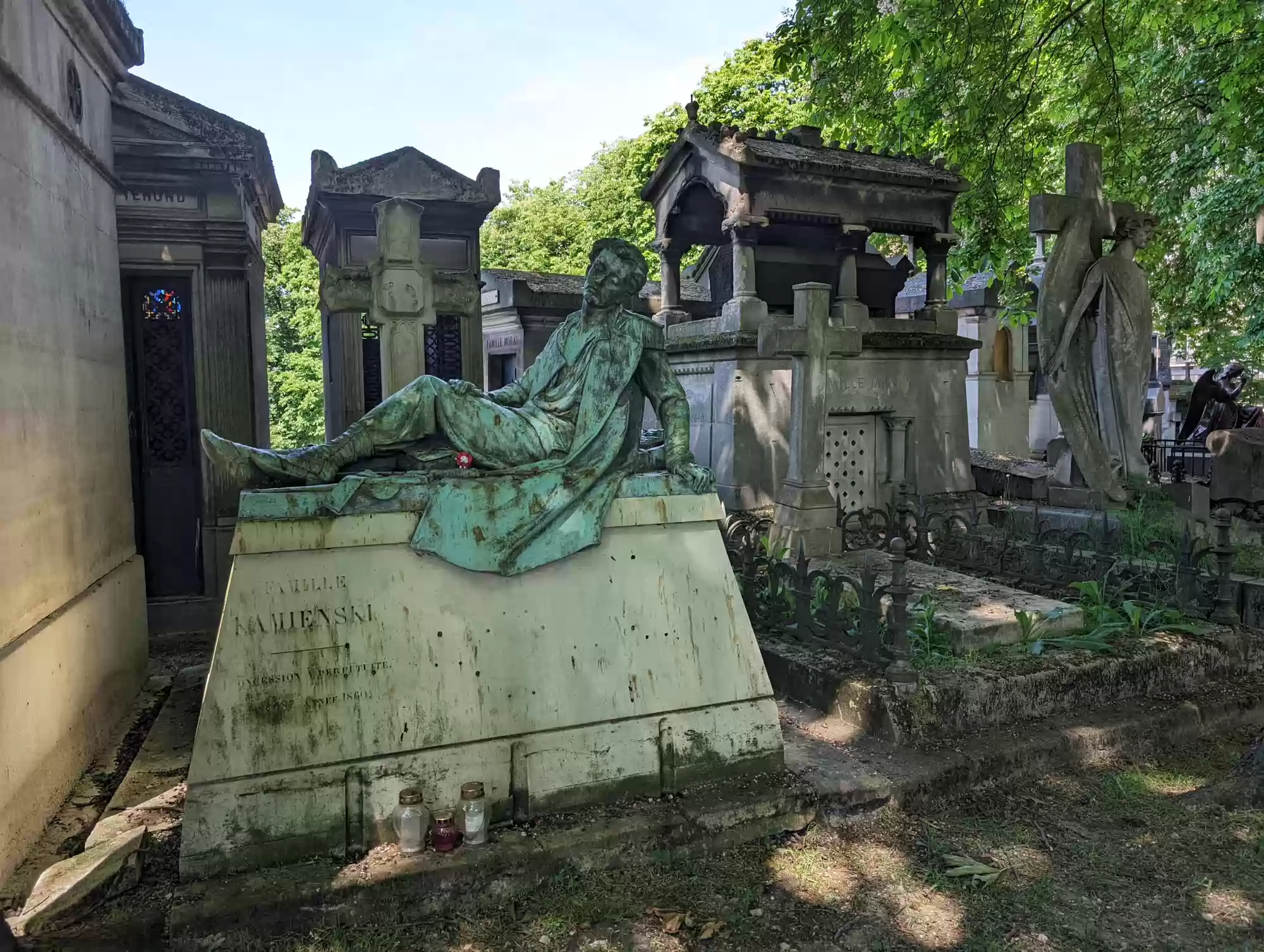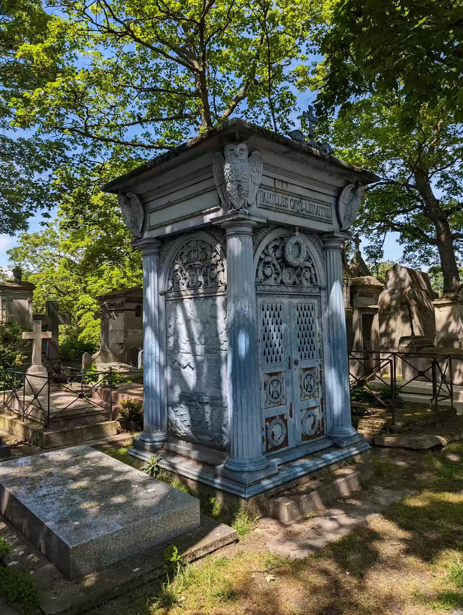The cemetery of Montmartre was created in 1825. It holds 21500 tombs. Leon Foucault. Adolphe Sax. Degas family. Alexandre Dumas, fils. Michel Berger and France Gall. Michel Galabru. Edmond and Jules de Goncourt. Stendhal. André Marie Ampère. La Goulue. Hector Berlioz. Labels