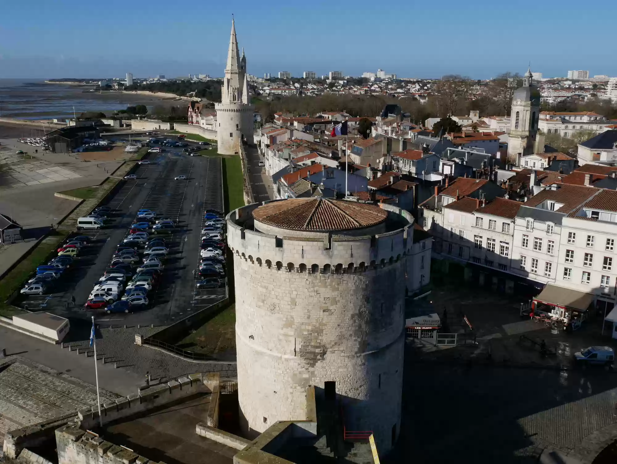 P1000410 Bottom center: Walkway on top of the fortification between the Lanterne and the Chaine towers, 1352-1387. The right part used to be under sea level but it was...