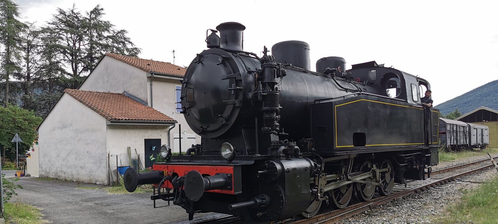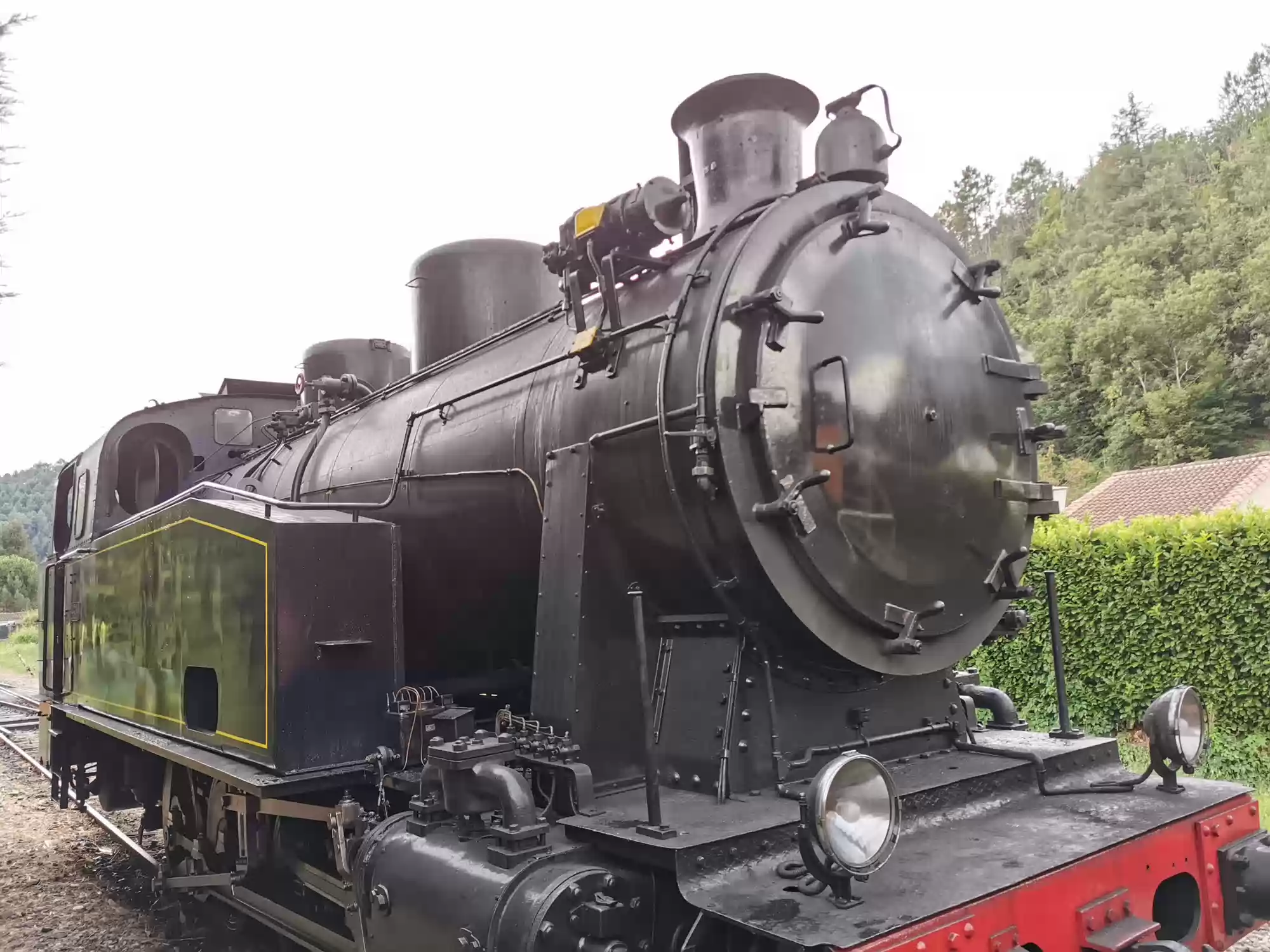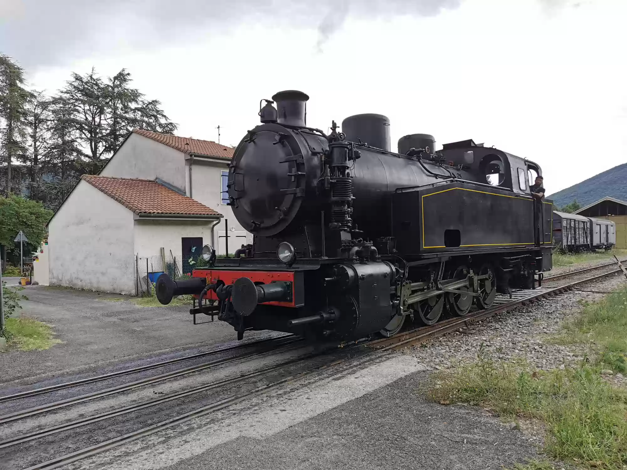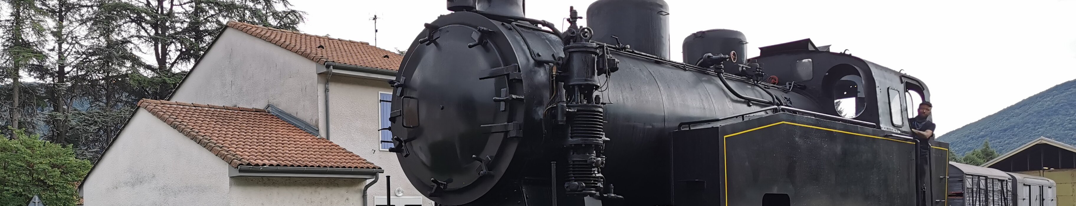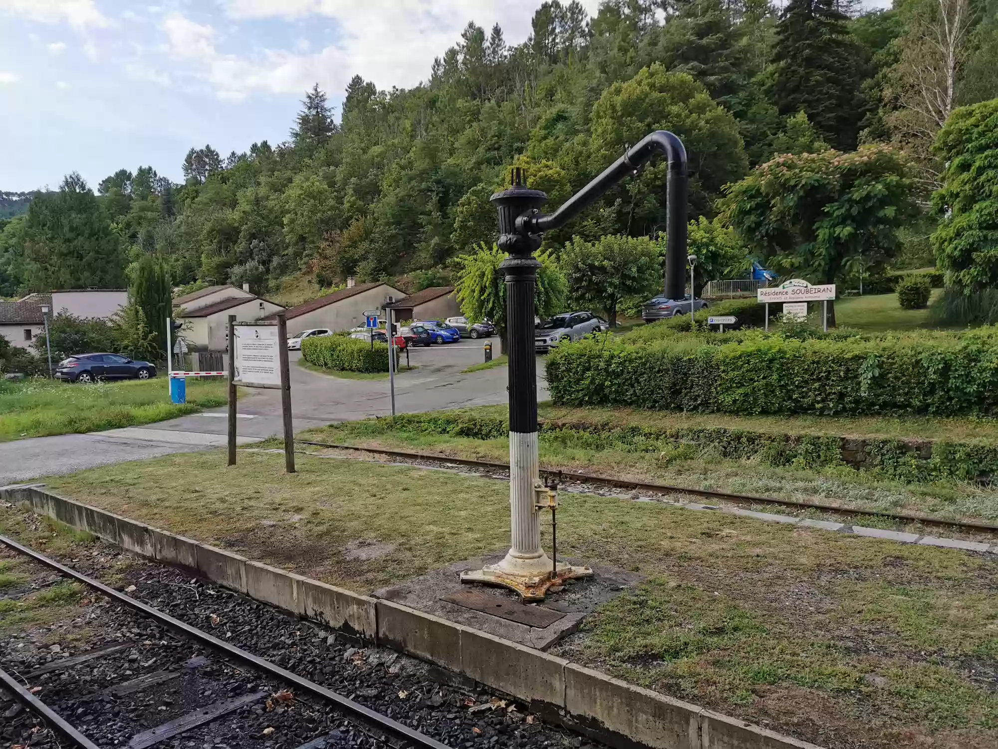 Train with a steam engine (consumes 100 liters of water per km) running between Anduze and Saint-Jean-du-Gard. Water filling station. Water filling station. Saint-Jean-du-Gard station. Labels