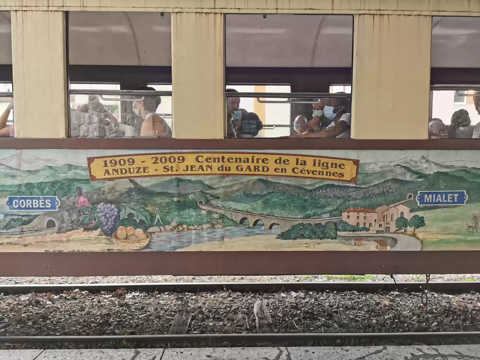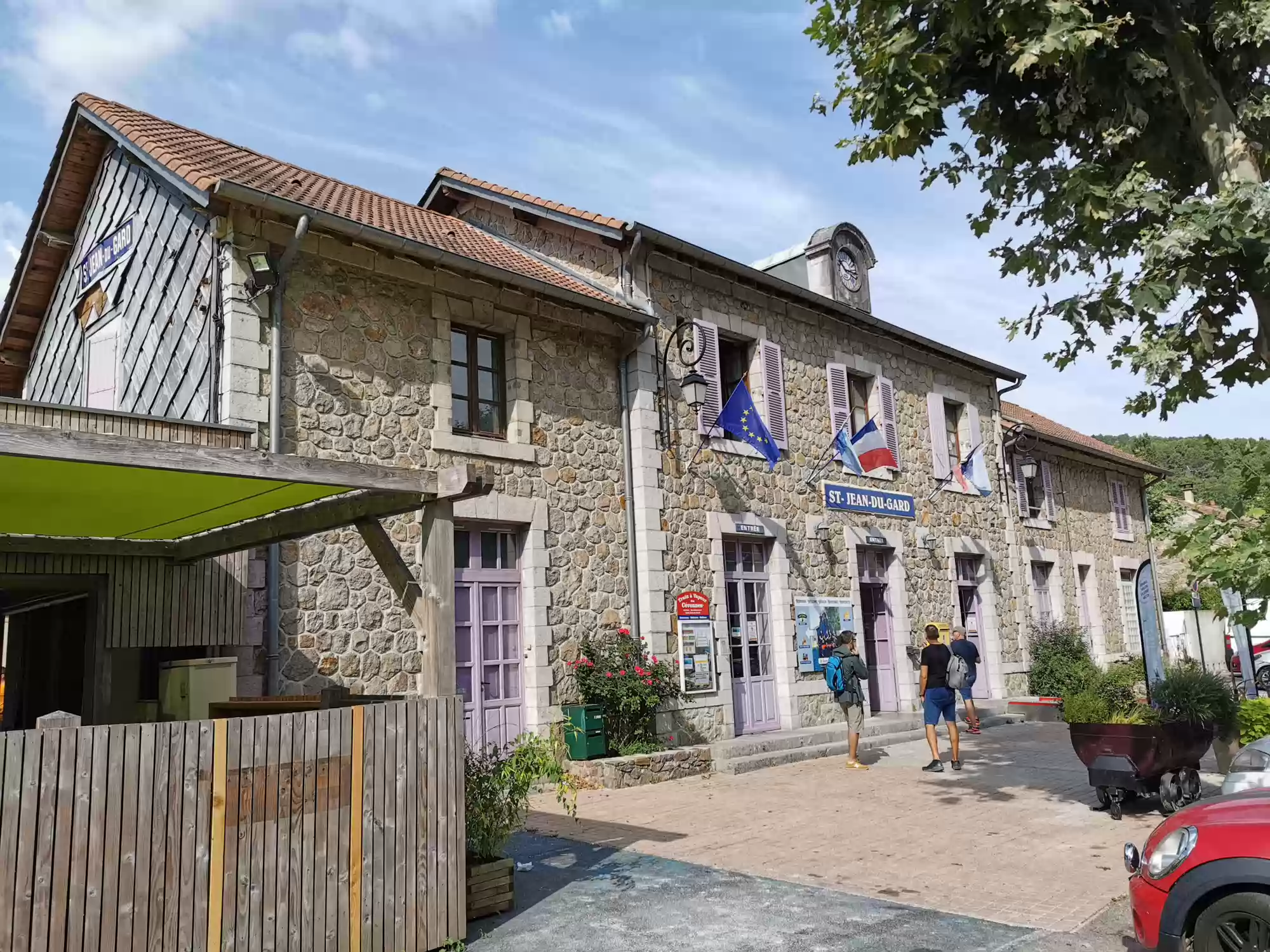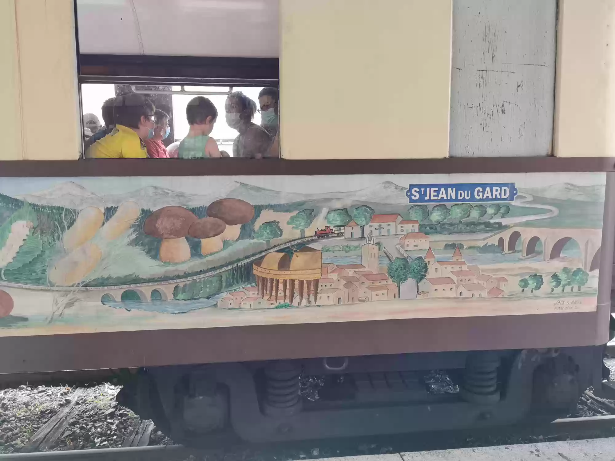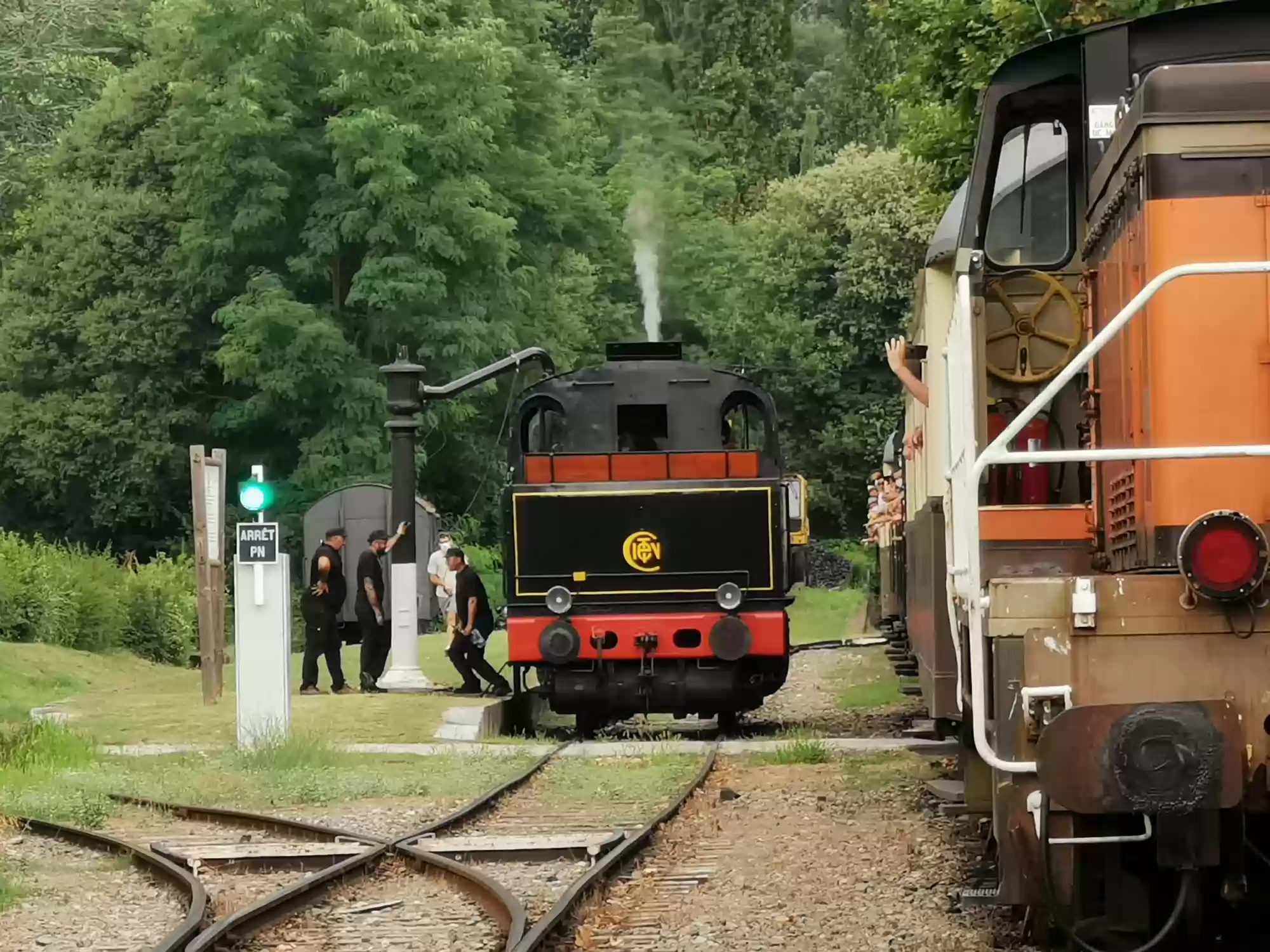 Train with a steam engine (consumes 100 liters of water per km) running between Anduze and Saint-Jean-du-Gard. Water filling station. Water filling station. Saint-Jean-du-Gard station. Labels