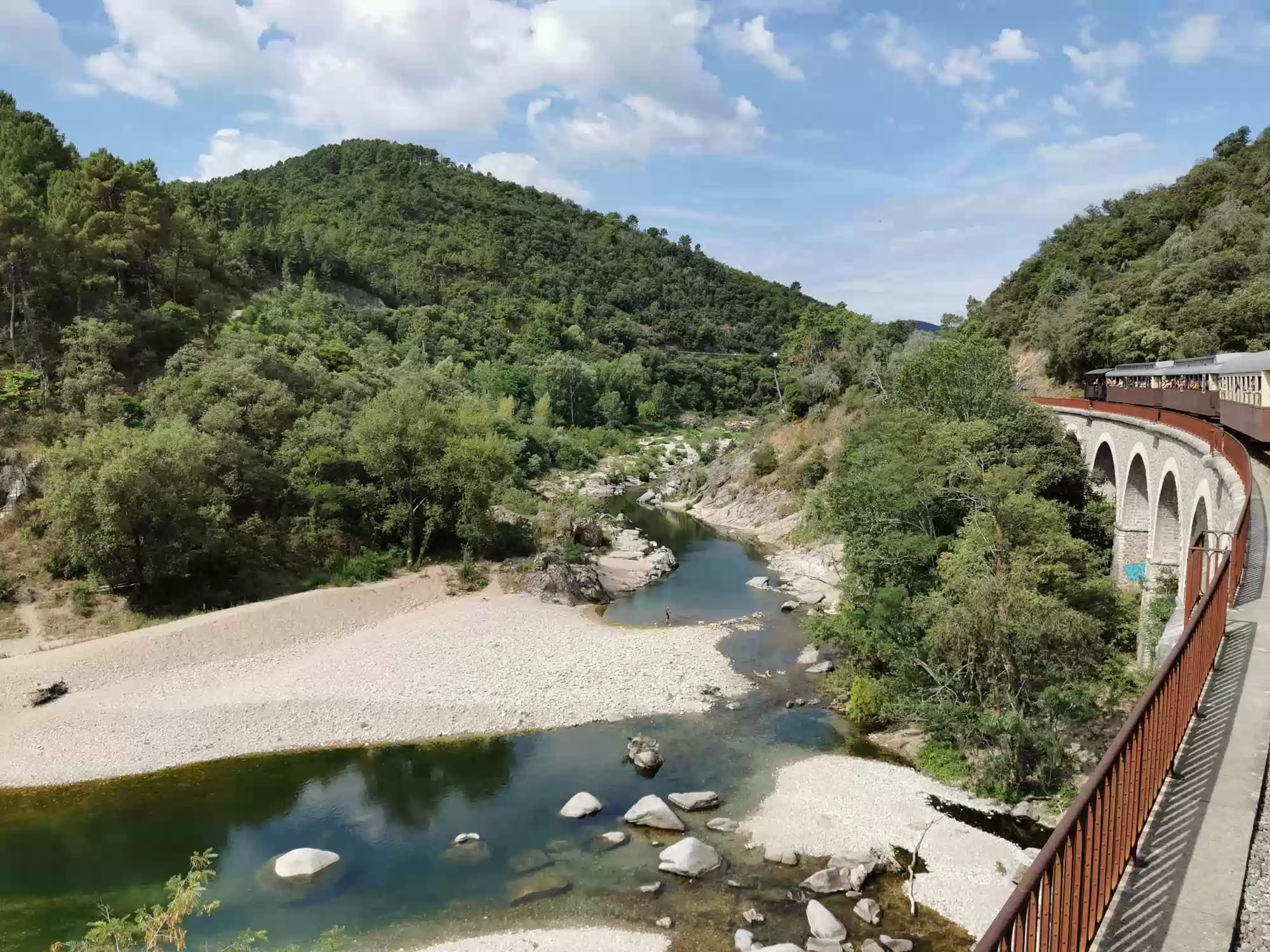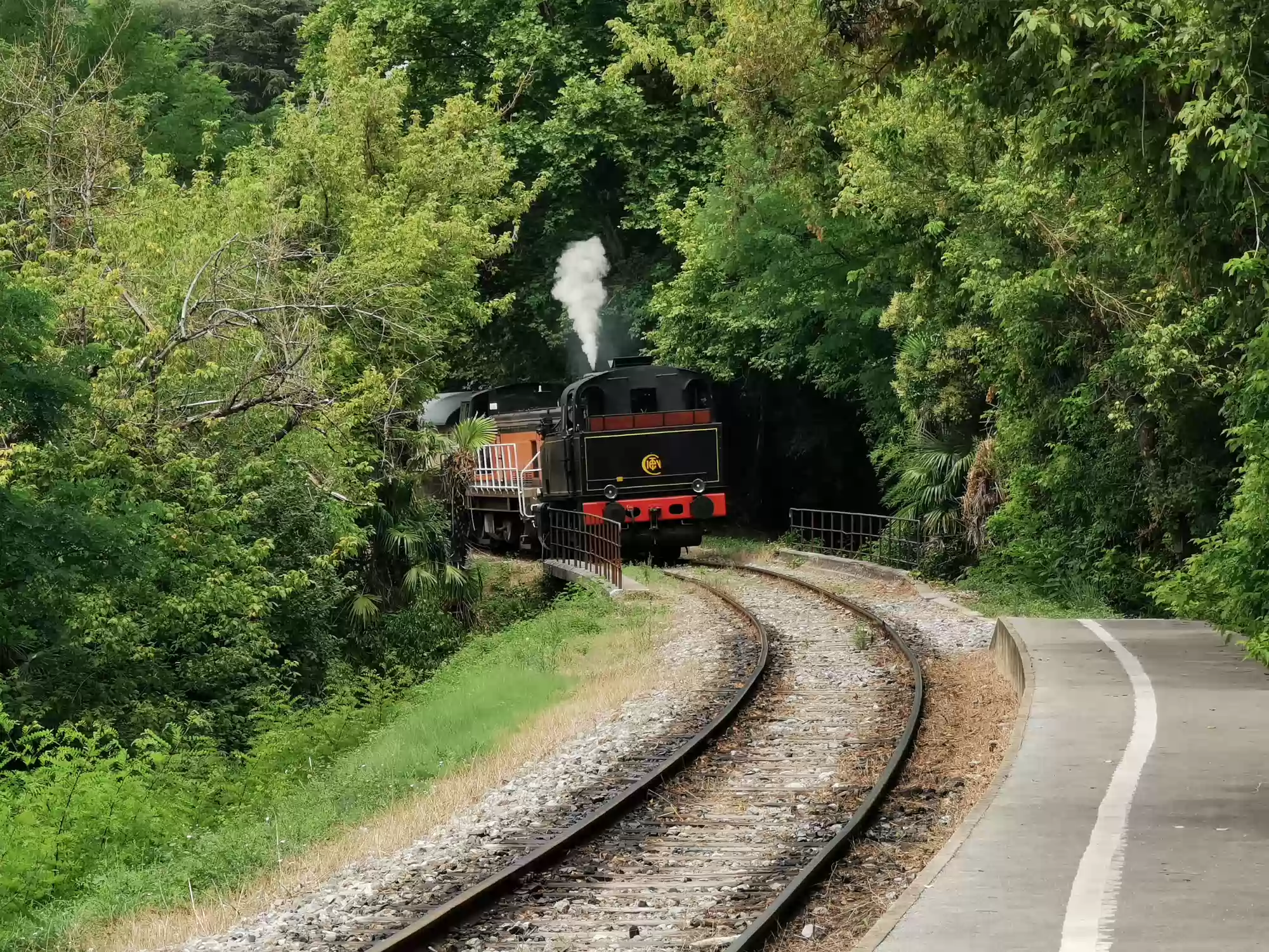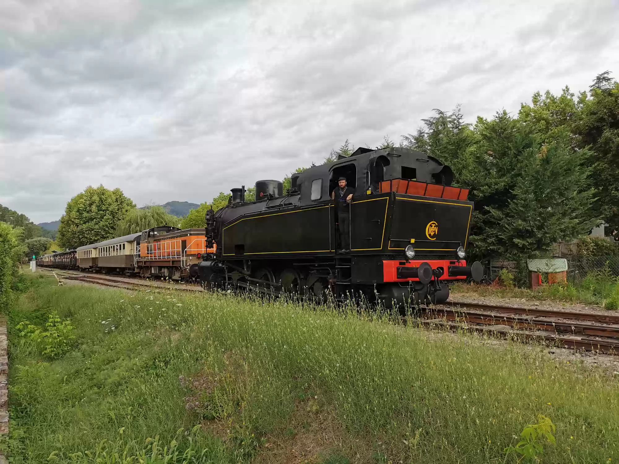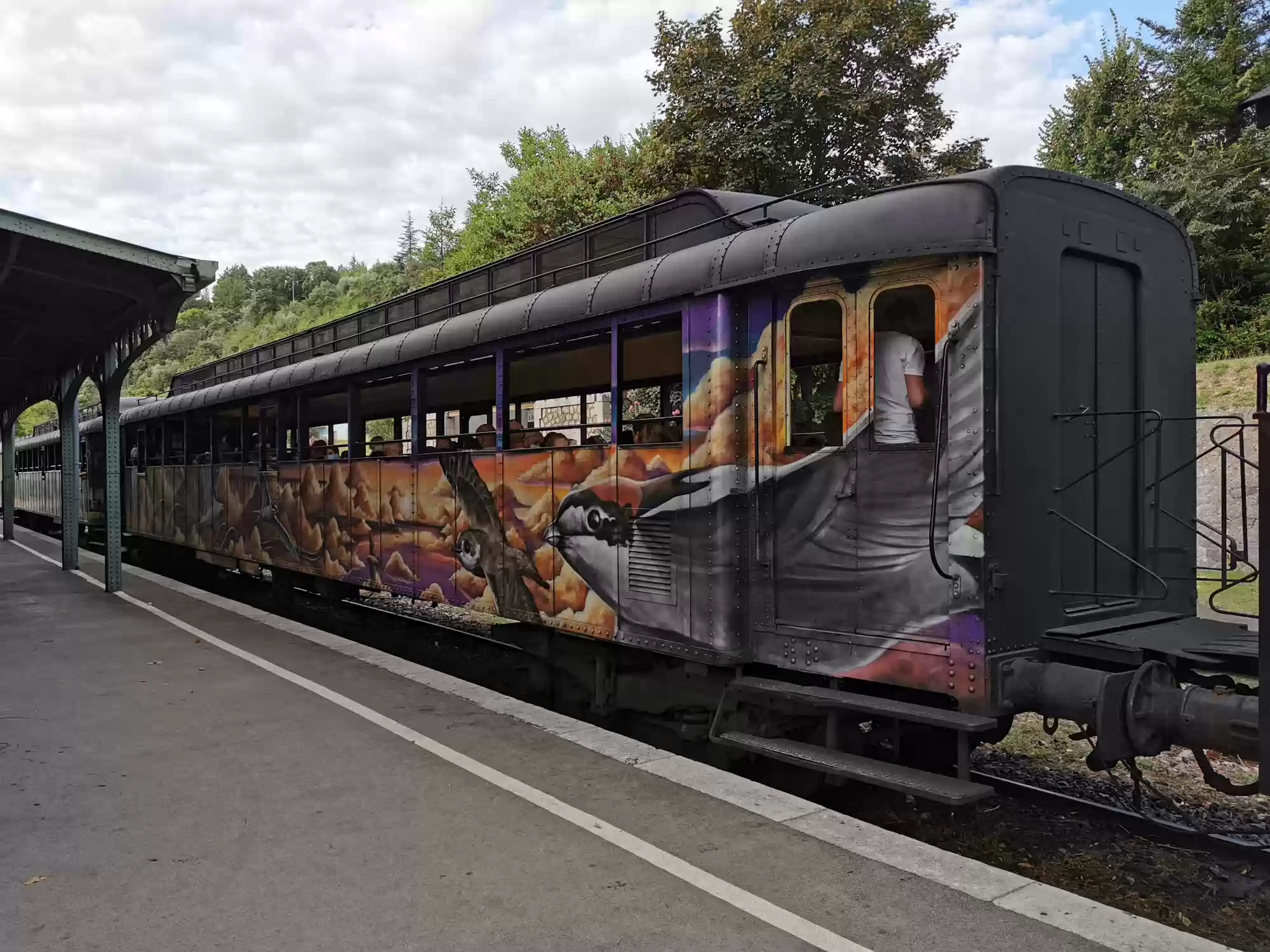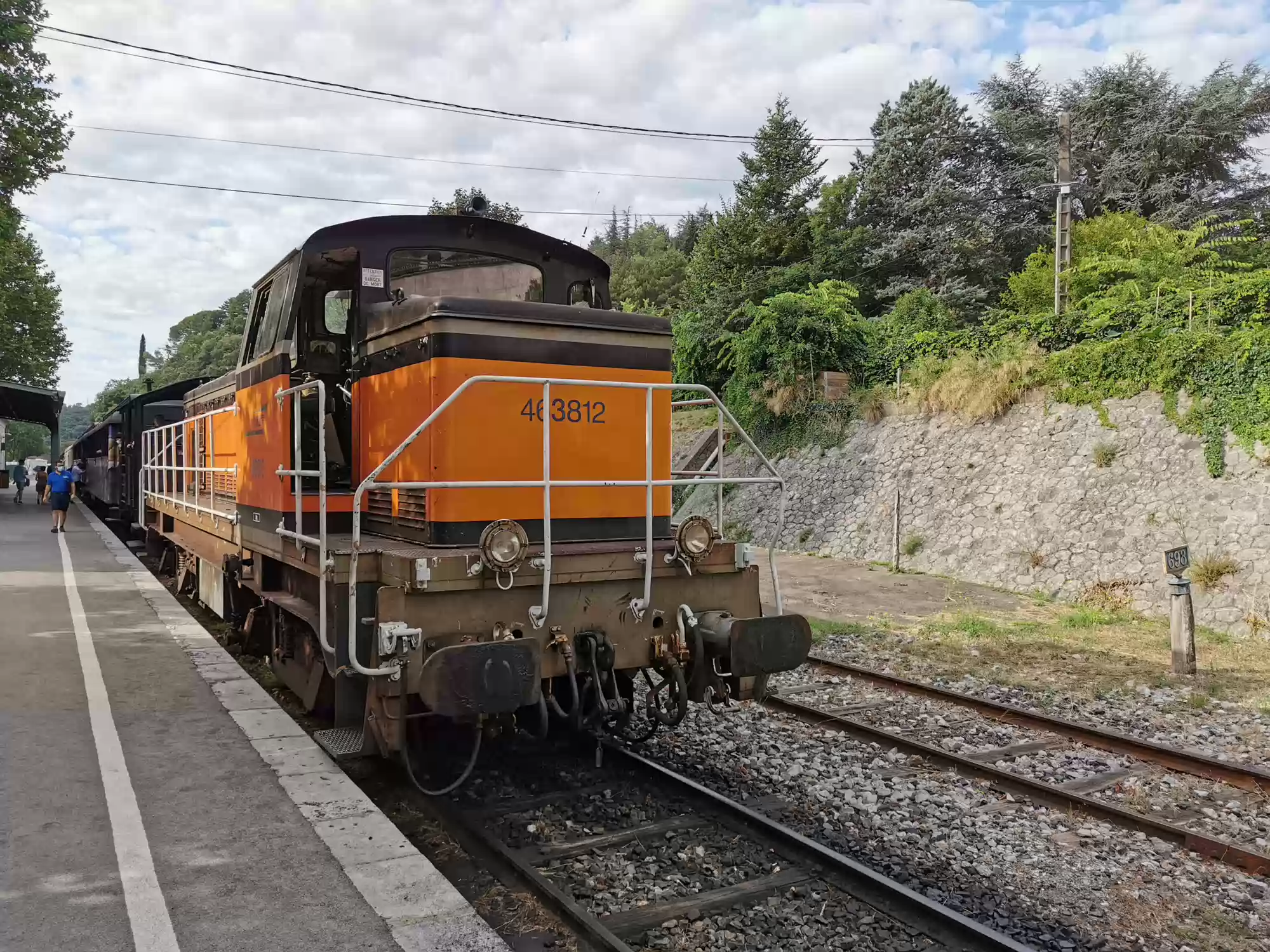 Train with a steam engine (consumes 100 liters of water per km) running between Anduze and Saint-Jean-du-Gard. Water filling station. Water filling station. Saint-Jean-du-Gard station. Labels