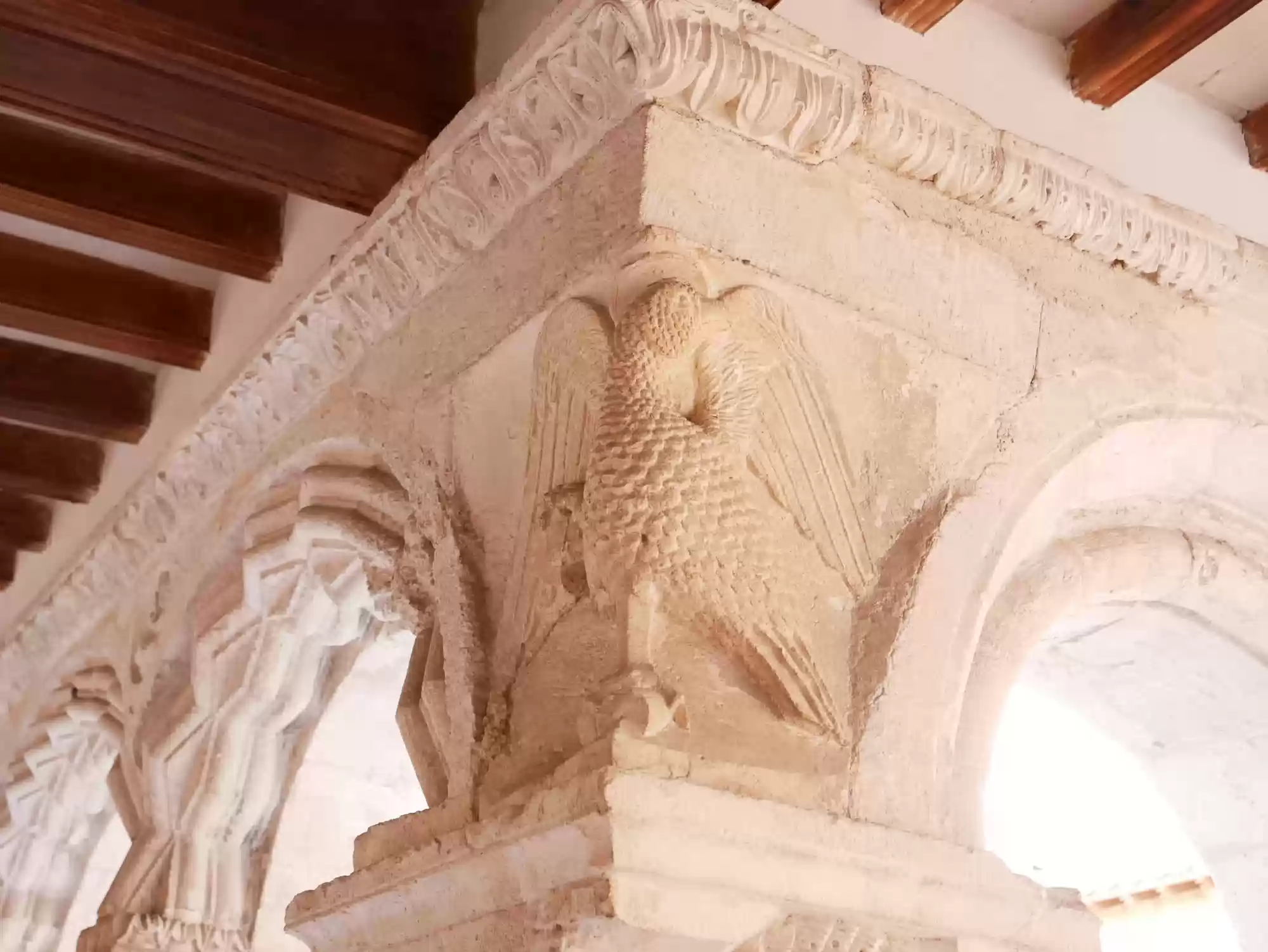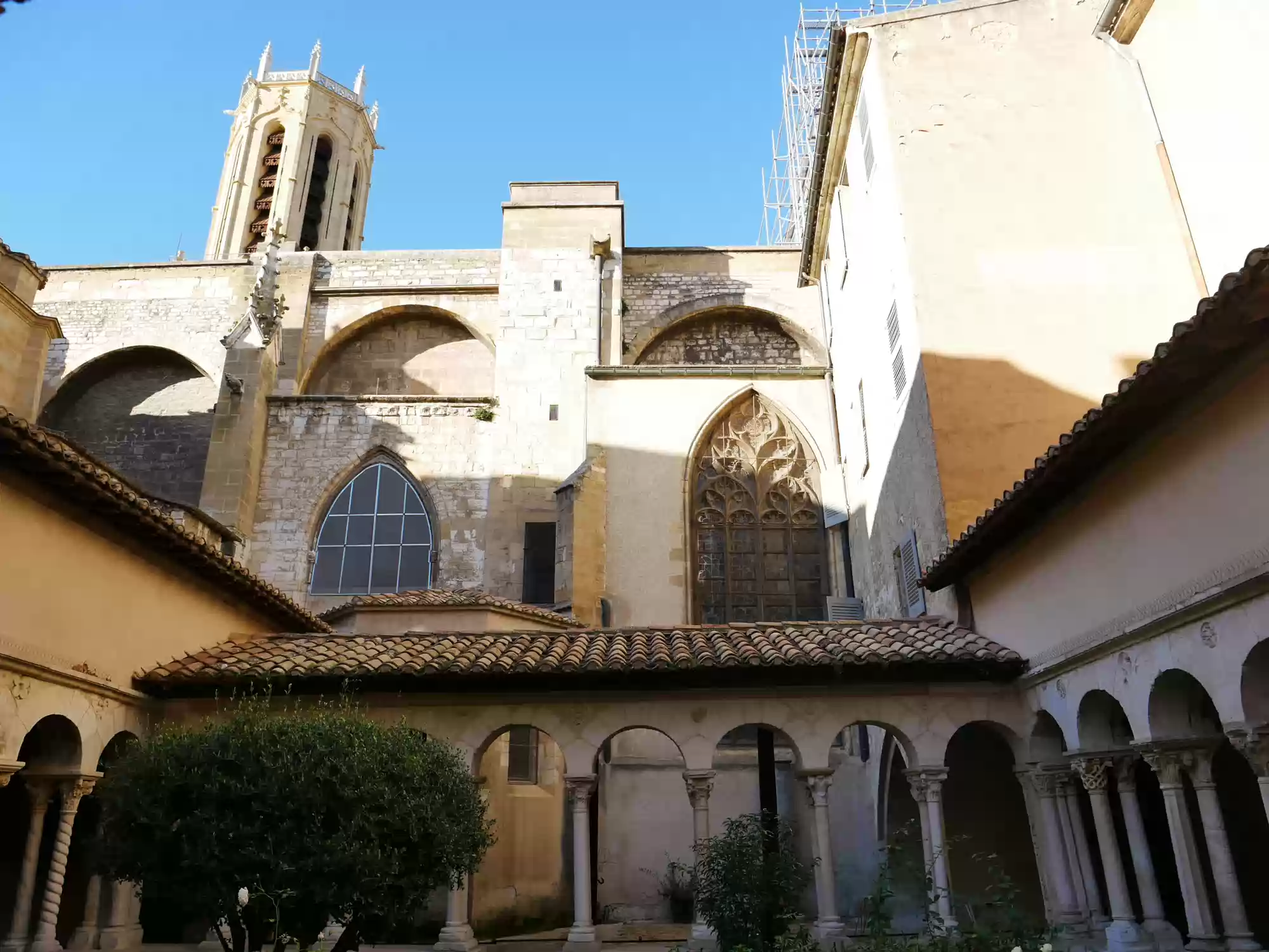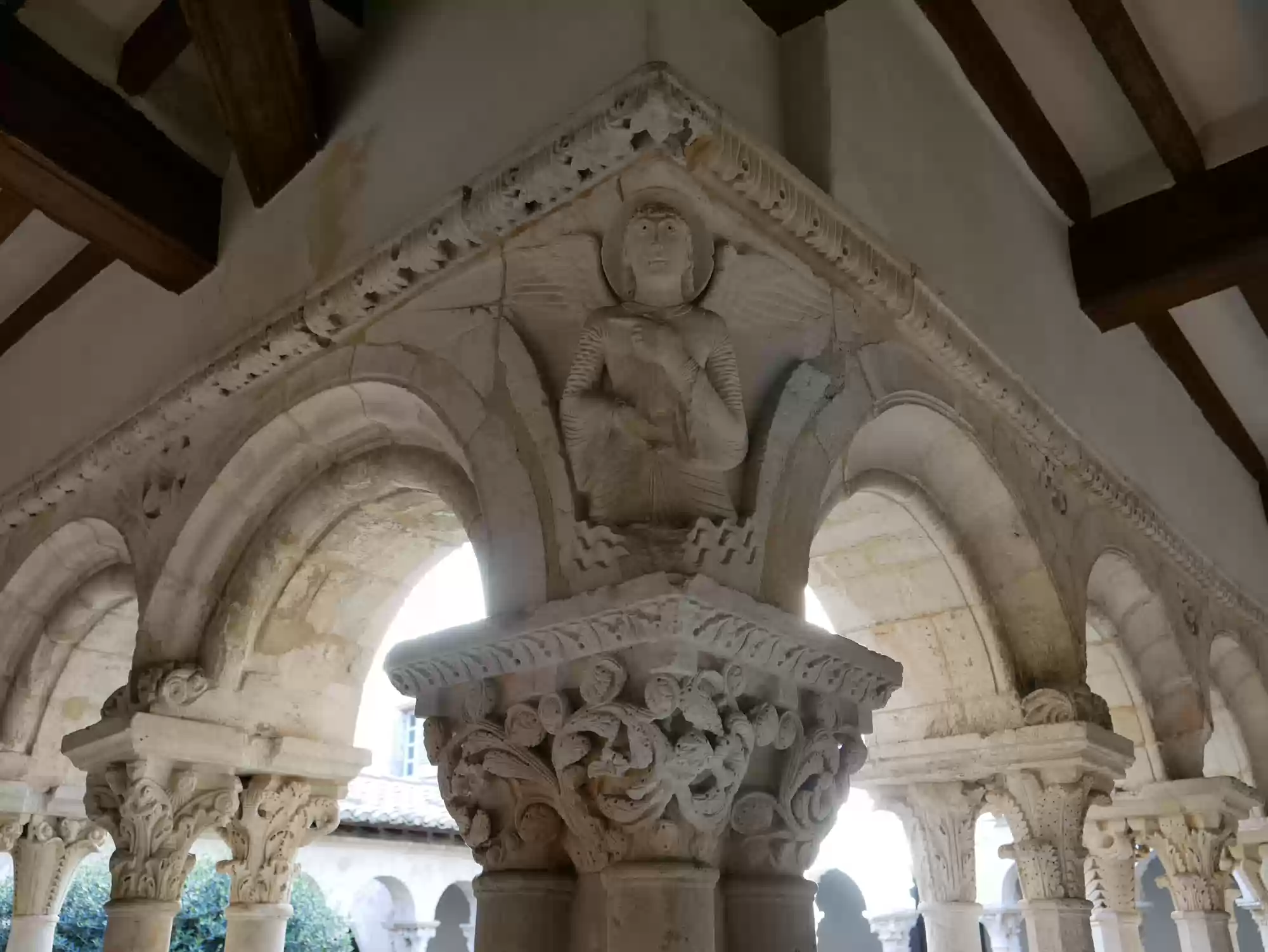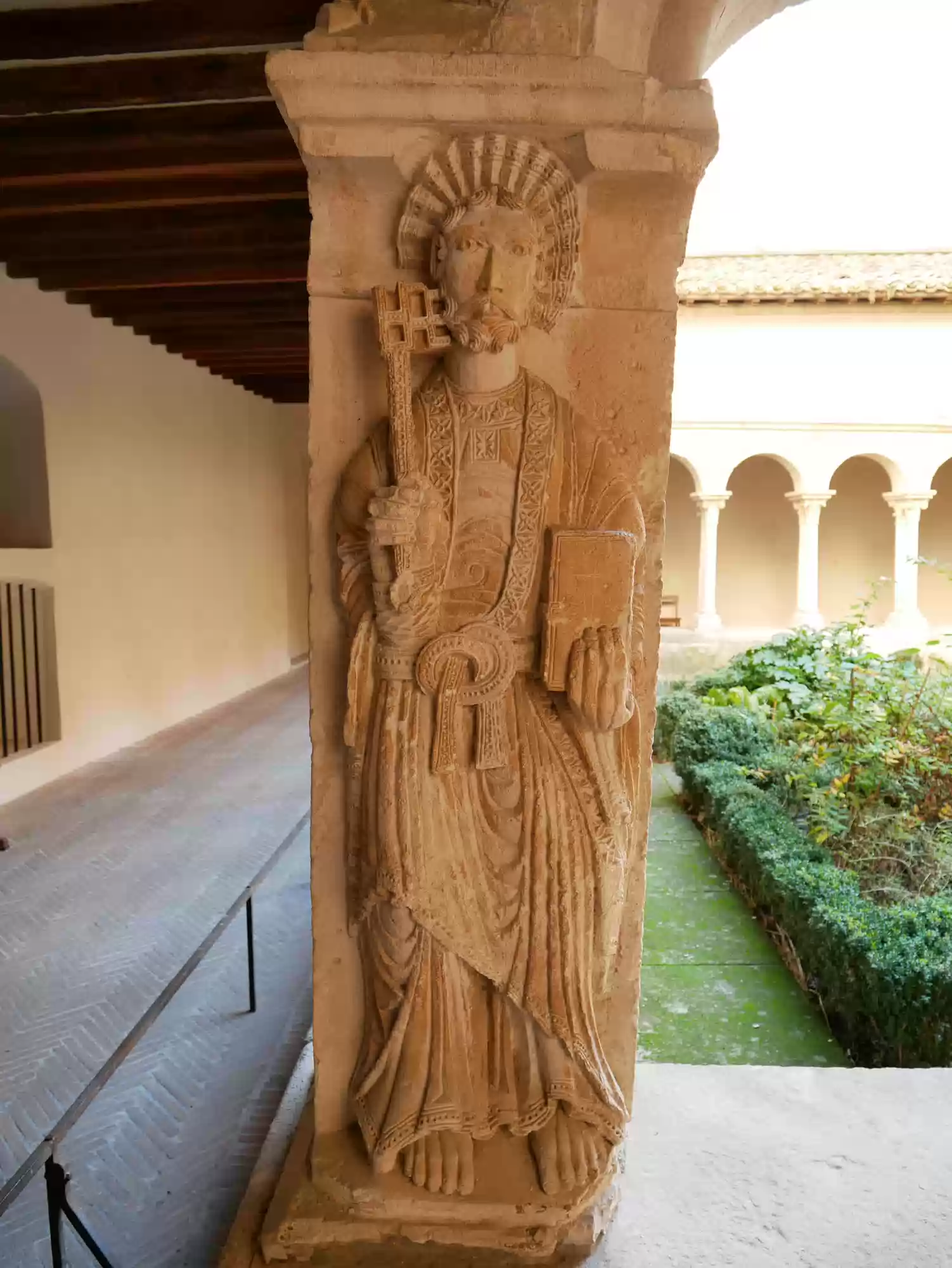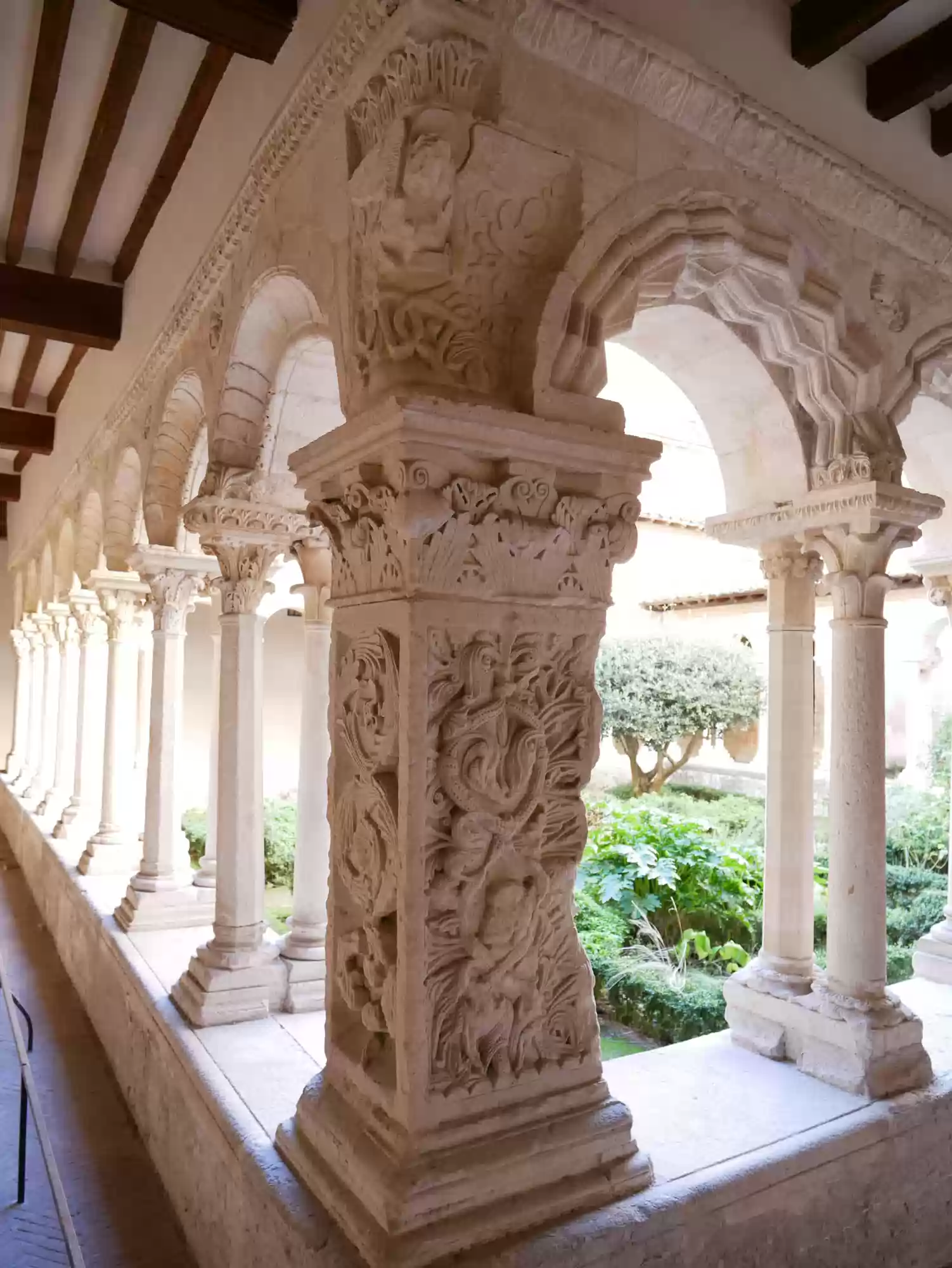 Romanesque cloister, 12th century. Almost all columns and capitals are original, except for a few marble columns reused from former Roman constructions on the…