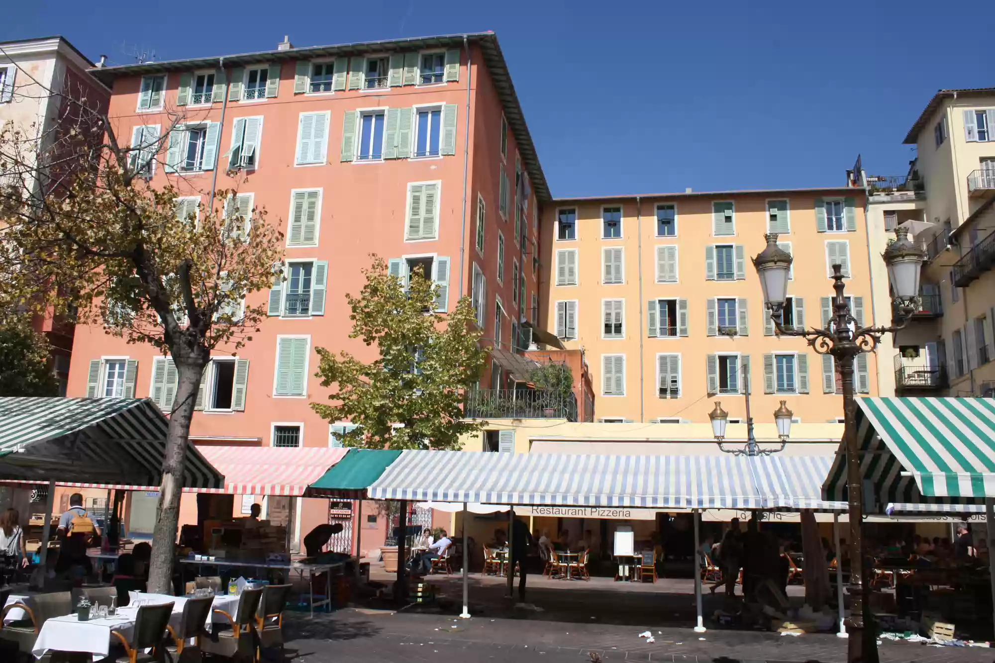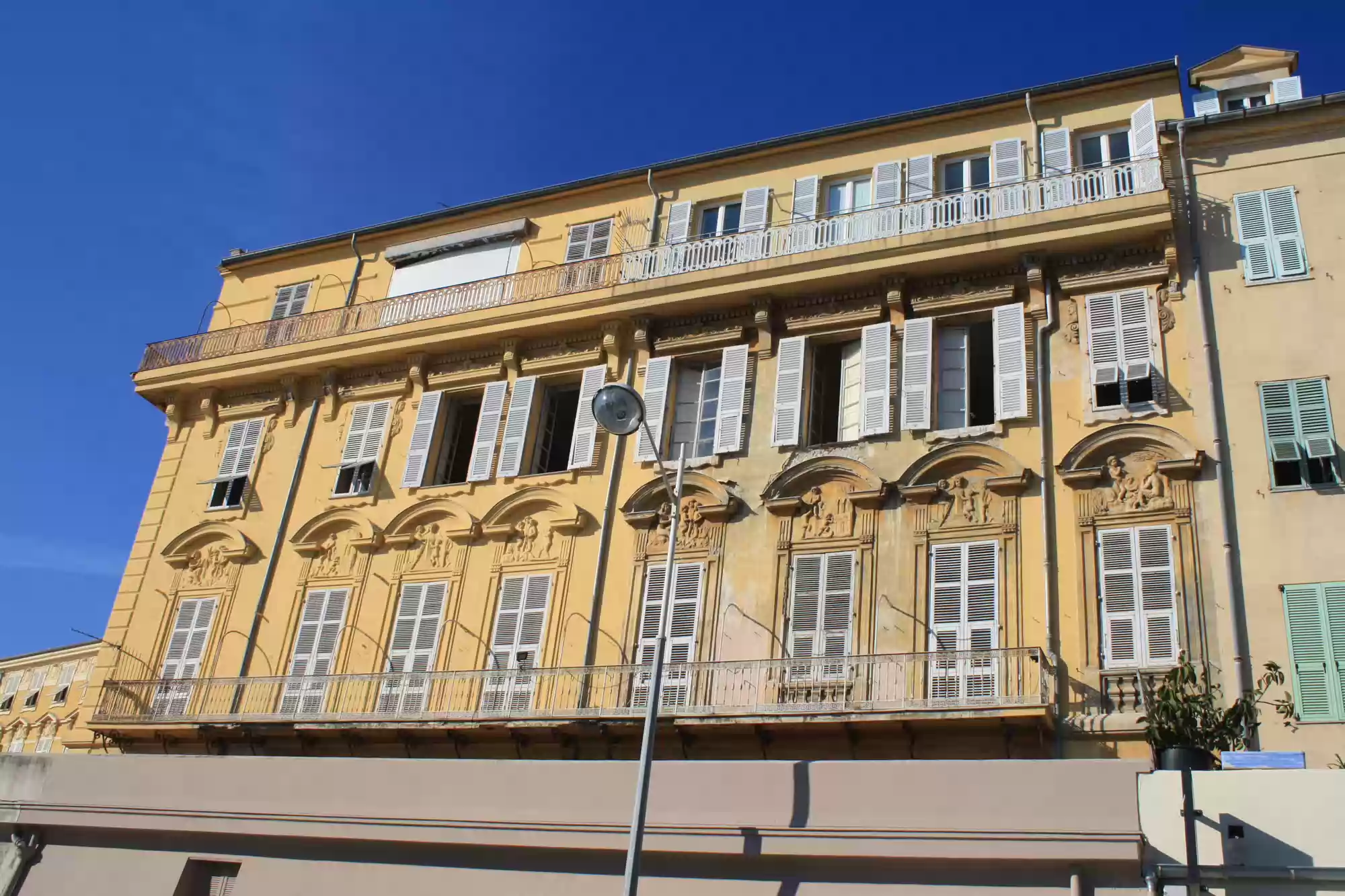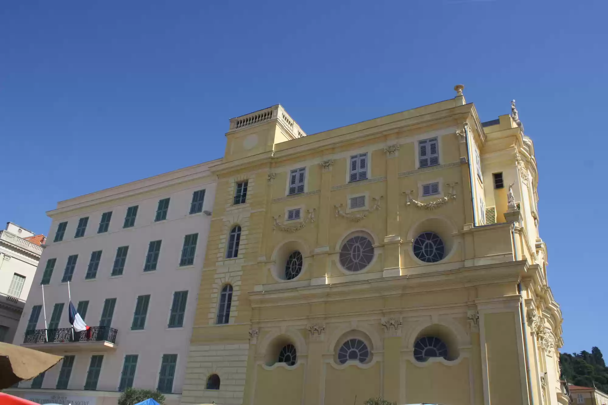 Cours Saleya, the location of a market and numerous restaurants. Caïs de Pierlas house, 17th century. Mercy's chapel, by Bernard Vittone, 1740. Mercy's chapel, by Bernard Vittone, 1740. Sainte-Reparate cathedralGaribaldi square Labels