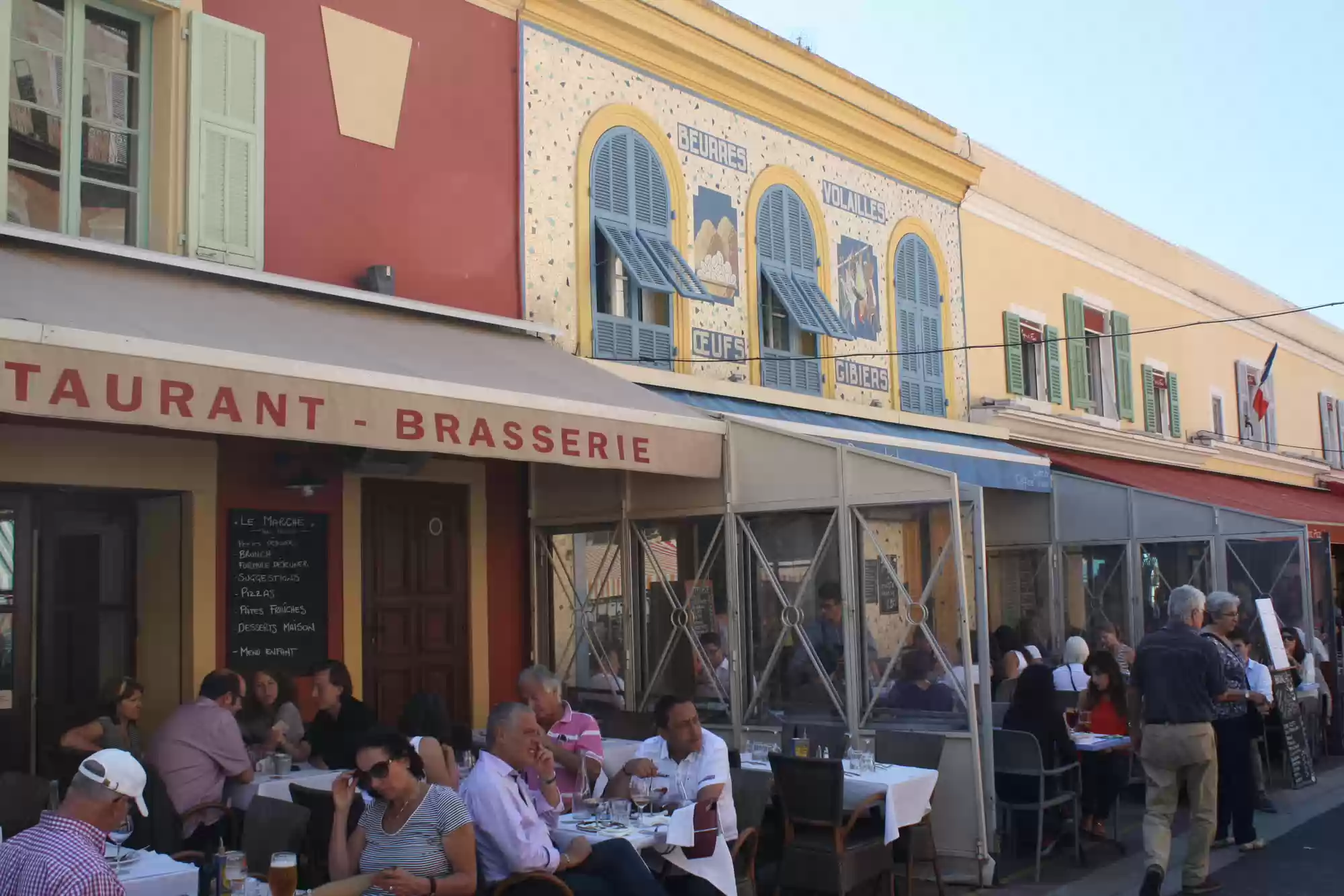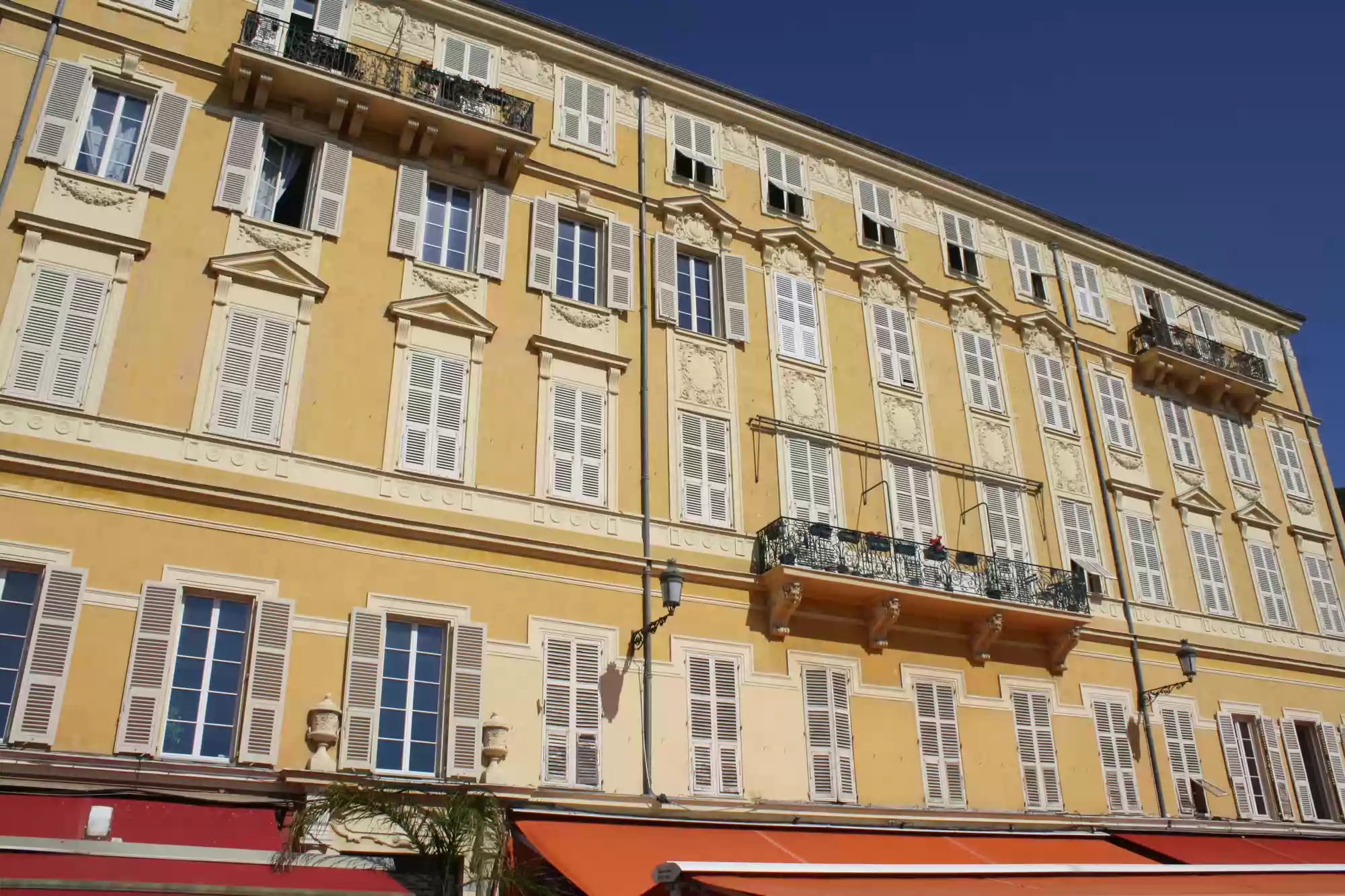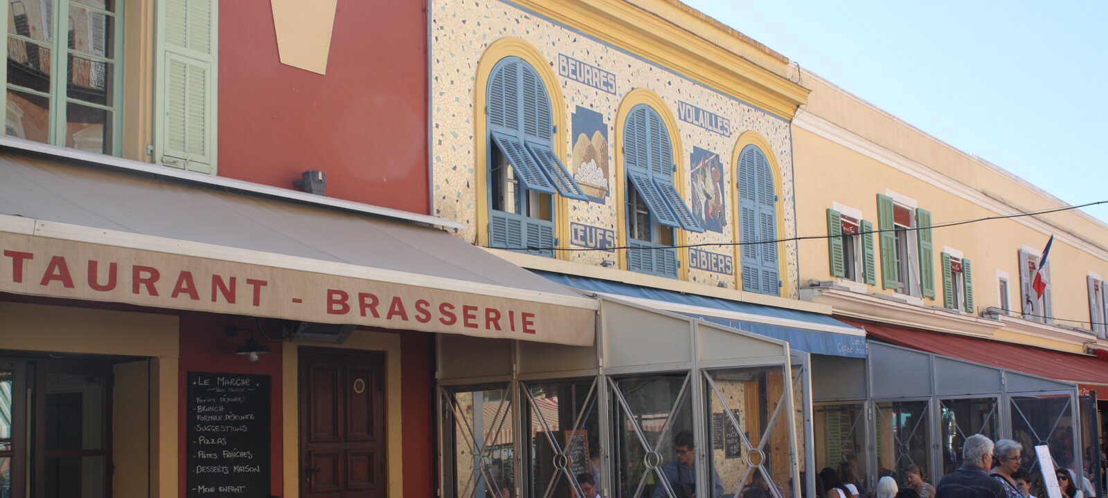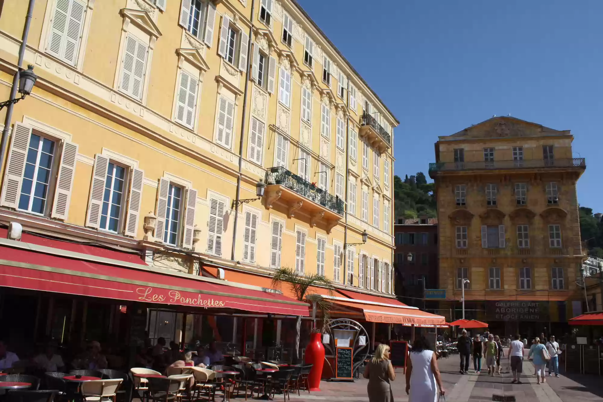 Cours Saleya, the location of a market and numerous restaurants. Caïs de Pierlas house, 17th century. Mercy's chapel, by Bernard Vittone, 1740. Mercy's chapel, by Bernard Vittone, 1740. Sainte-Reparate cathedralGaribaldi square Labels