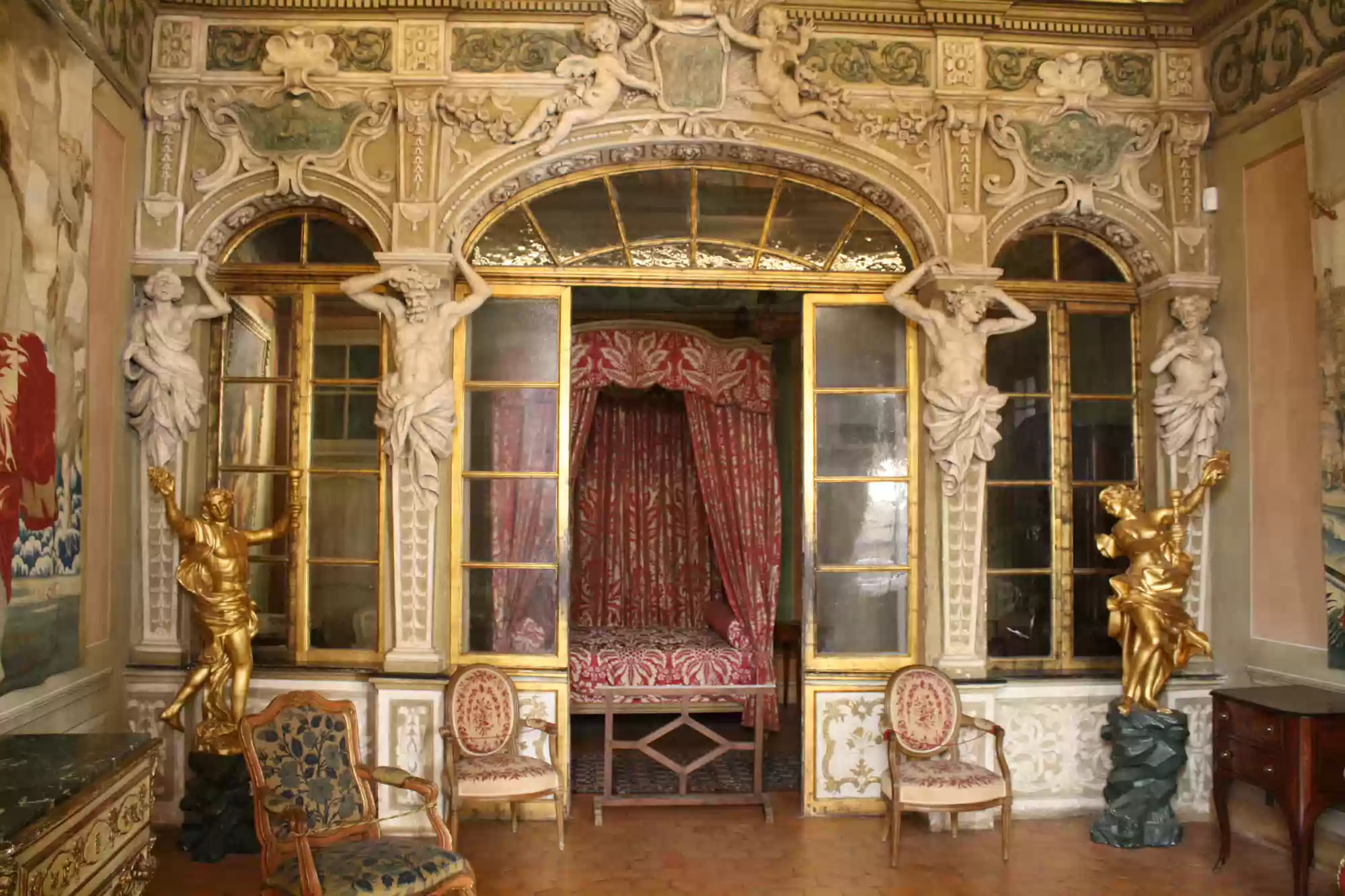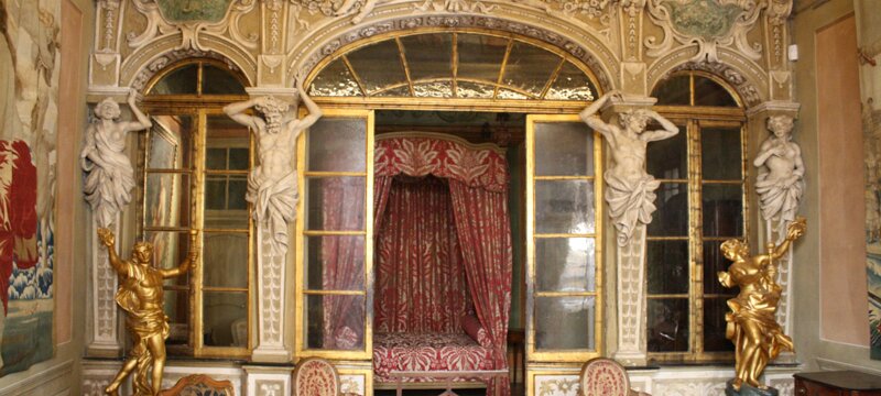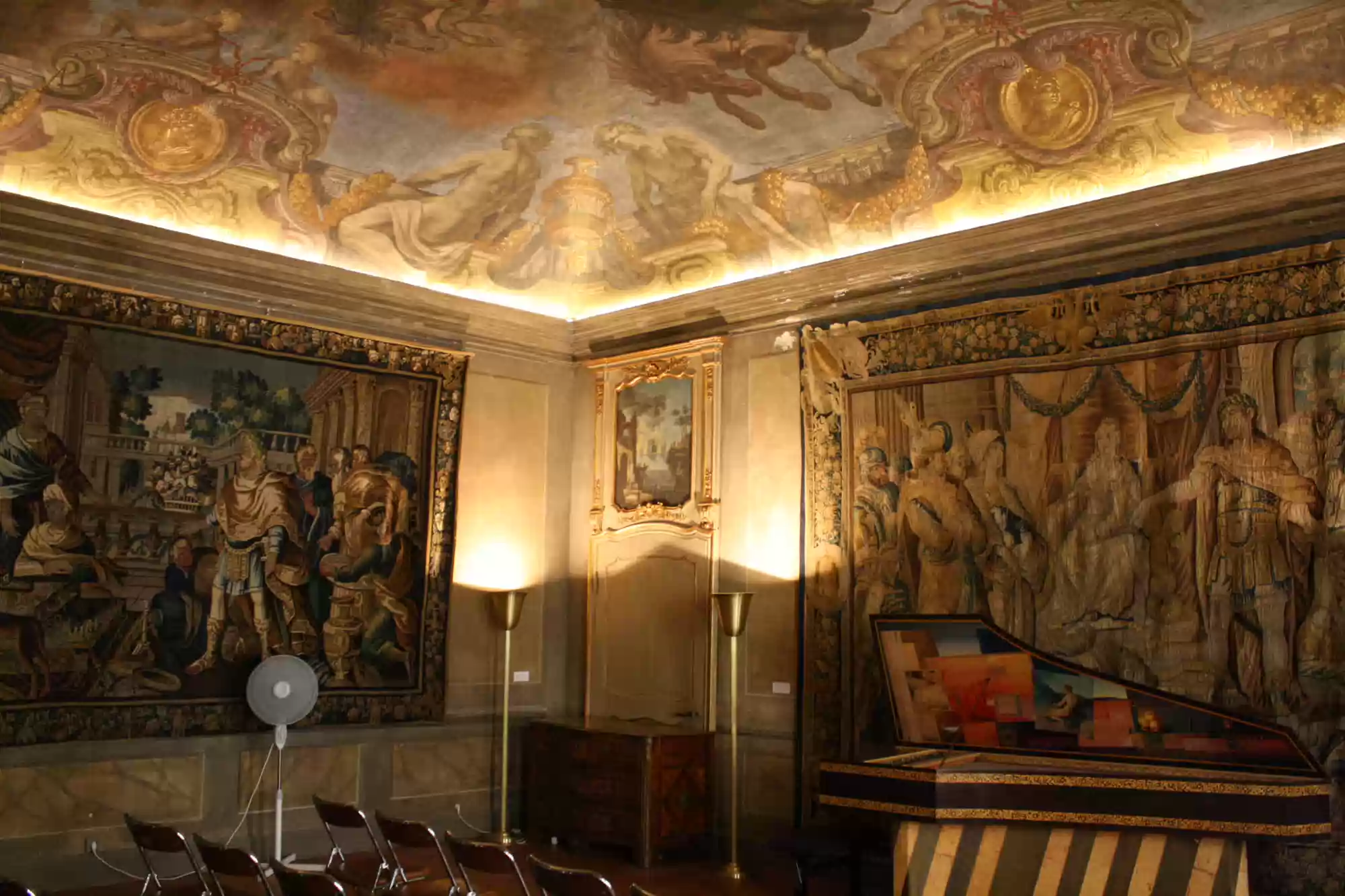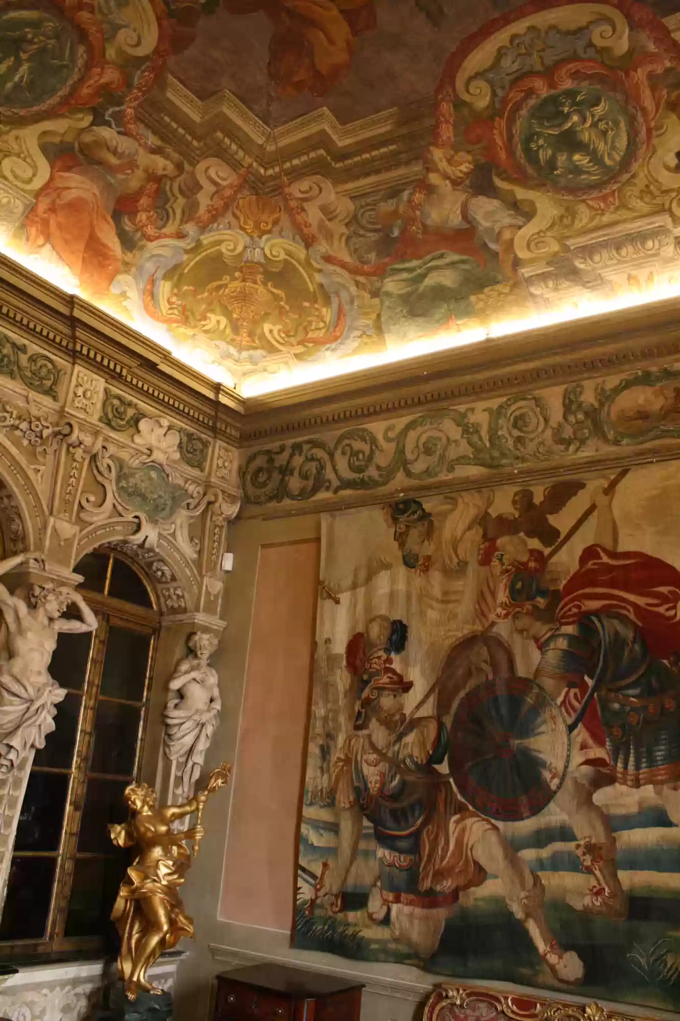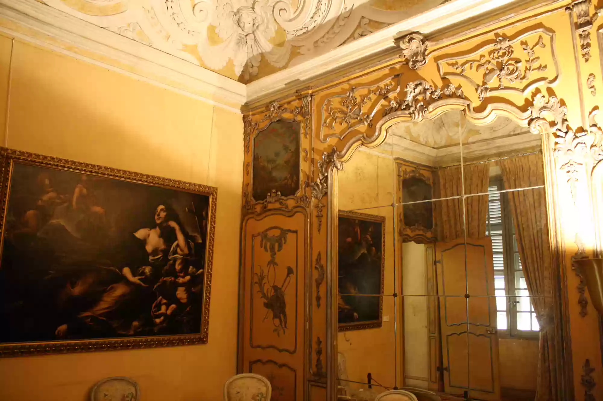 Main room, known as the Phaeton room. The ceiling painting depicts the fall of Phaeton struck by Jupiter. Genoa school, late 17th century.
