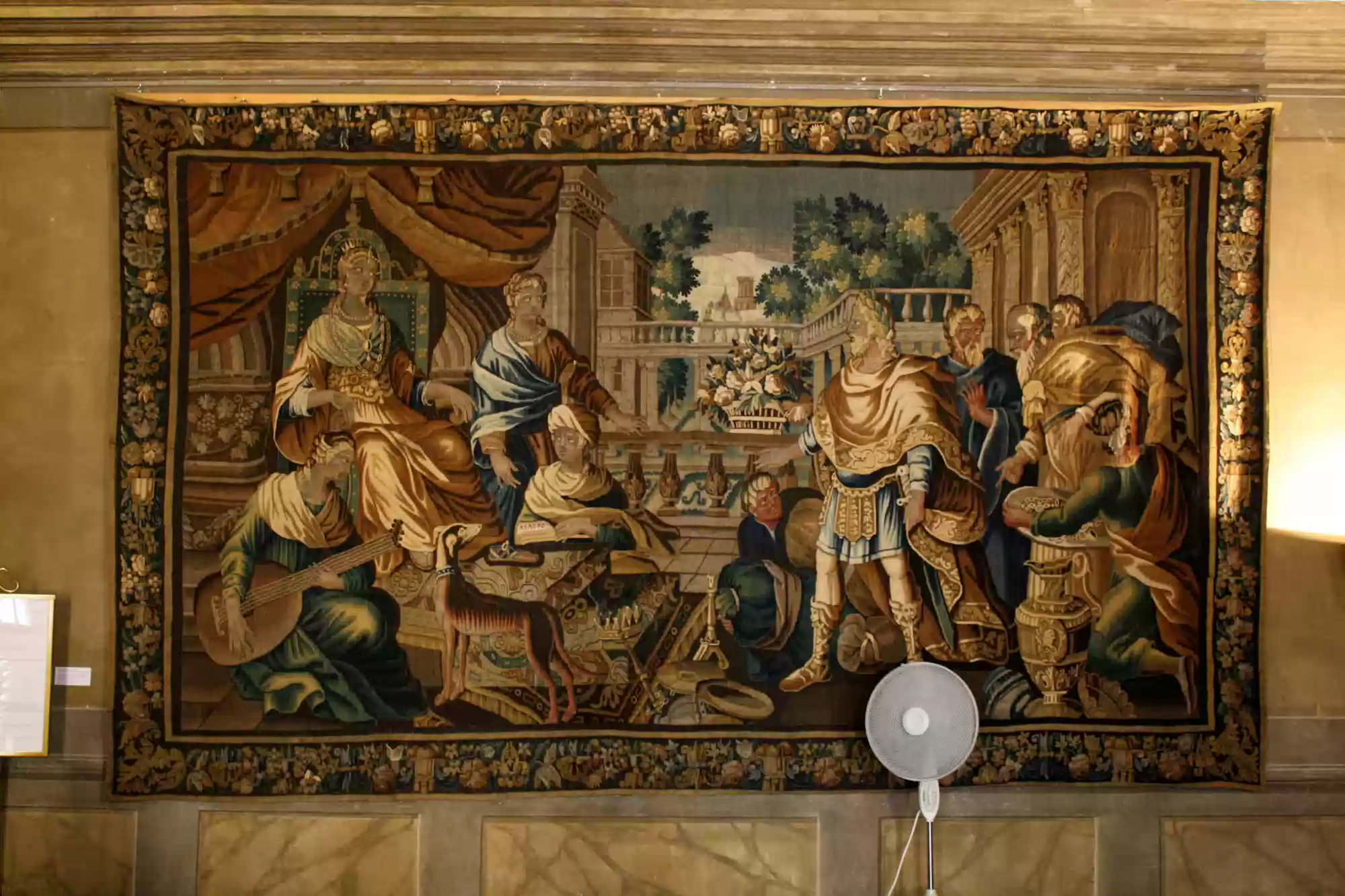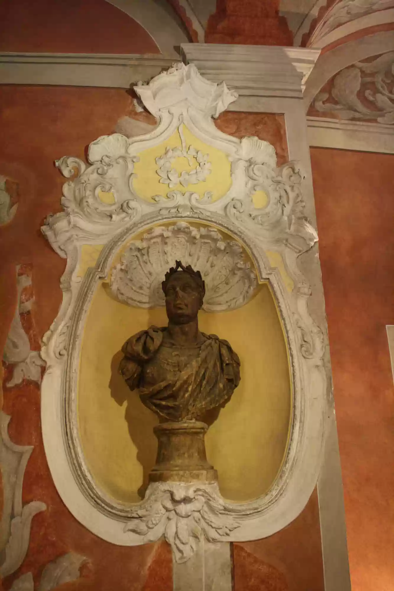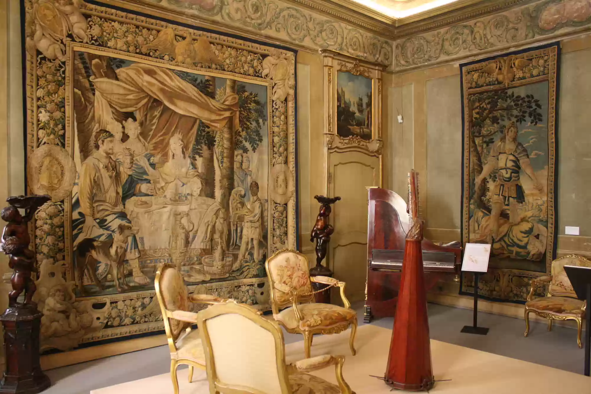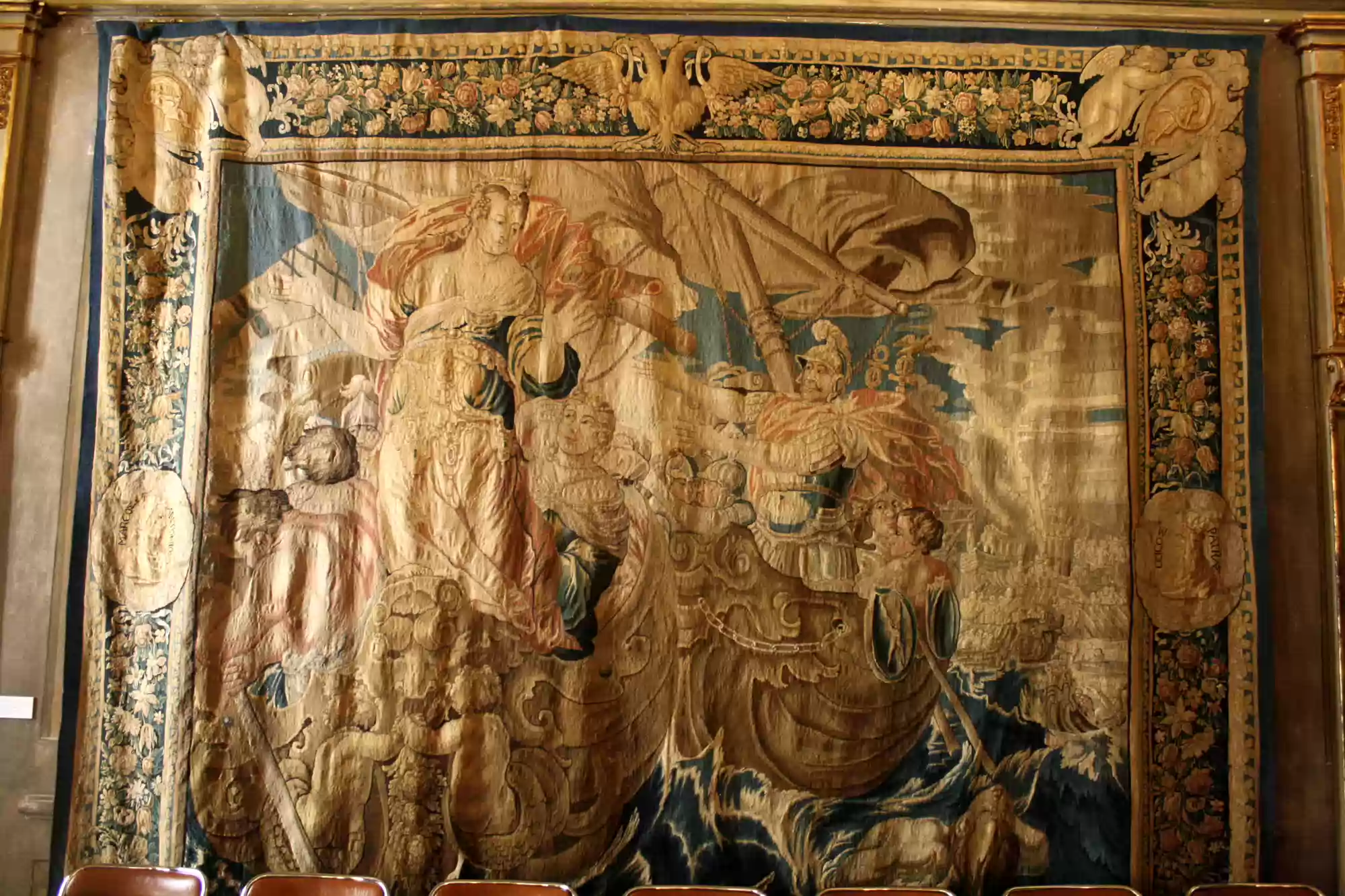 Main room, known as the Phaeton room. The ceiling painting depicts the fall of Phaeton struck by Jupiter. Genoa school, late 17th century.