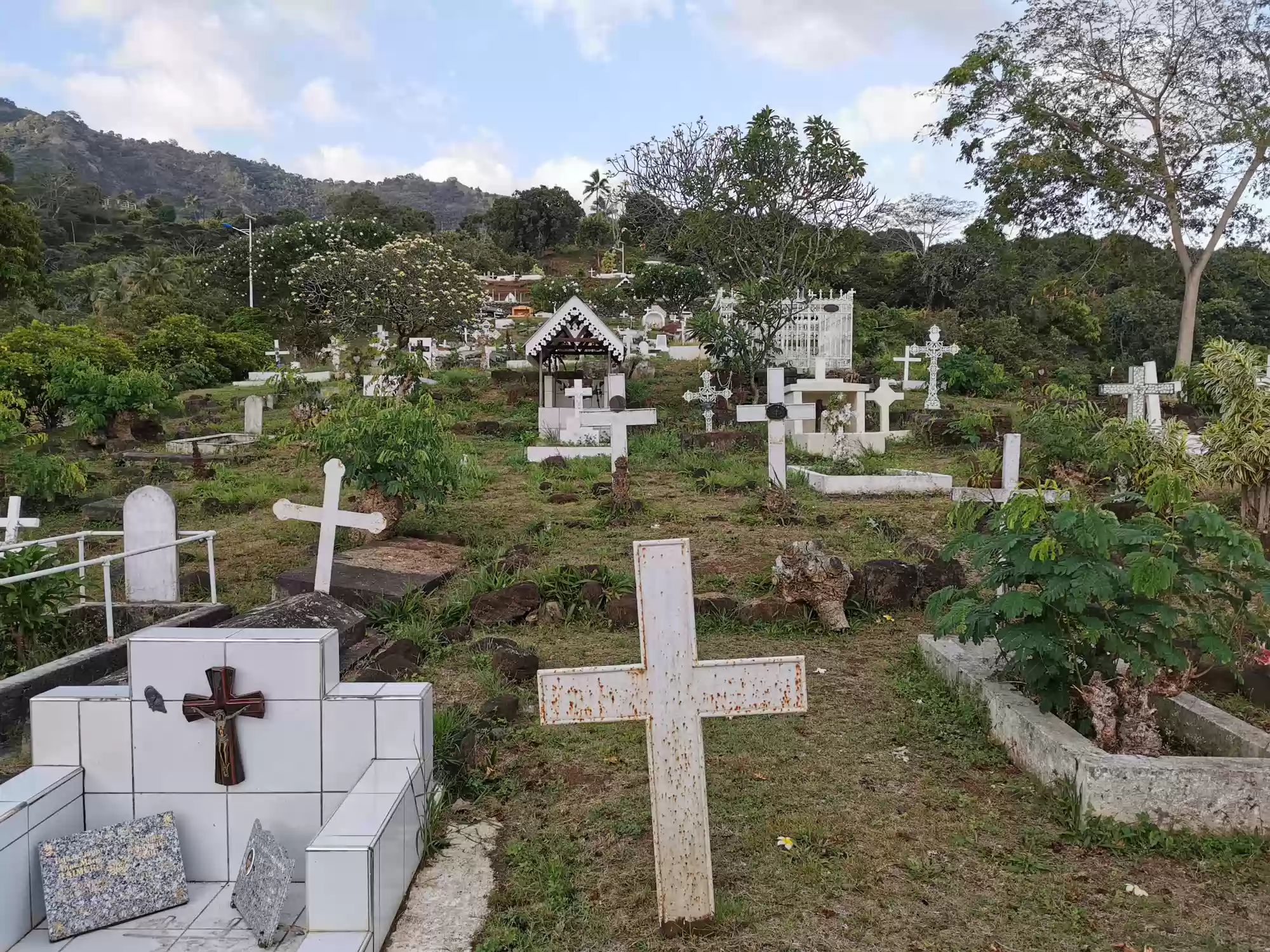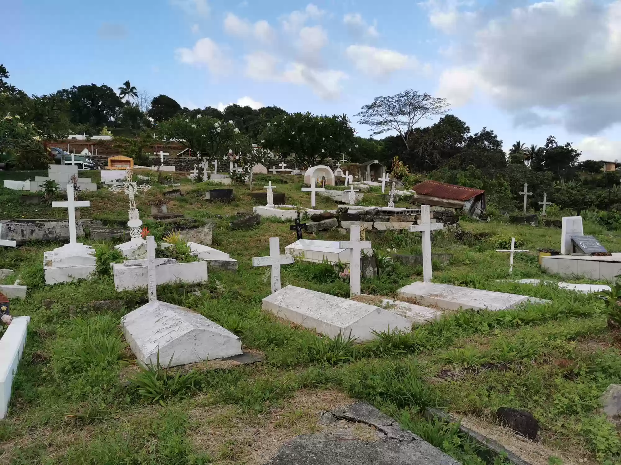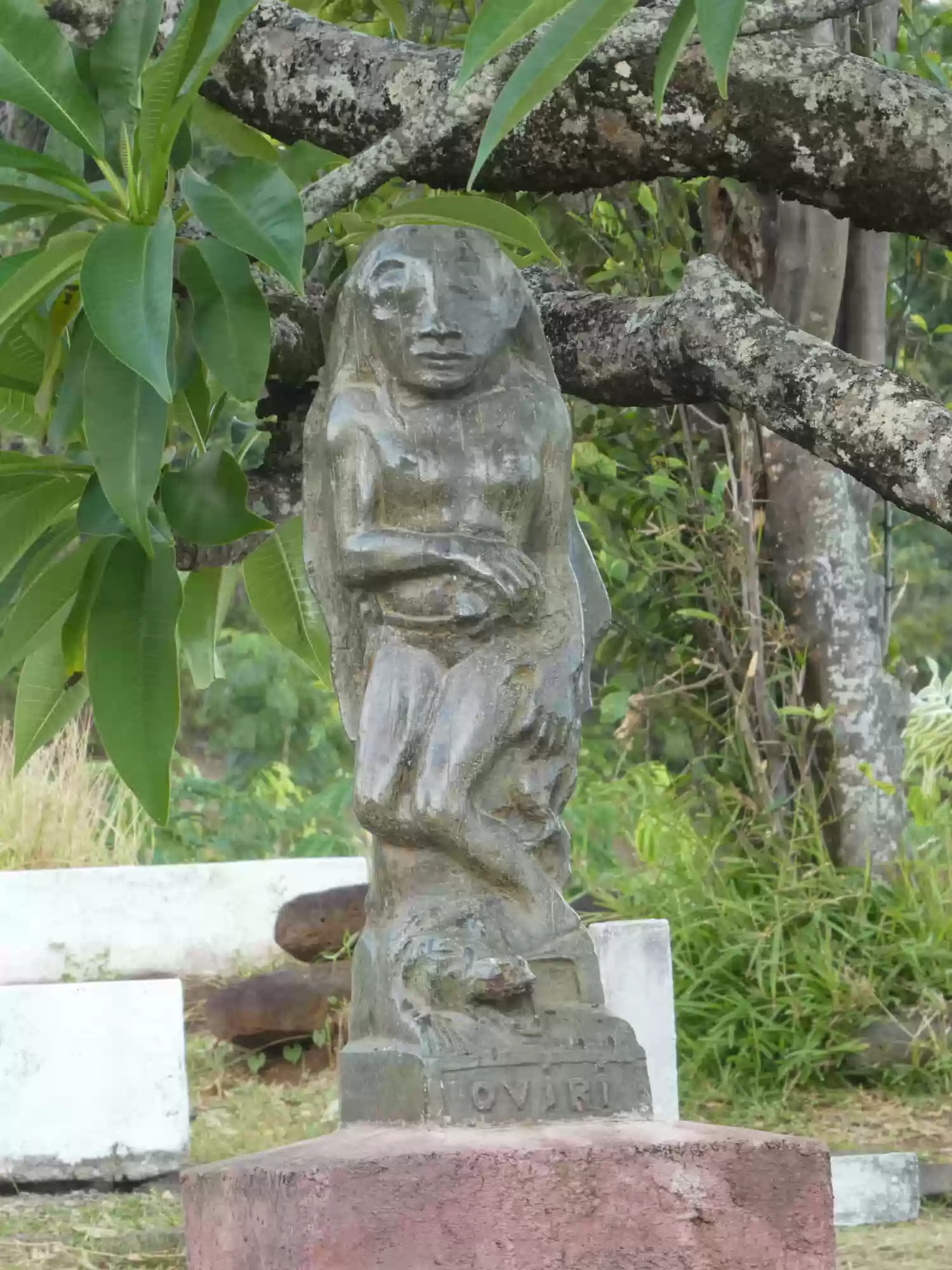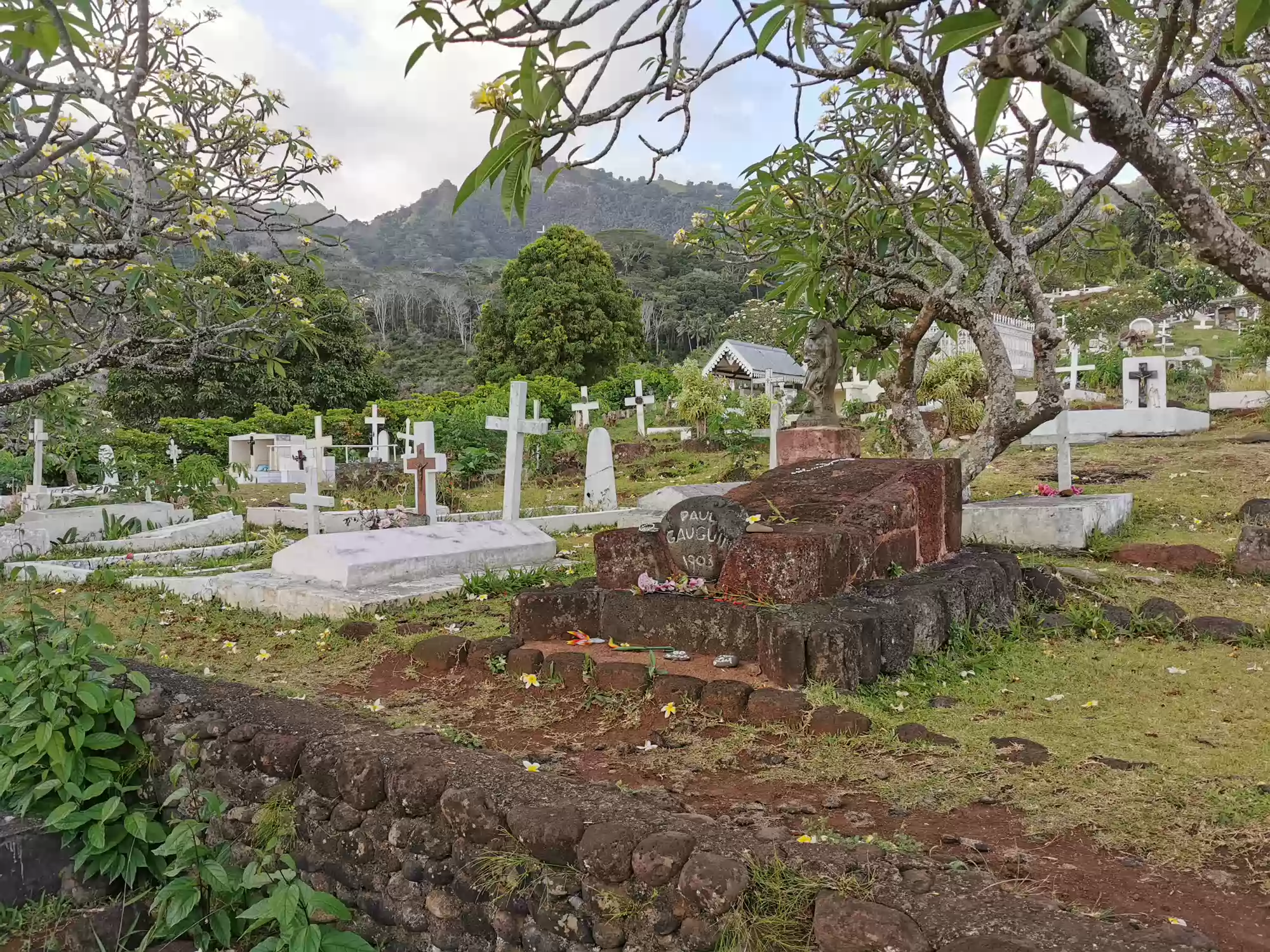 Grave of Paul Gauguin, 7 June 1848 - 8 May 1903. Grave of Paul Gauguin, 7 June 1848 - 8 May 1903. Grave of Paul Gauguin, 7 June 1848 - 8 May 1903. Bronze replica of his sculpture "Oviri", kept in Orsay museum . Tomb of Jacques Brel, 8 april 1929 - 9 octobre 1978. Church Labels