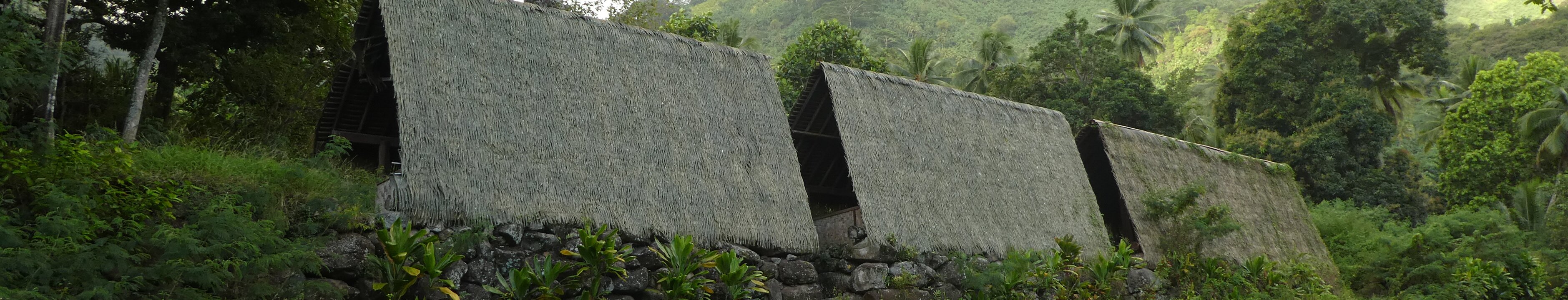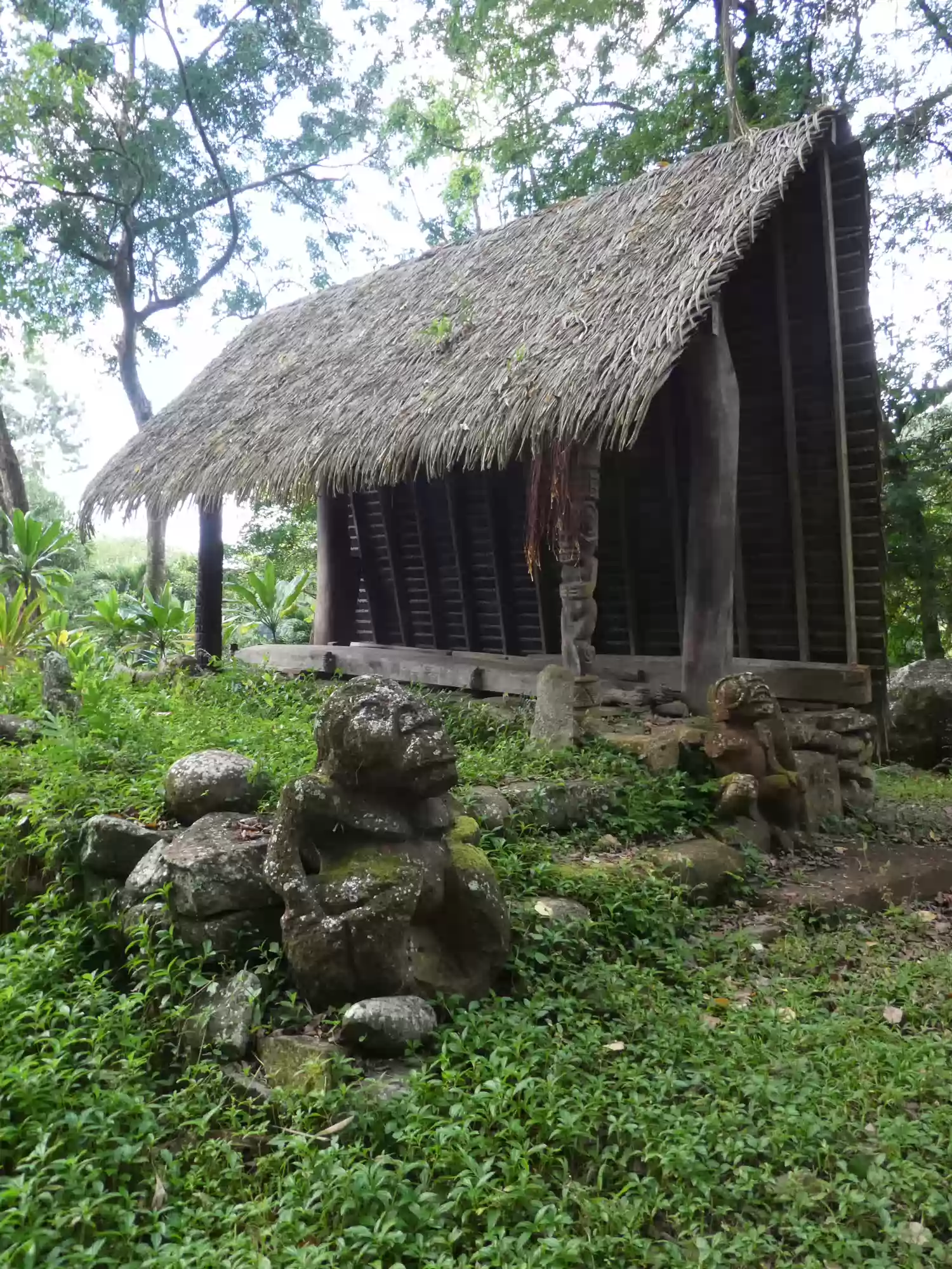 Reconstitution of an ancient village and tohua (community celebration place). Modern tiki. Modern tiki. Modern tiki. CathedralTohua Labels