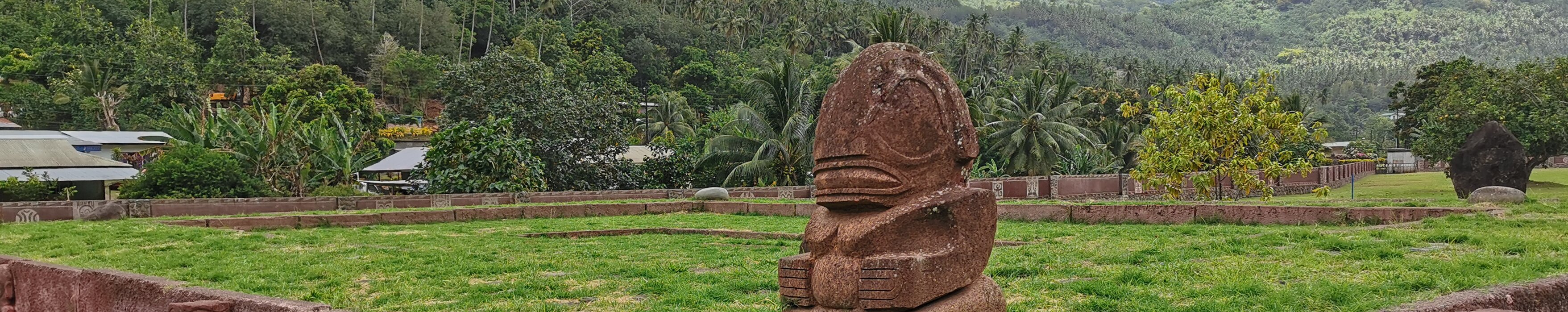 Area used for the Marquesas arts festival, held every 4 years. All statues are modern.