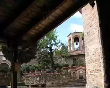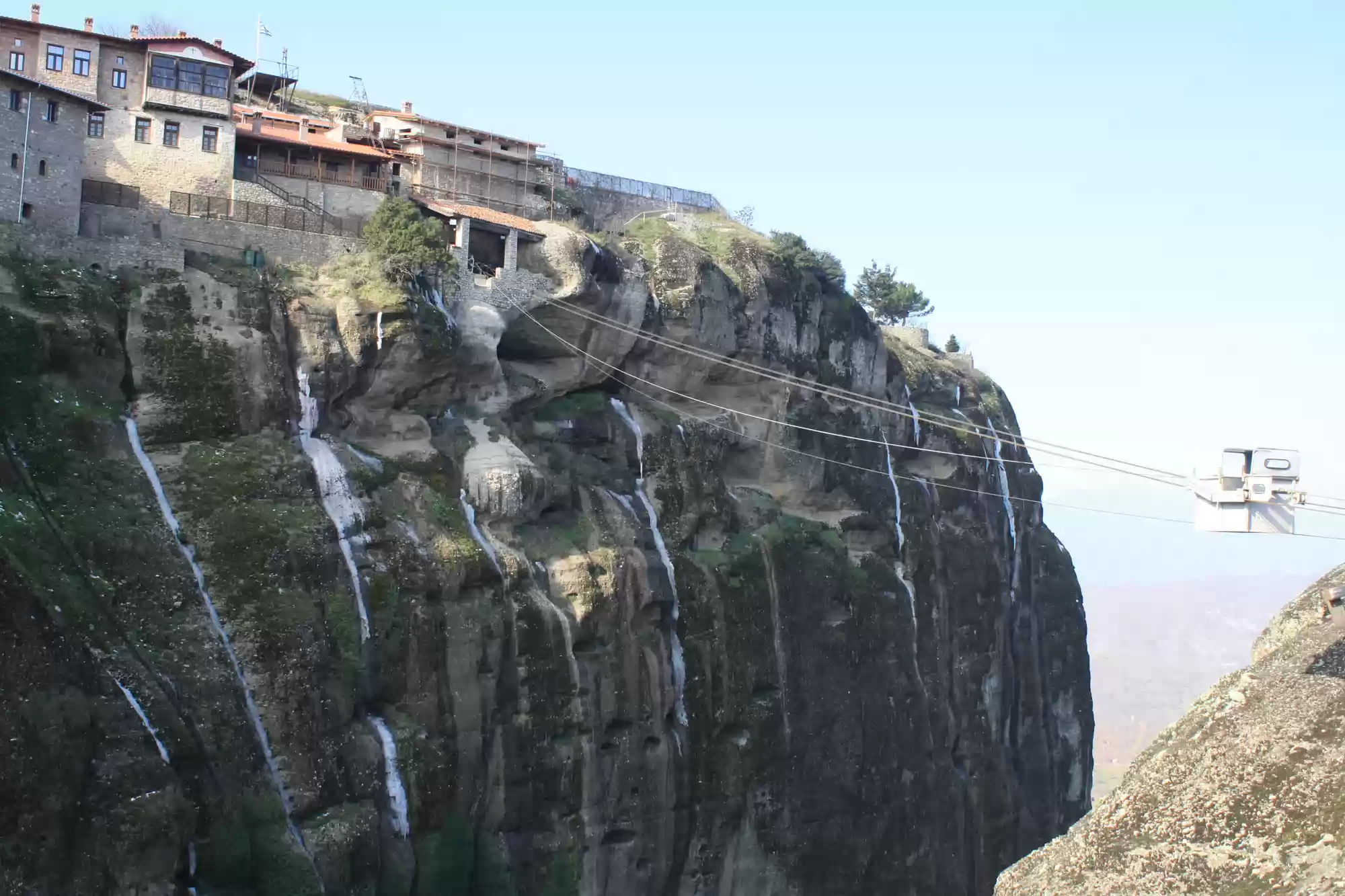 Great meteoron: the rope tower; monks and goods used a basket and rope as a rudimentary elevator, until steps were carved in the rock in the early 20th century. Church on Great meteoron. Kitchen in Great meteoron. Ossuary in Great meteoron. Holy Trinity (Agia Triada) Labels