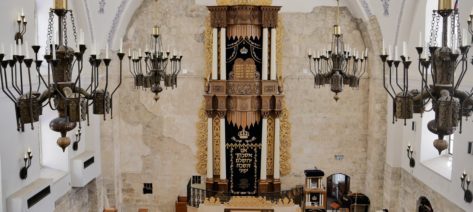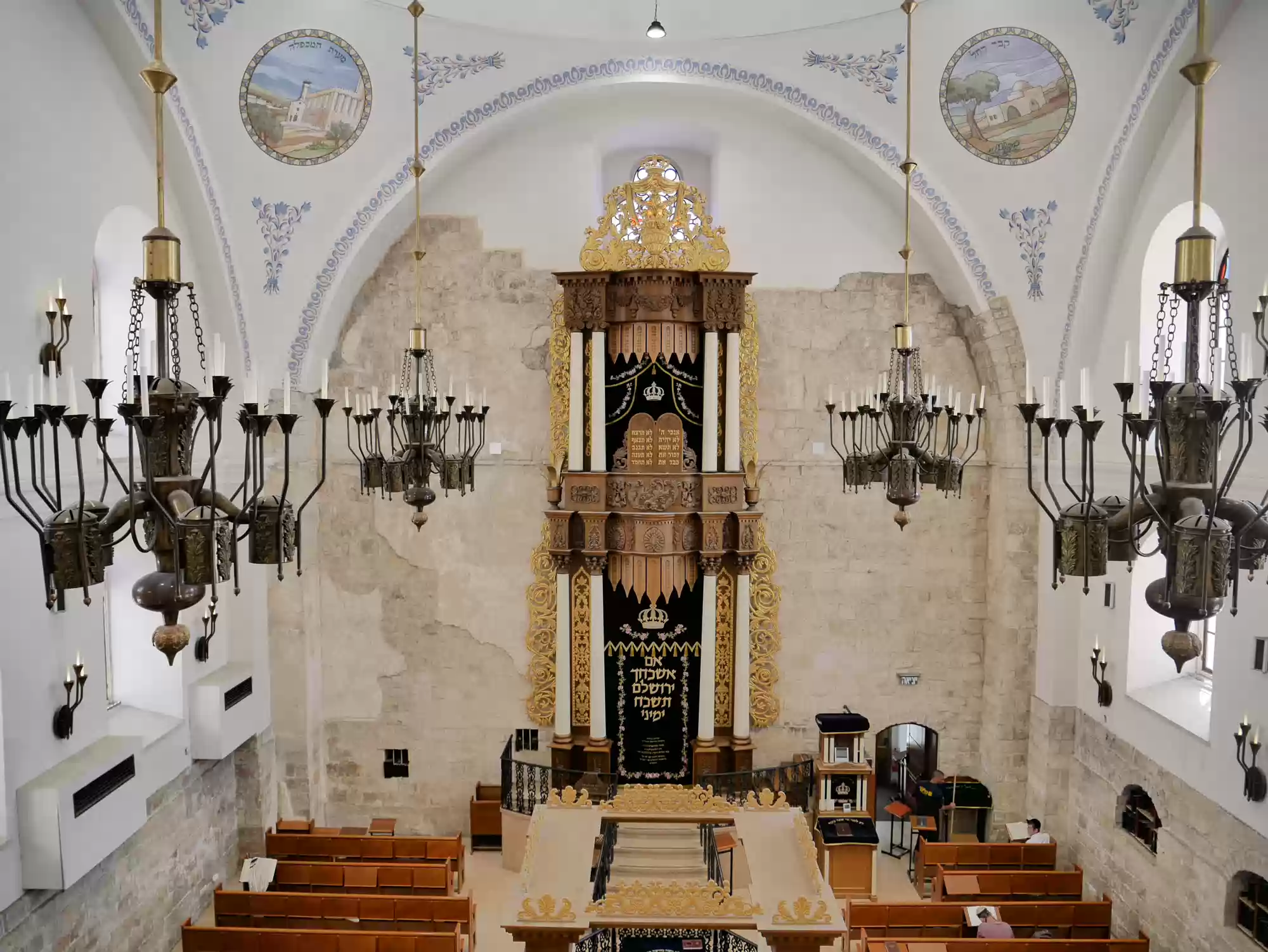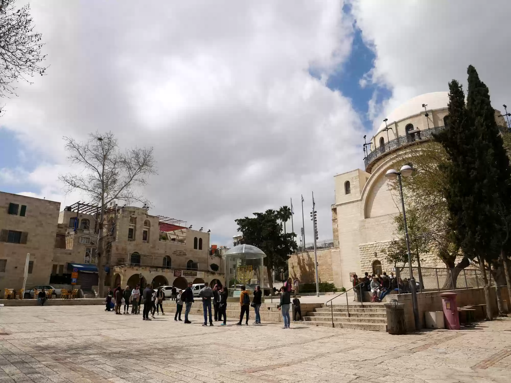 Hurva synagogue (right), destroyed and rebuilt several times; last destruction in 1948 during the War of Independence and rebuilt in 2005. Residence from the end of the Second temple period (1st century BCE-1st century CE). Remains of a Byzantine paved street, 6th century CE. Byzantine high arch leading to the Cardo. Labels