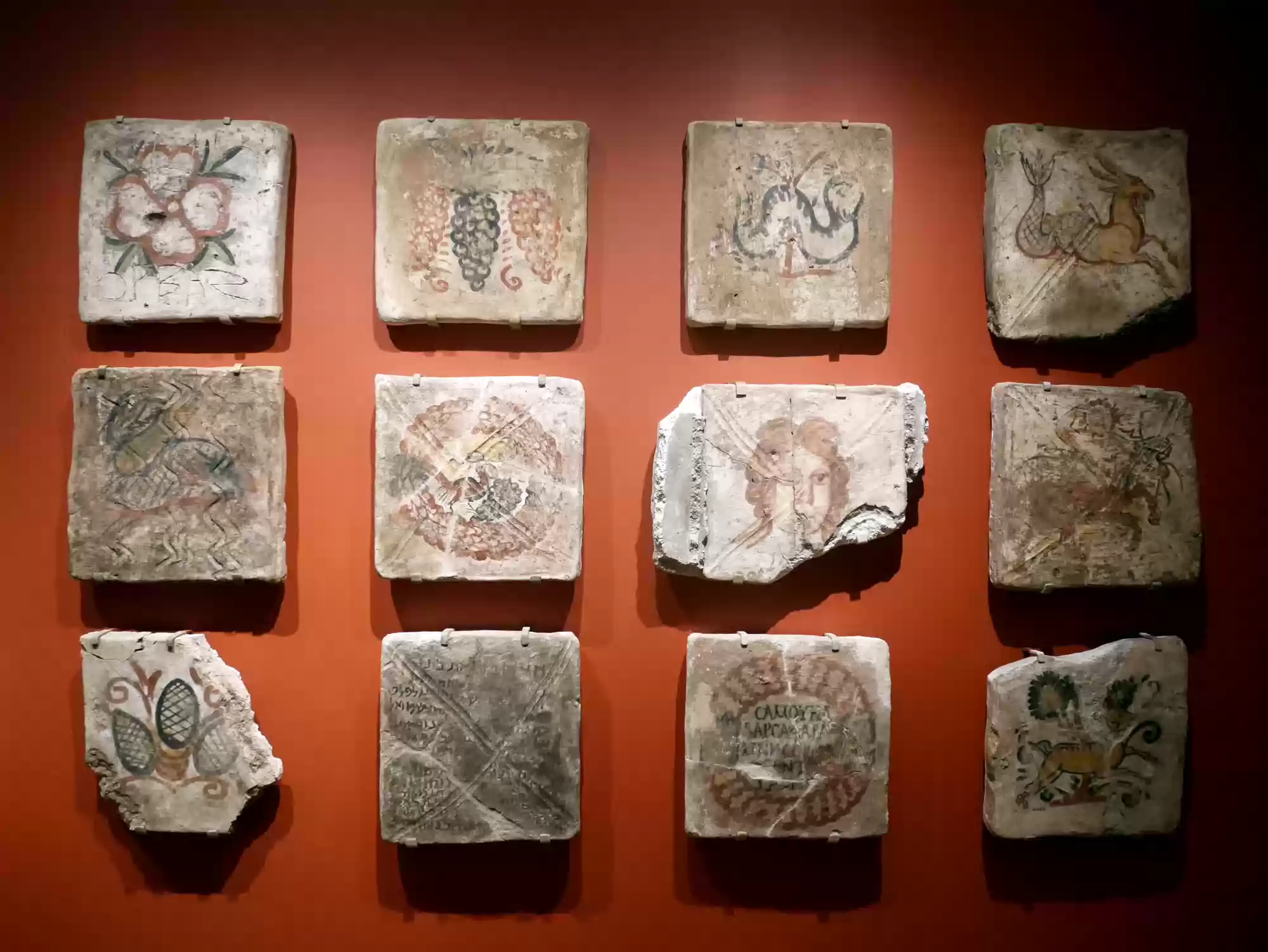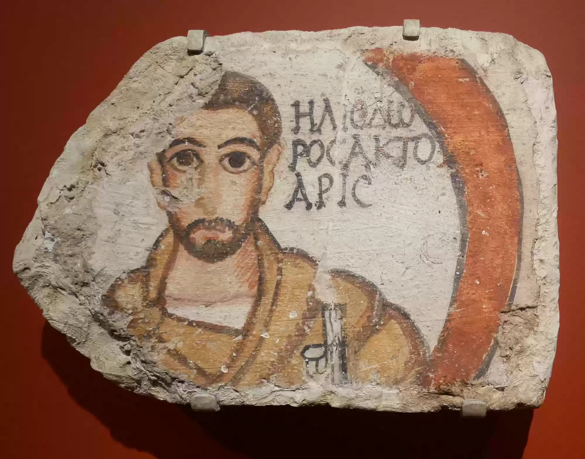 Ceiling tile with Heliodoros, house of the scribes, 200-256 AD.
