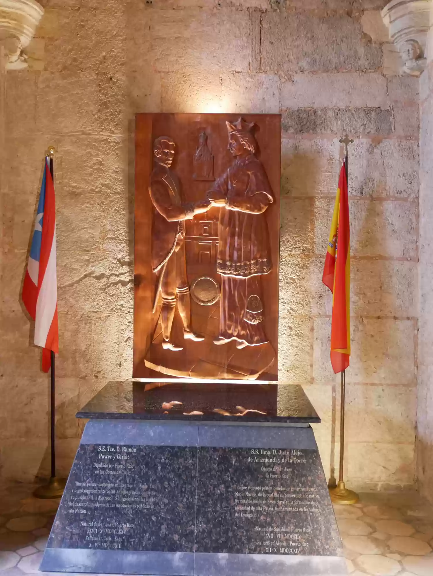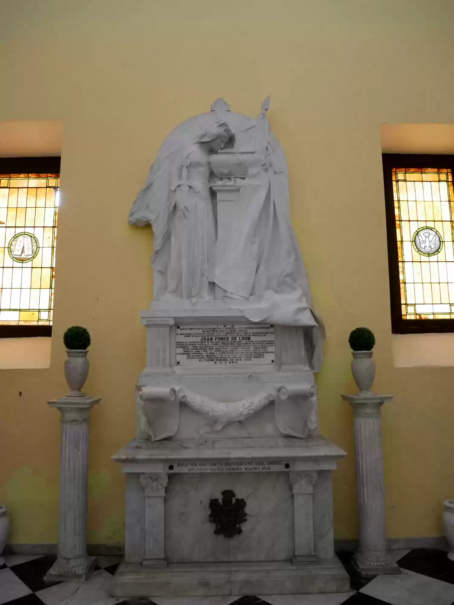 Metropolitan Cathedral-Basilica of Saint John the Baptist, built in 1540, remodeled several times. Tomb of Juan Ponce de Leon (1474-1521), first governor of Puerto Rico, first leader of the Spanish colony in the present-day United States (Florida). Labels