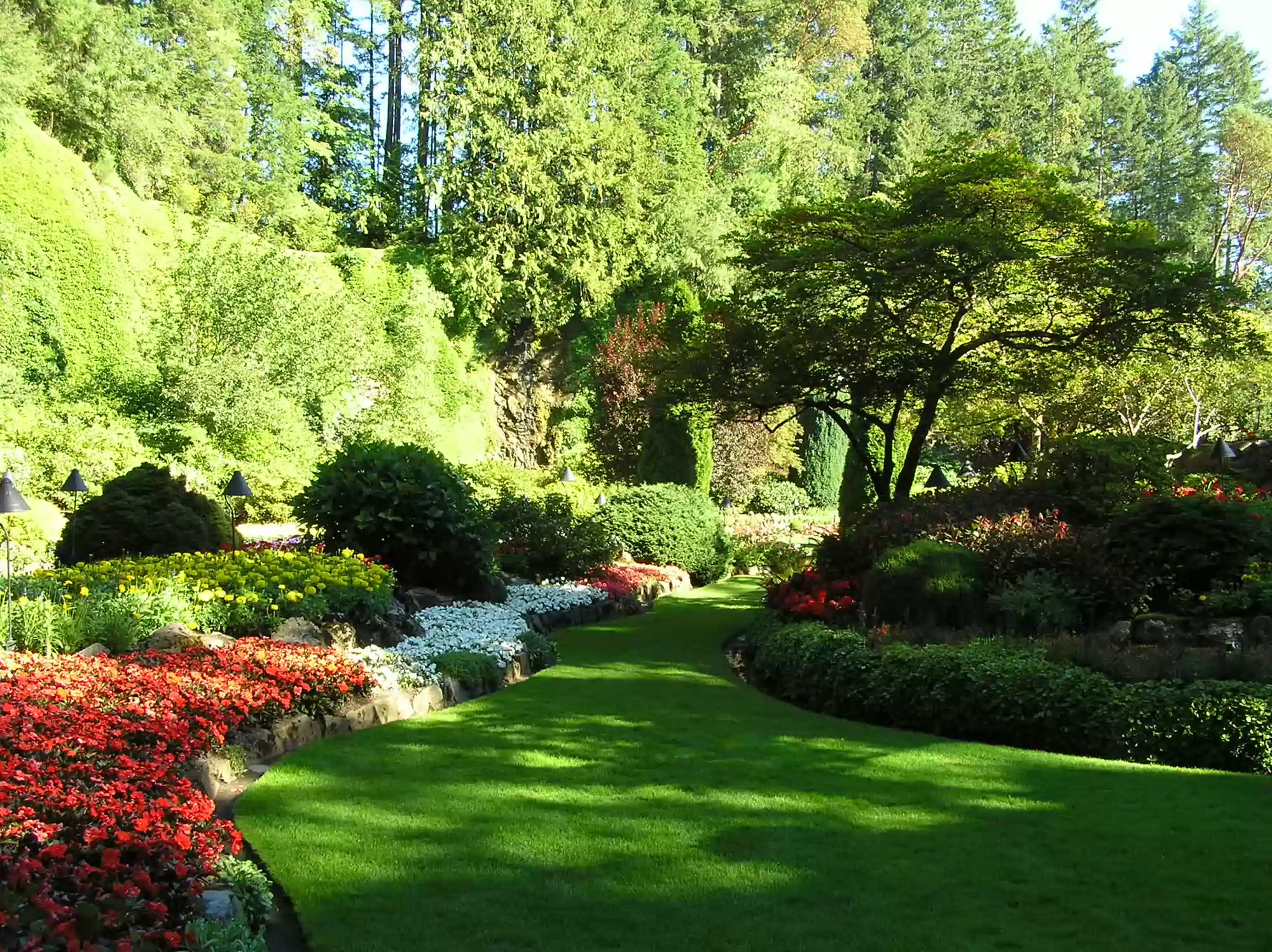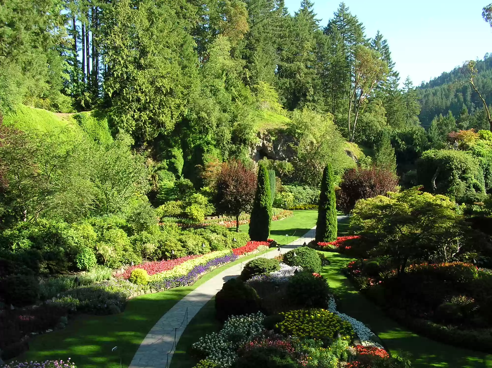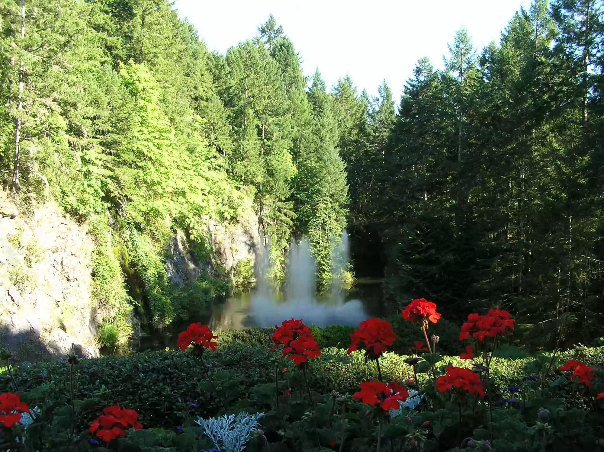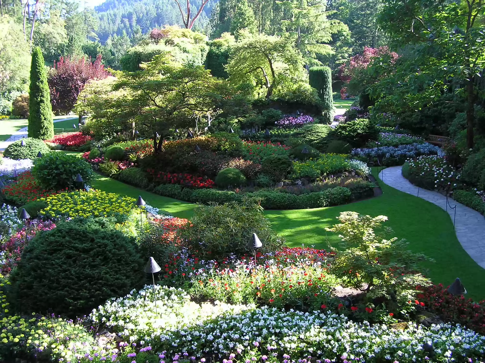 The Burtchart gardens were started in the early 20th century by the Burtchart family, who was operating a cement factory there. Garden entrance. Garden entrance. Garden entrance. Garden at night. Sunken garden: 1912-1921. Created in a depleted quarry by Mrs. Butchart. Sunken garden. Sunken garden. Sunken garden. Sunken garden. Sunken garden. Sunken garden. Sunken garden at night. Behind the sunken garden. Eagle with salmon, orca, bear with salmon, 2004. Totem pole carved in contemporary Coast Salish style by Doug LaFortune from the Tsawout First Nation. Rose garden. Rose garden. Islands Labels