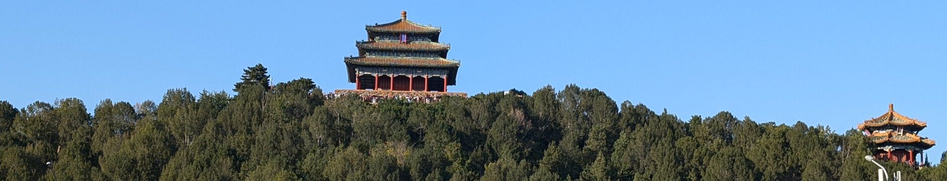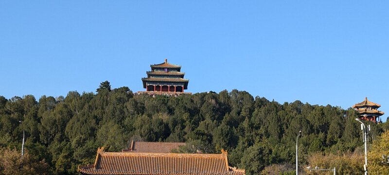 Jingshan Park, an imperial garden previously part of the Forbidden City. The manmade hill was built with earth excavated to dig the Forbidden City moats. Forbidden City moat. Fulan Pavilion, 1750. Originally a Buddhist temple. Forbidden City. Guanmiao pavilion, 1750. Zhoushang pavilion, 1750. Treasure gallery Labels